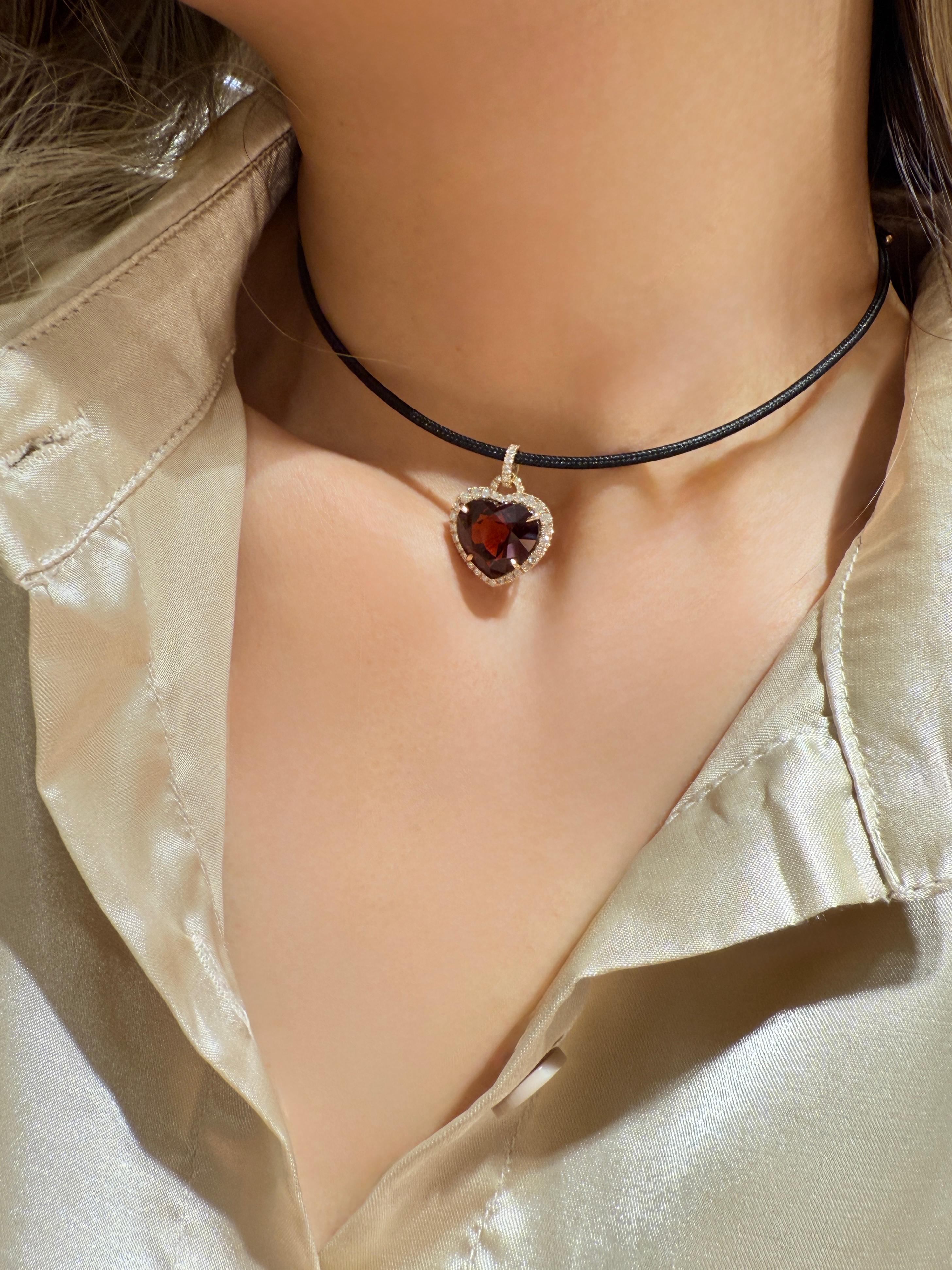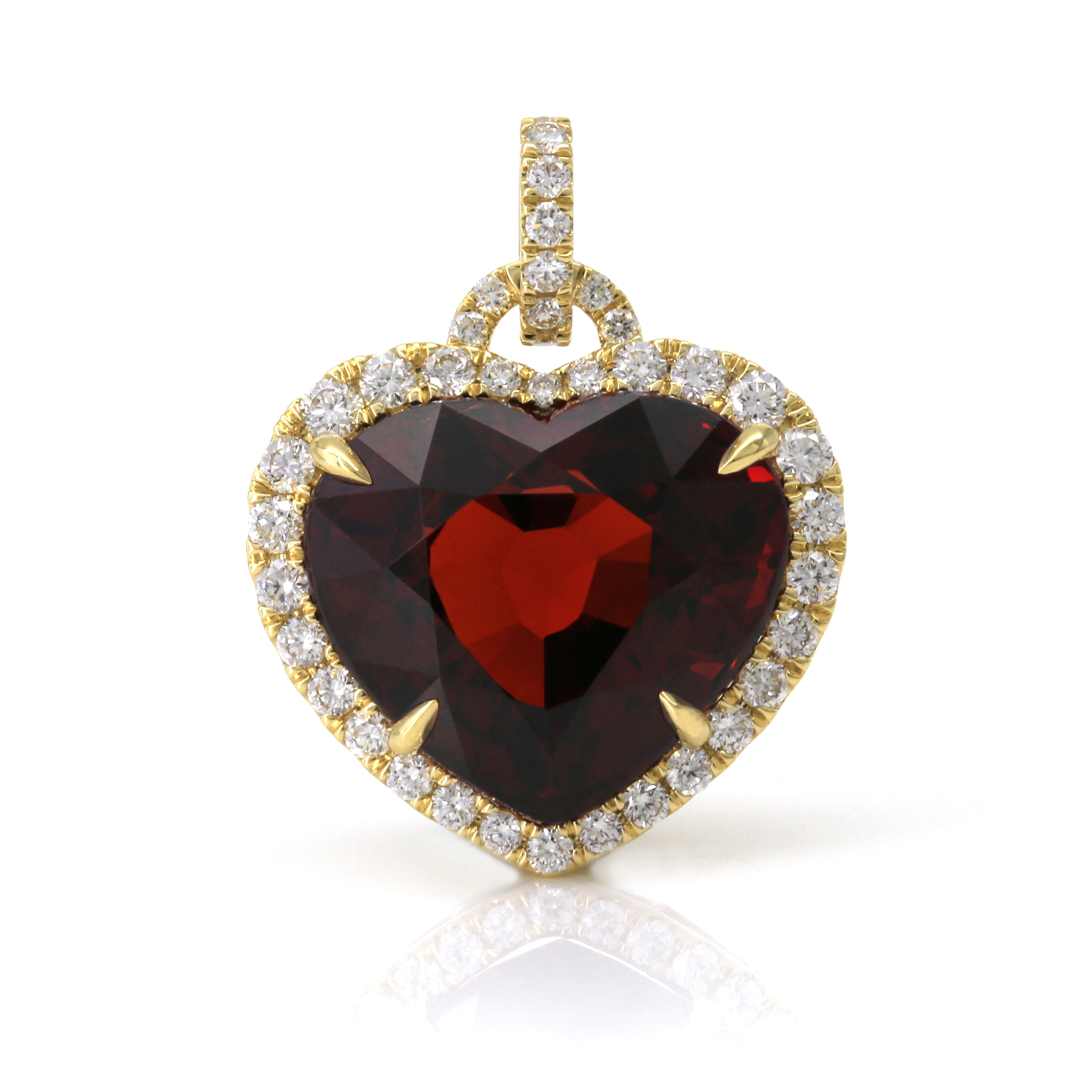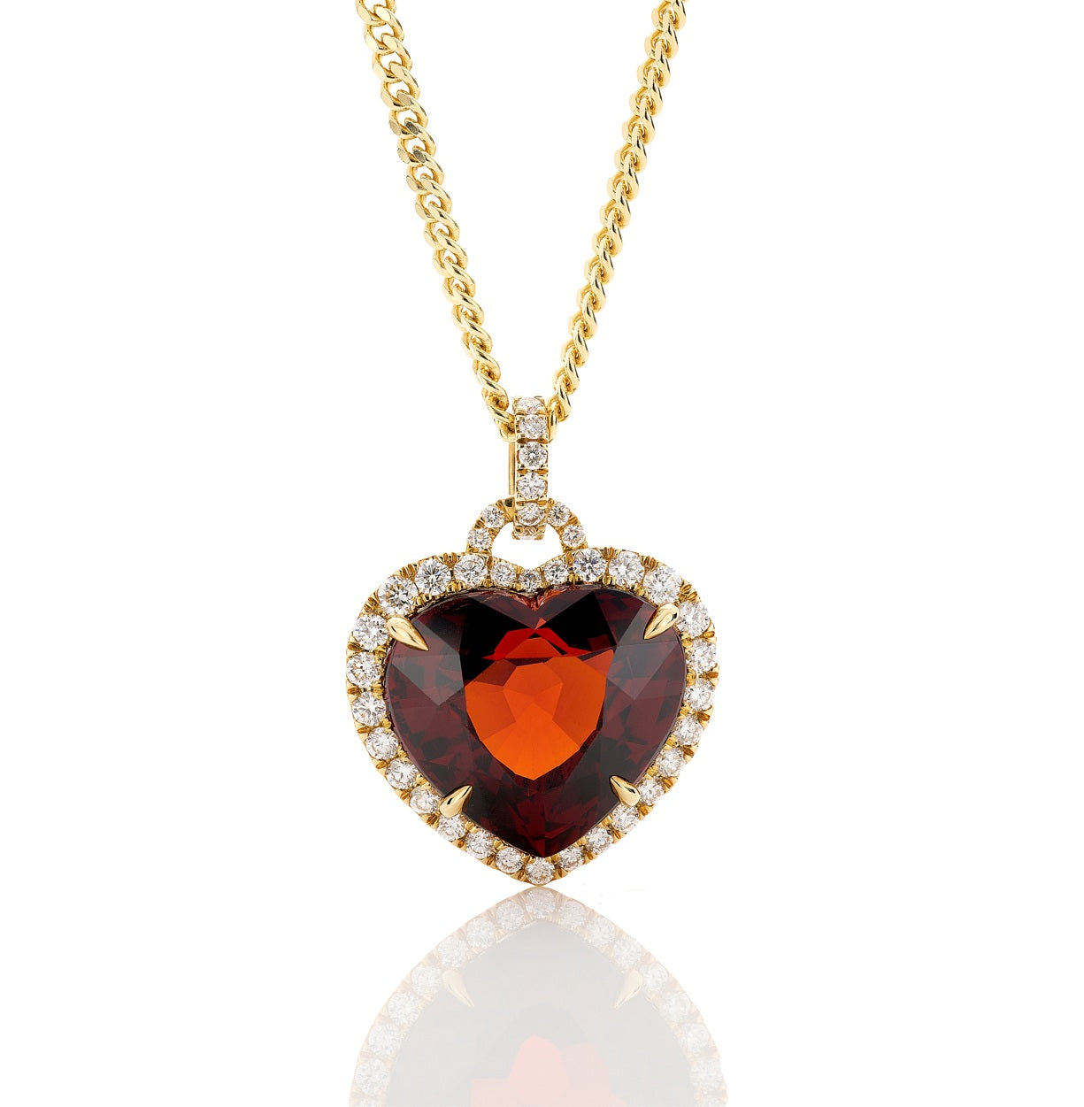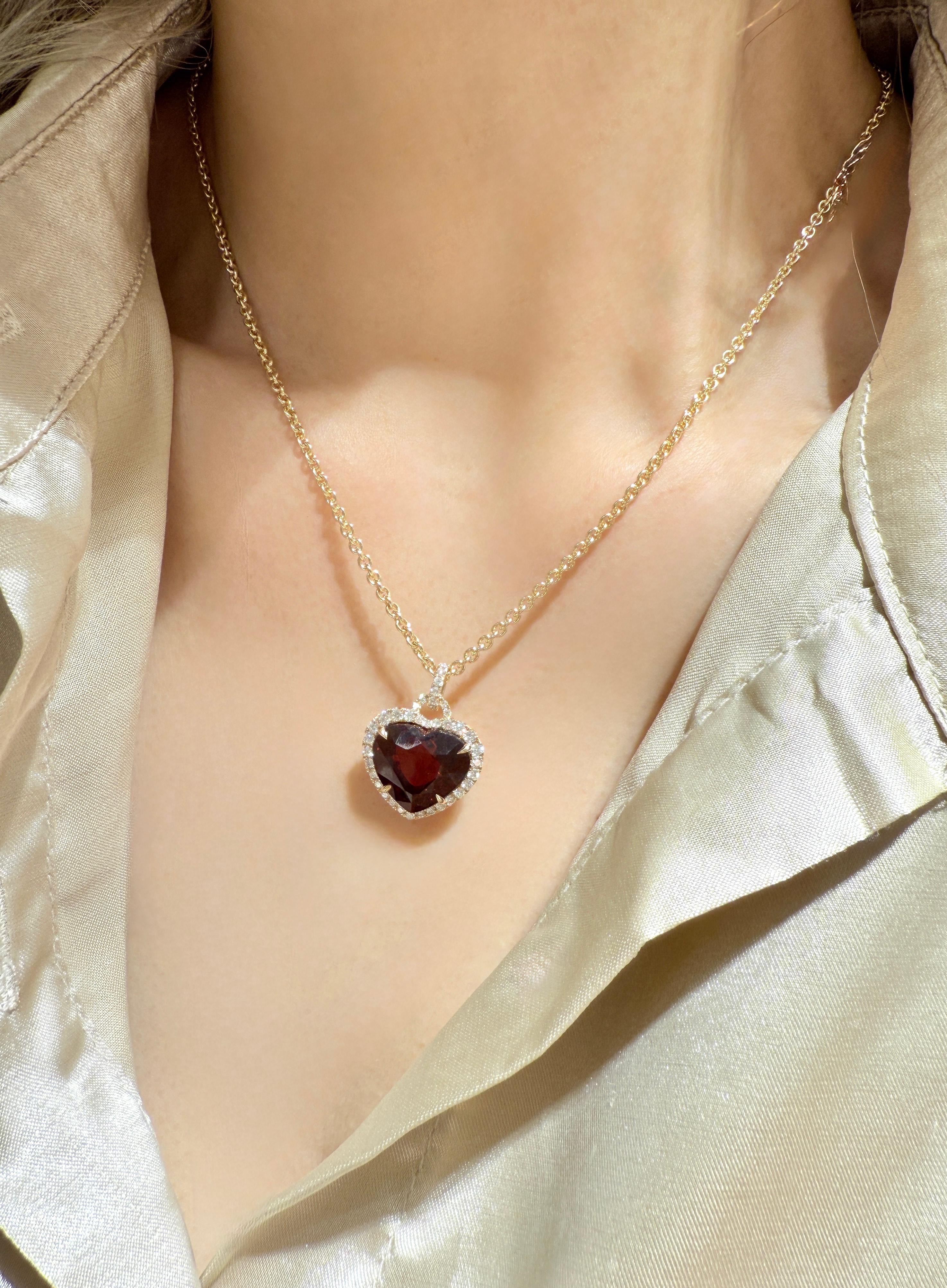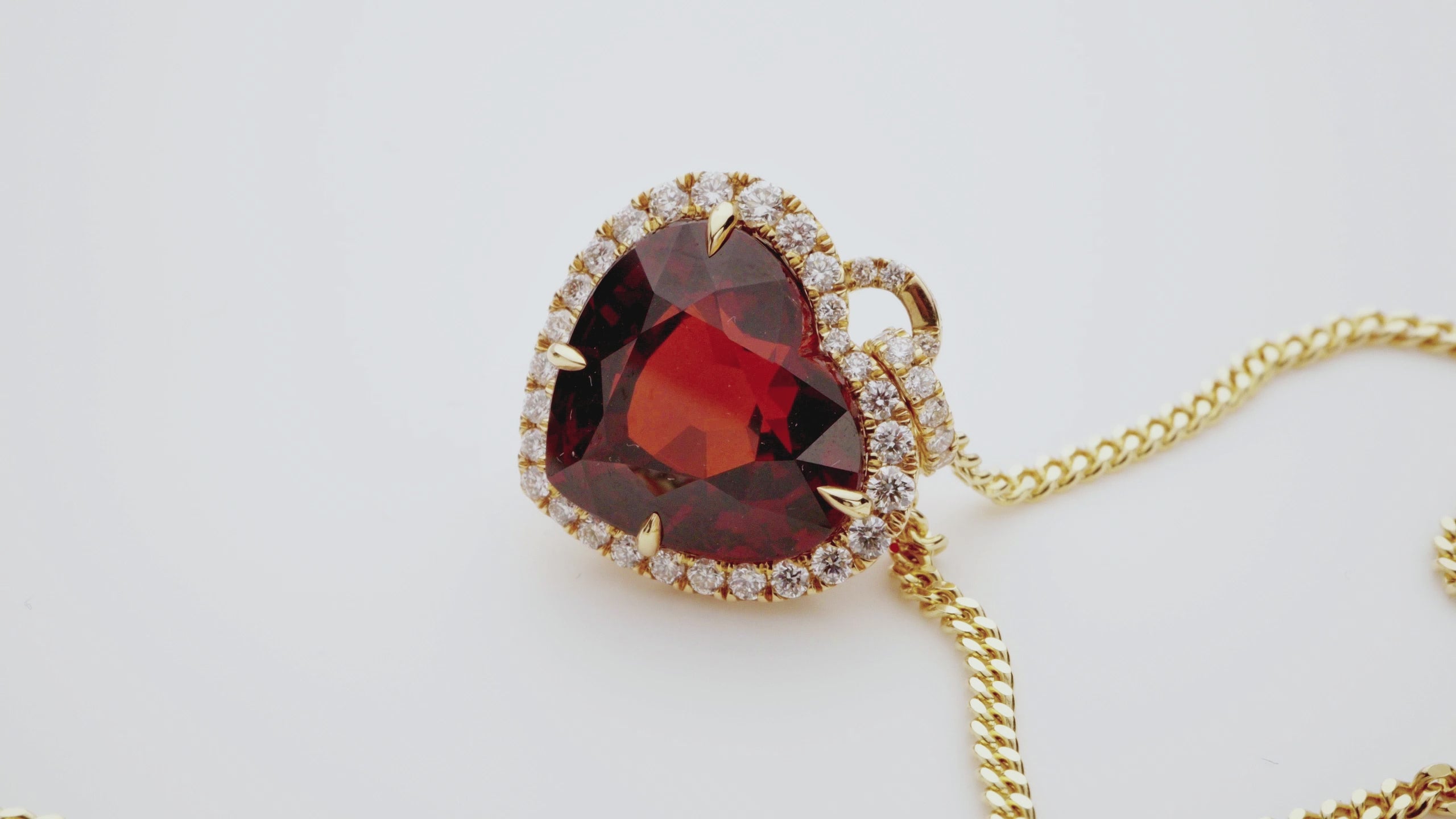 15.76ct Guild Garnet Heart Shape Halo Diamond Pendant 18K White Gold