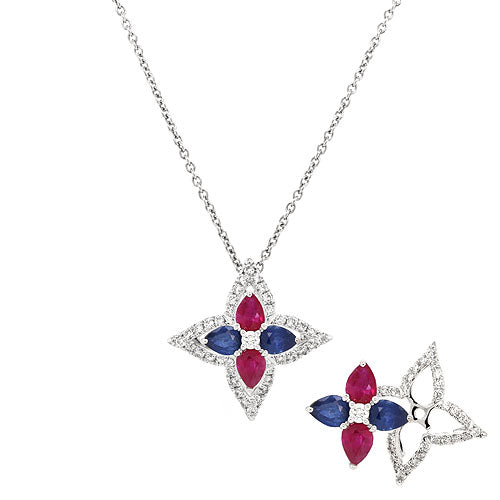 Diamond, Ruby & Blue Sapphire Two-Ways Wearing Pendant Necklace - SOLD