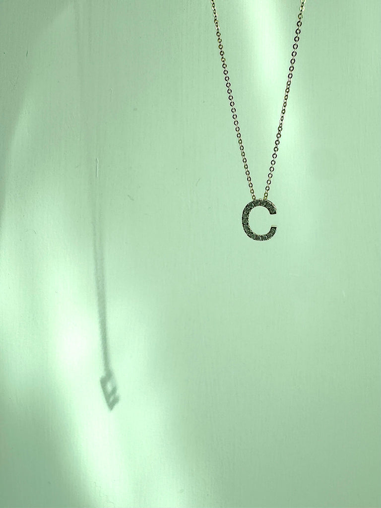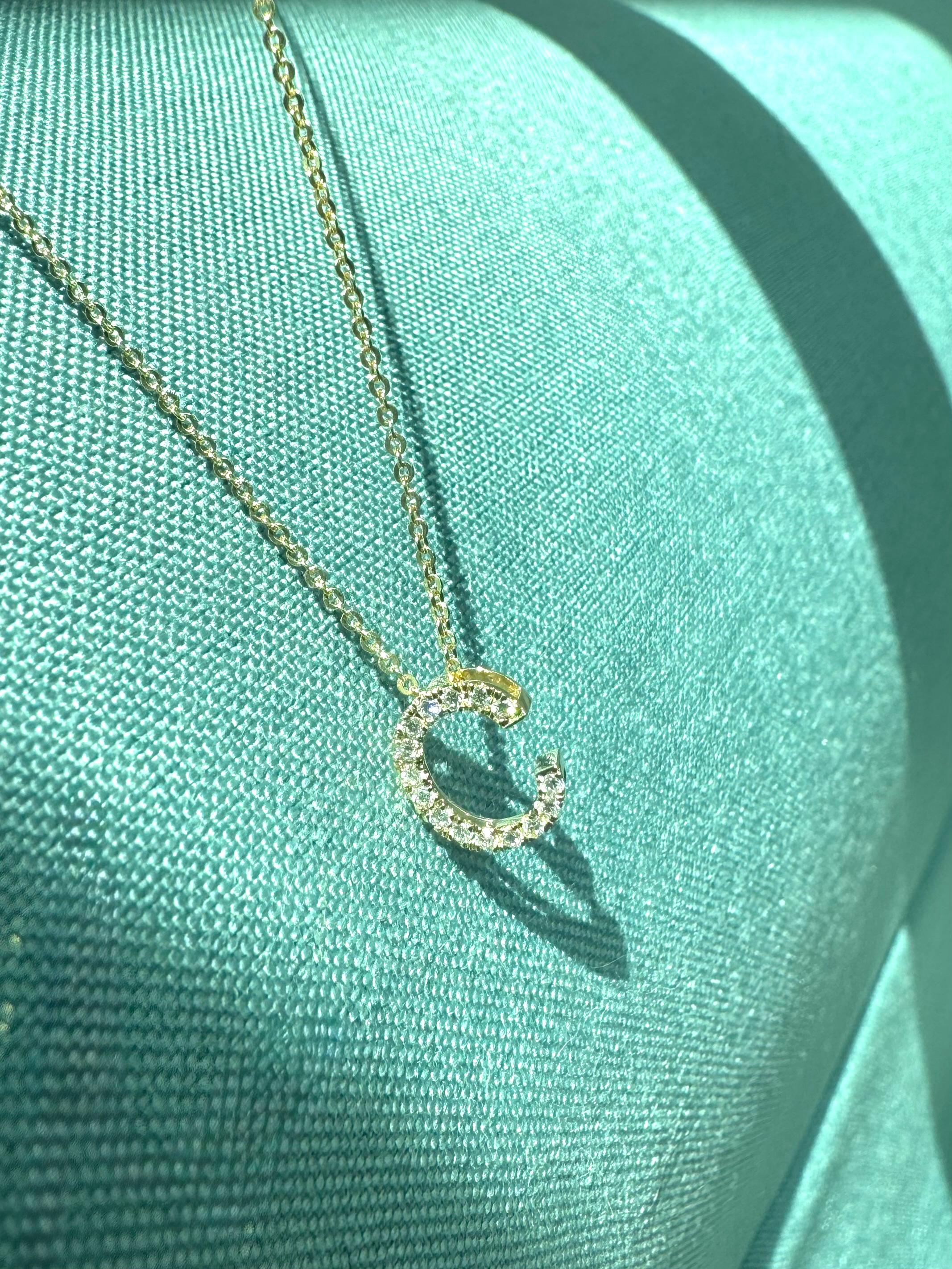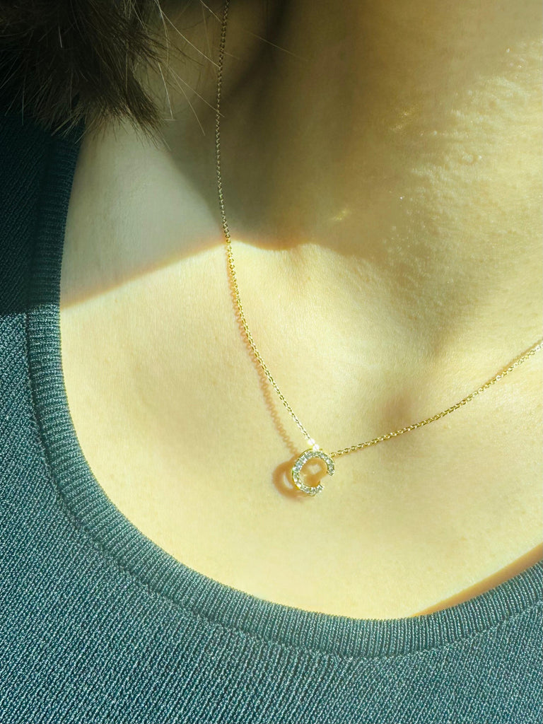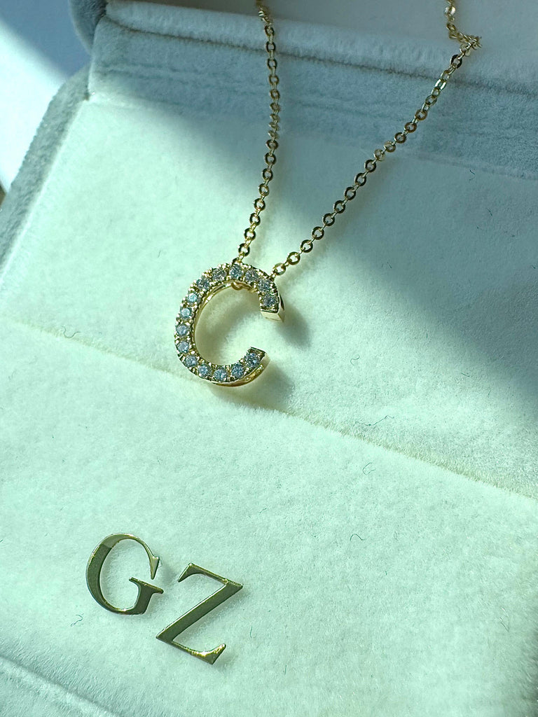 Initial "C" Diamond Pendant Necklace K18 Yellow Gold