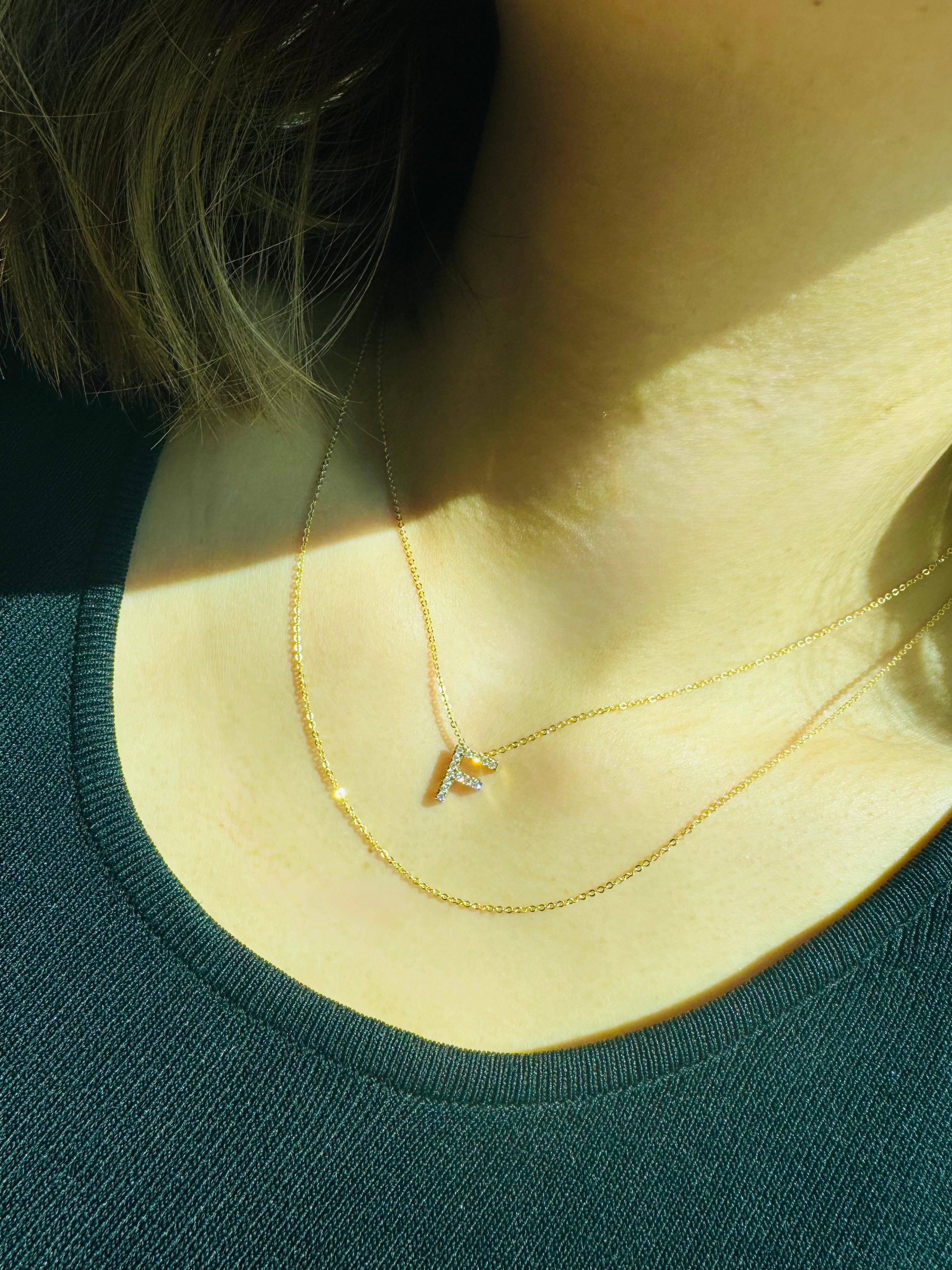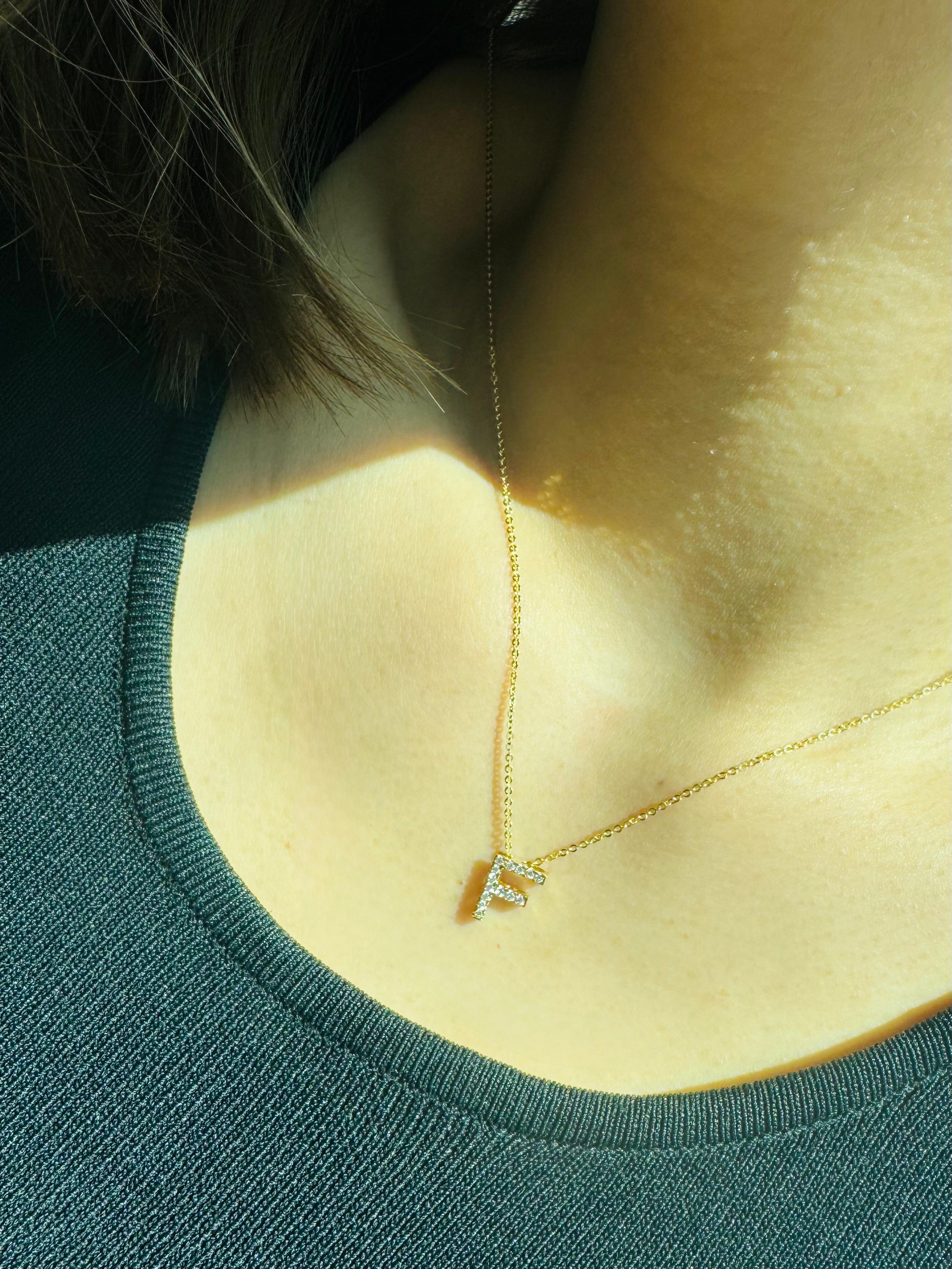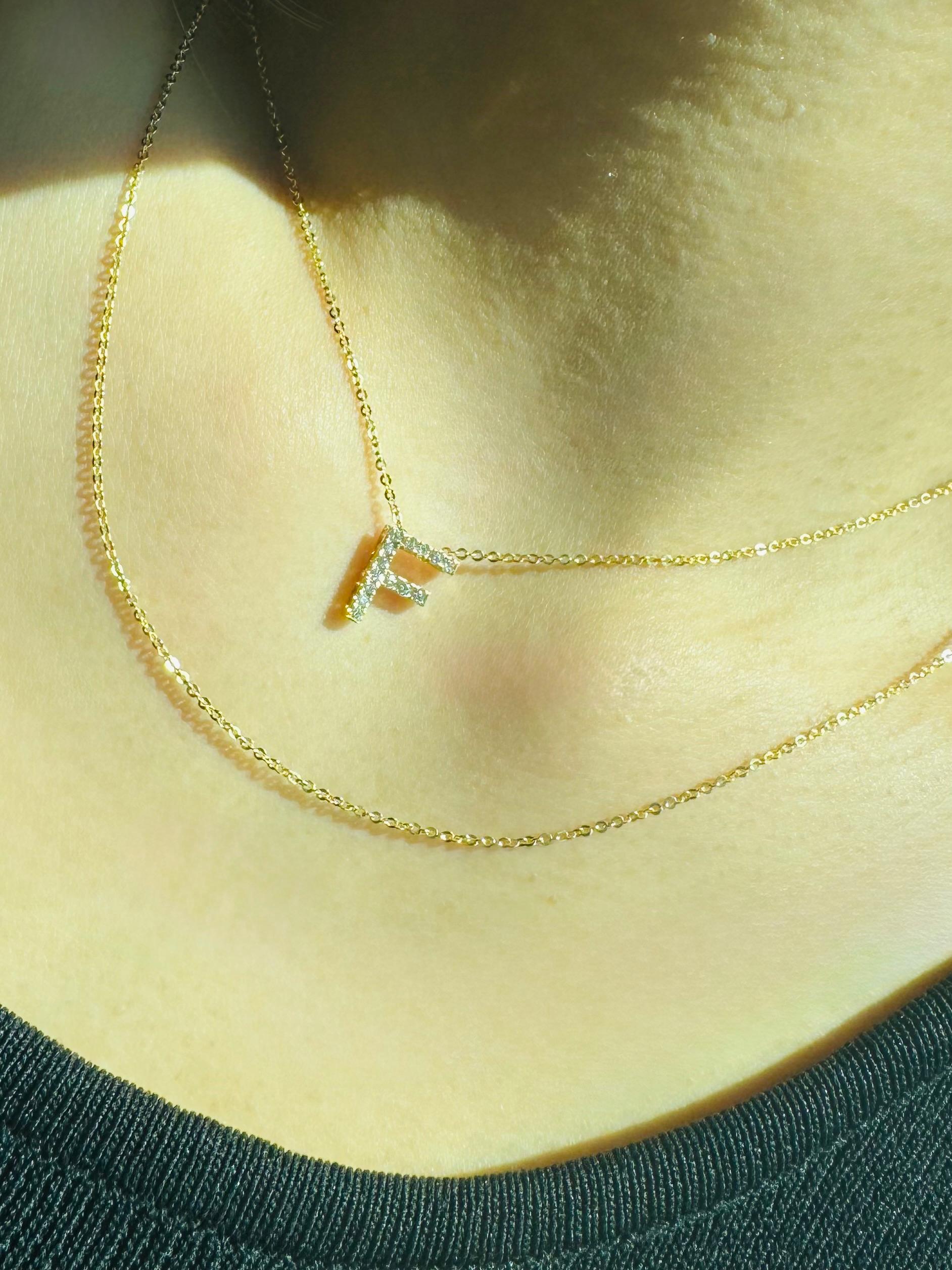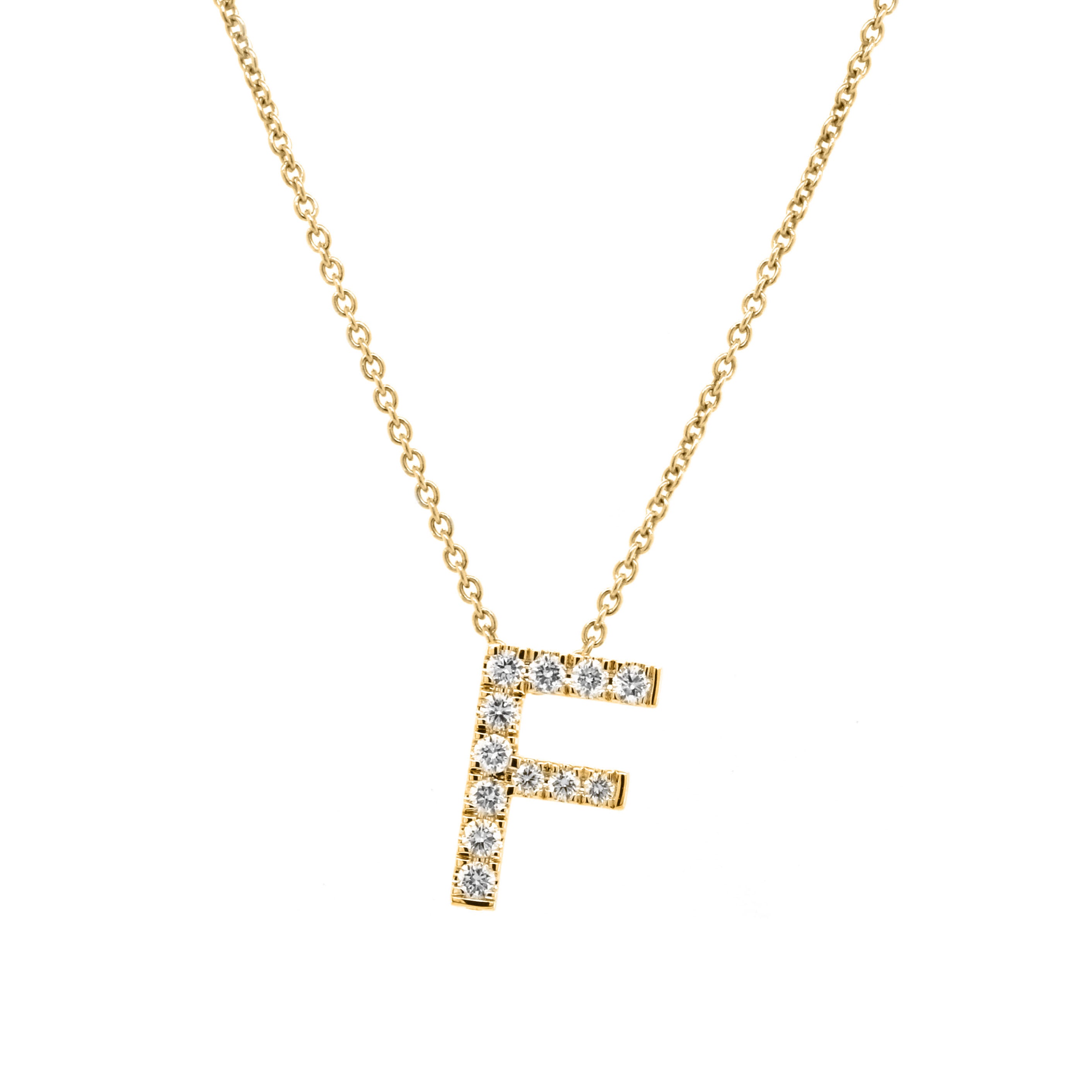 Initial "F" Diamond Pendant Necklace K18 Yellow Gold