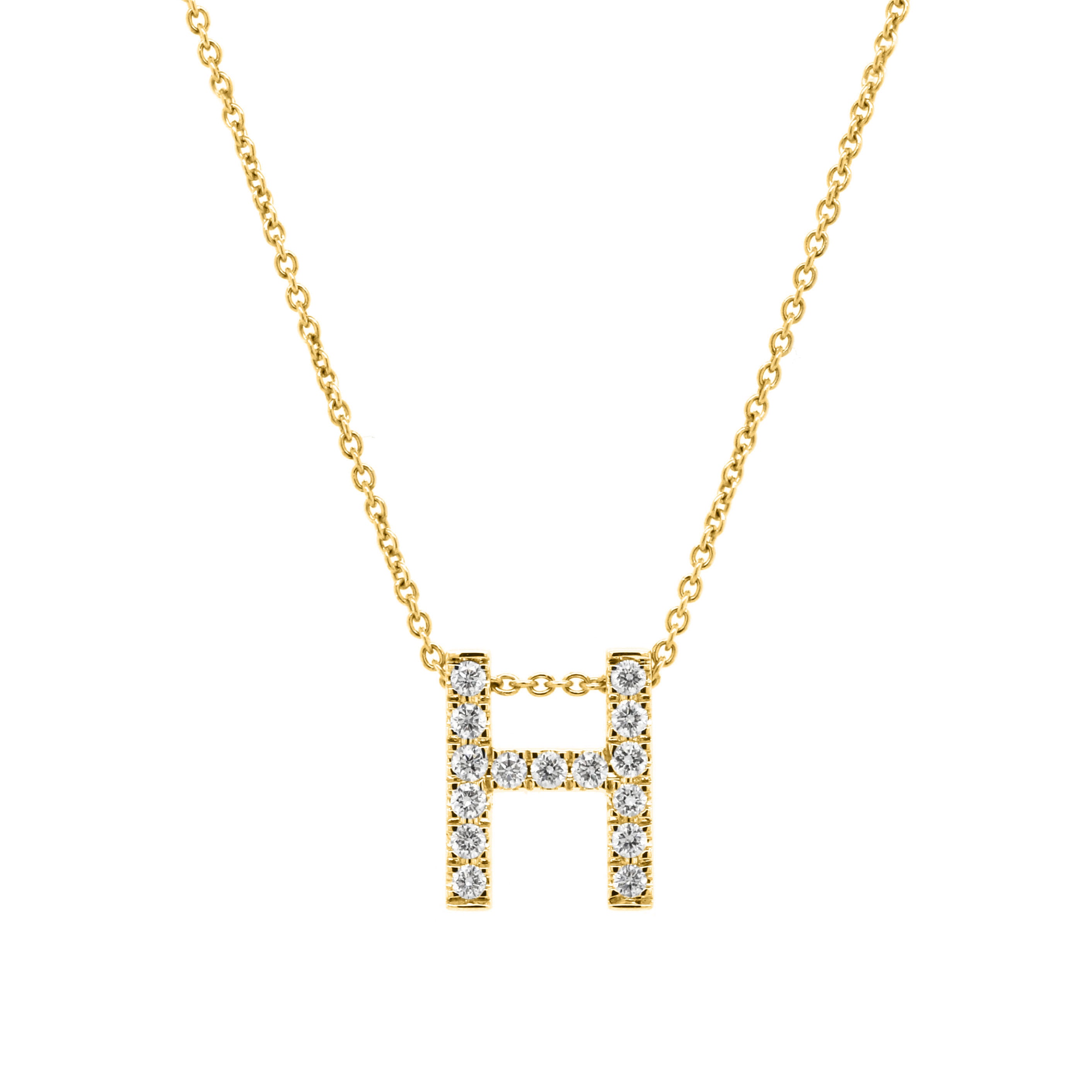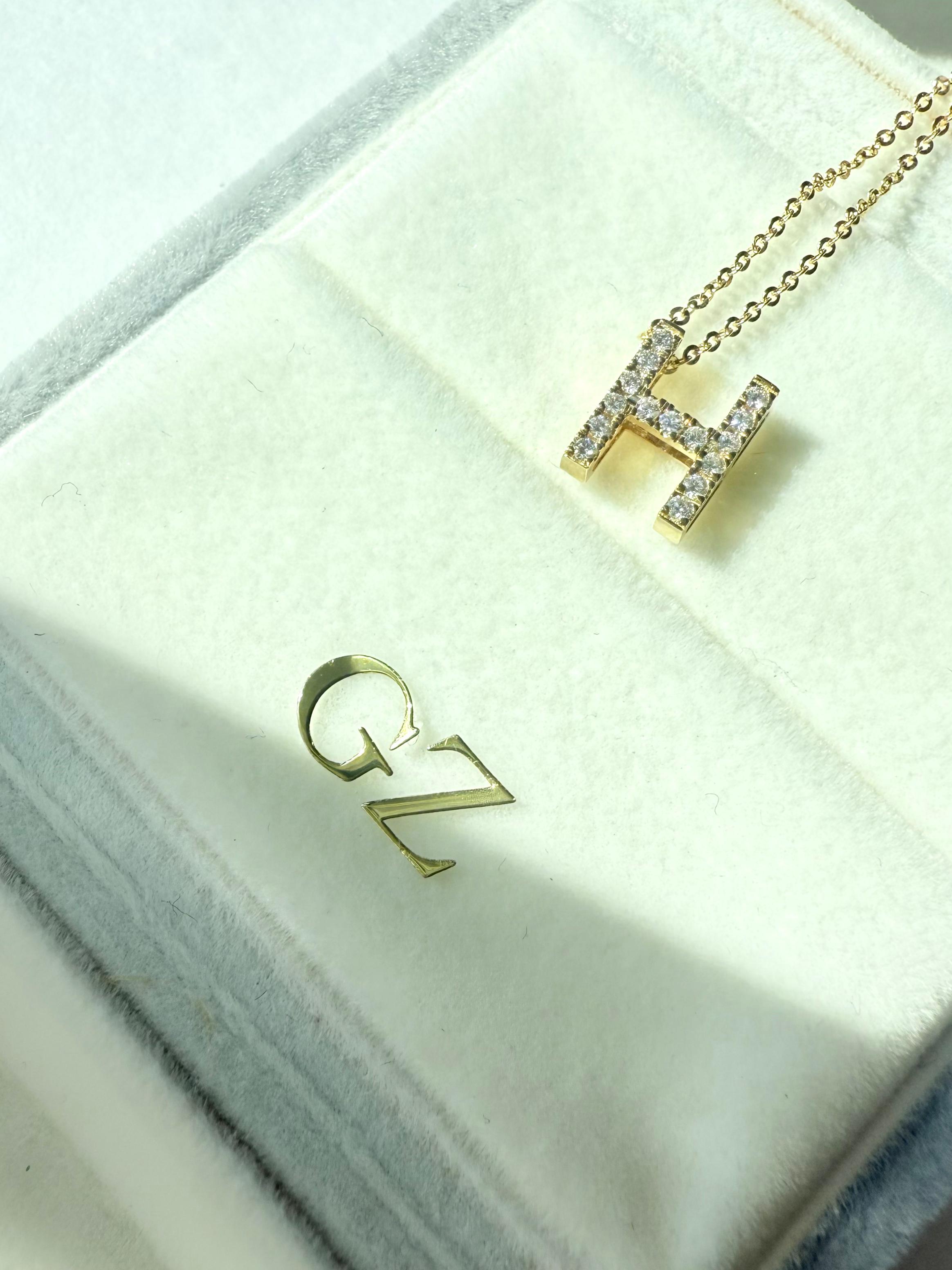 Initial "H" Diamond Pendant Necklace K18 Yellow Gold