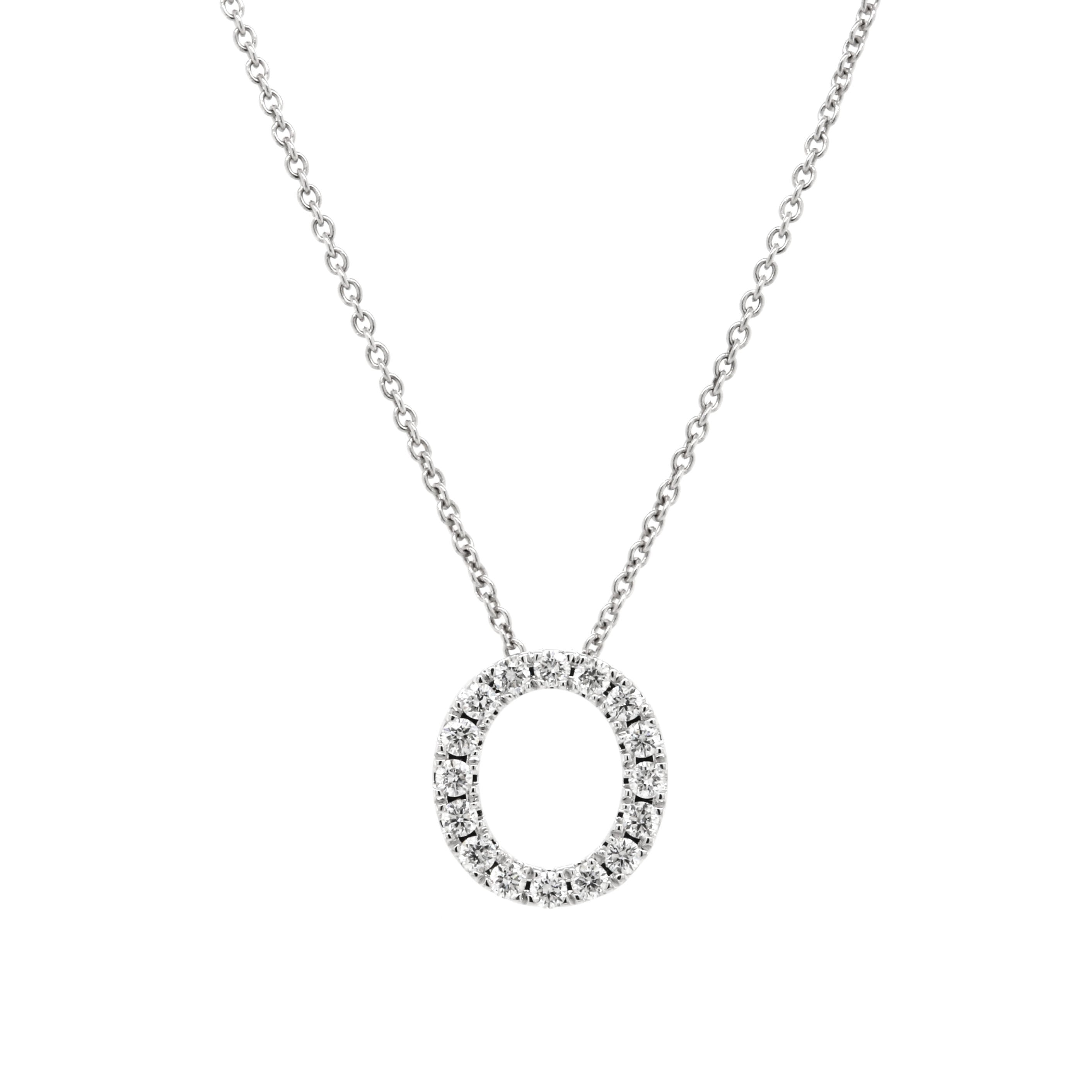 Initial "O" Diamond Pendant Necklace K18 White Gold