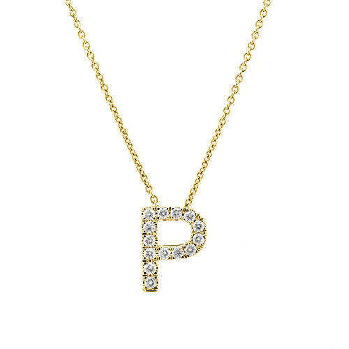 Initial "P" Diamond Pendant Necklace K18 Yellow Gold