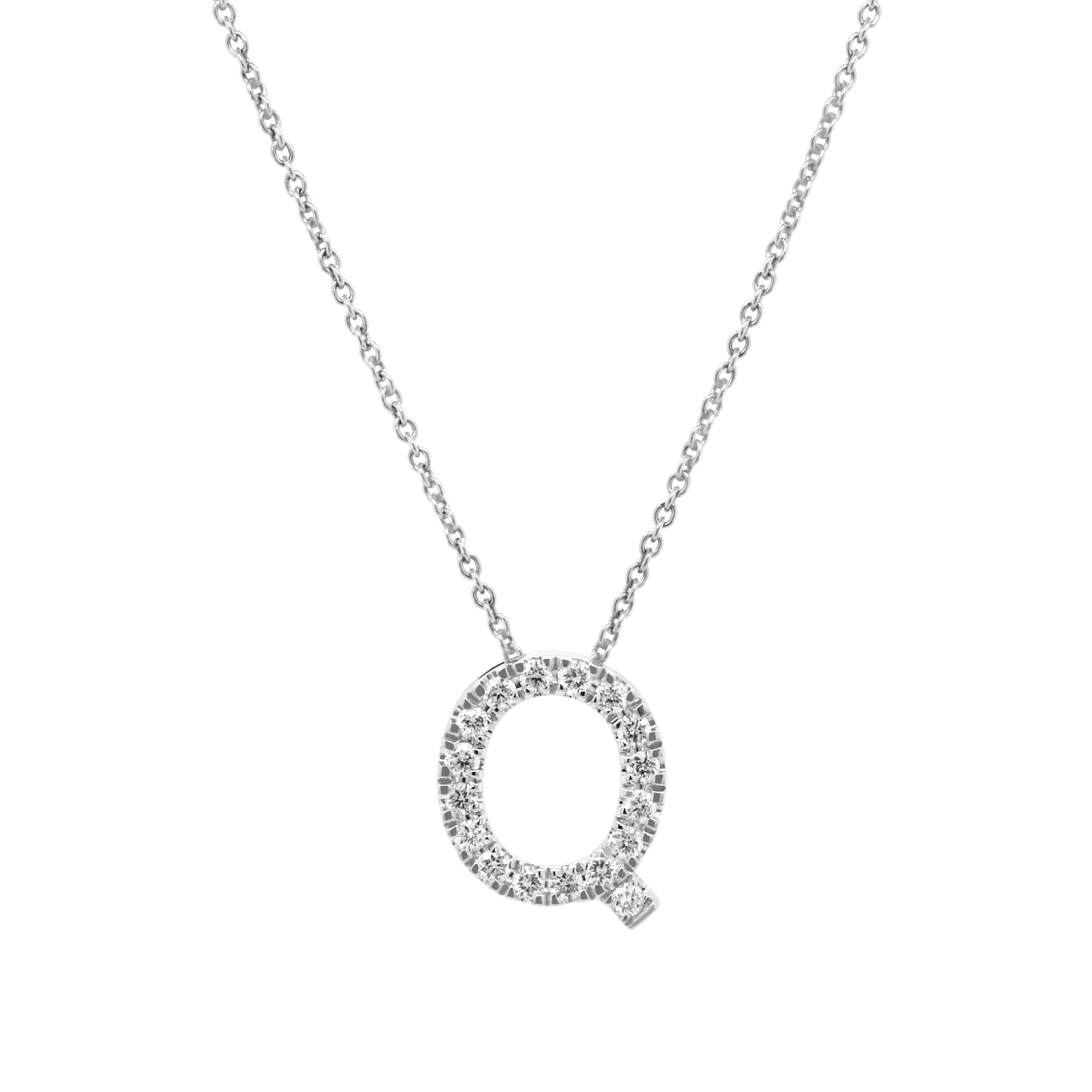 Initial "Q" Diamond Pendant Necklace K18 White Gold
