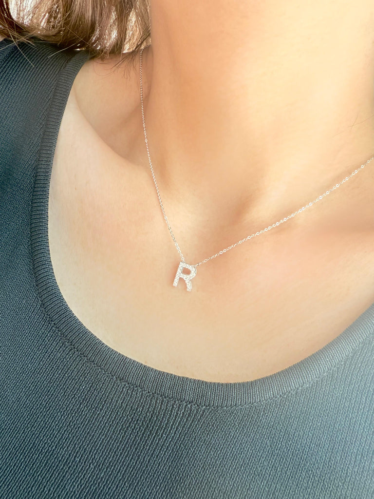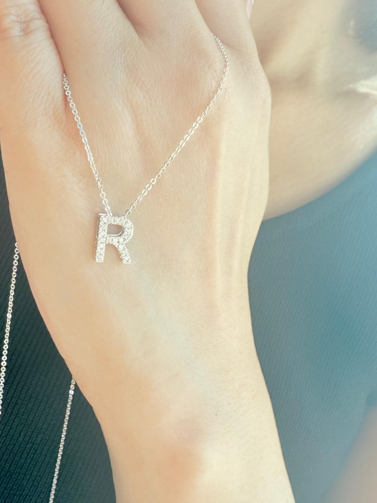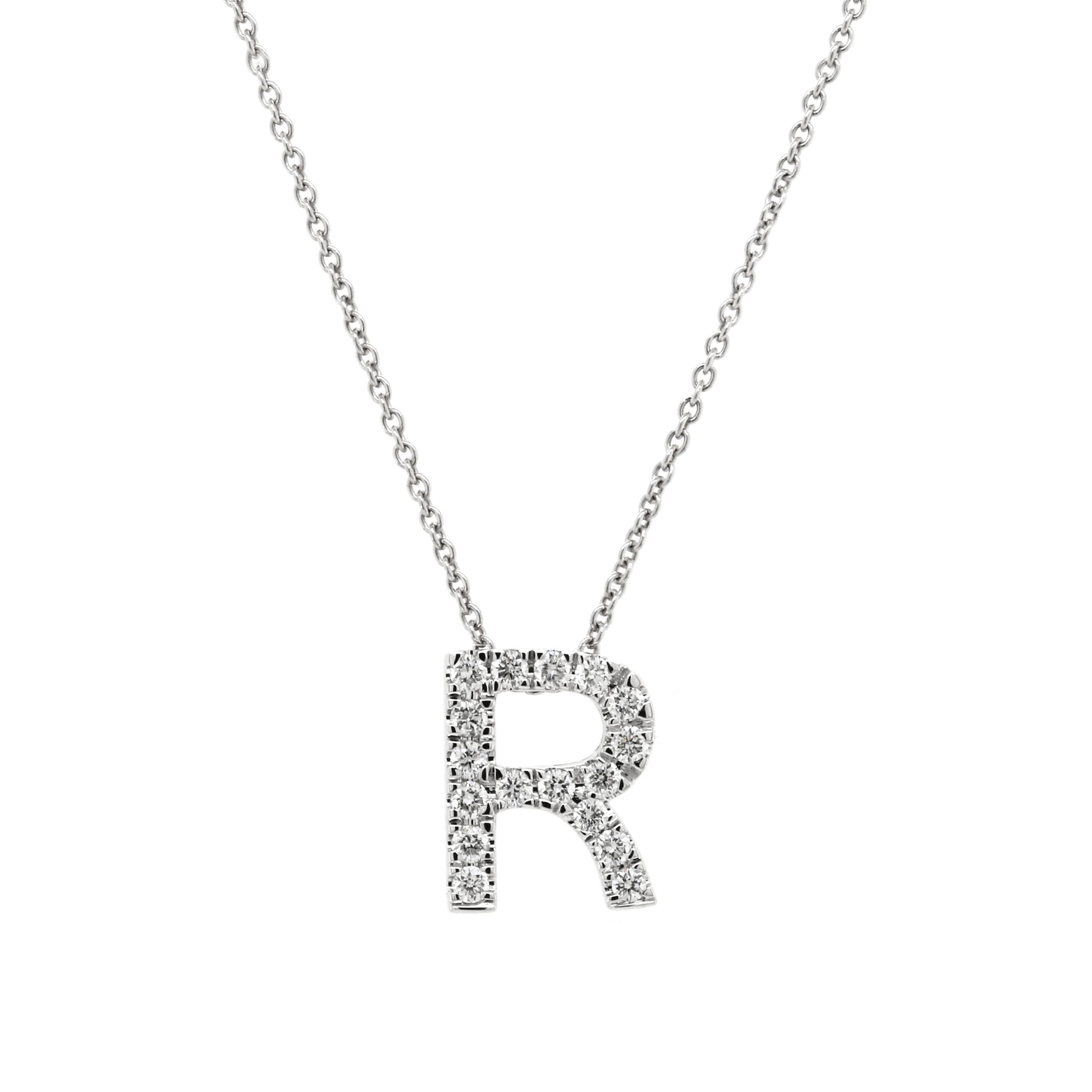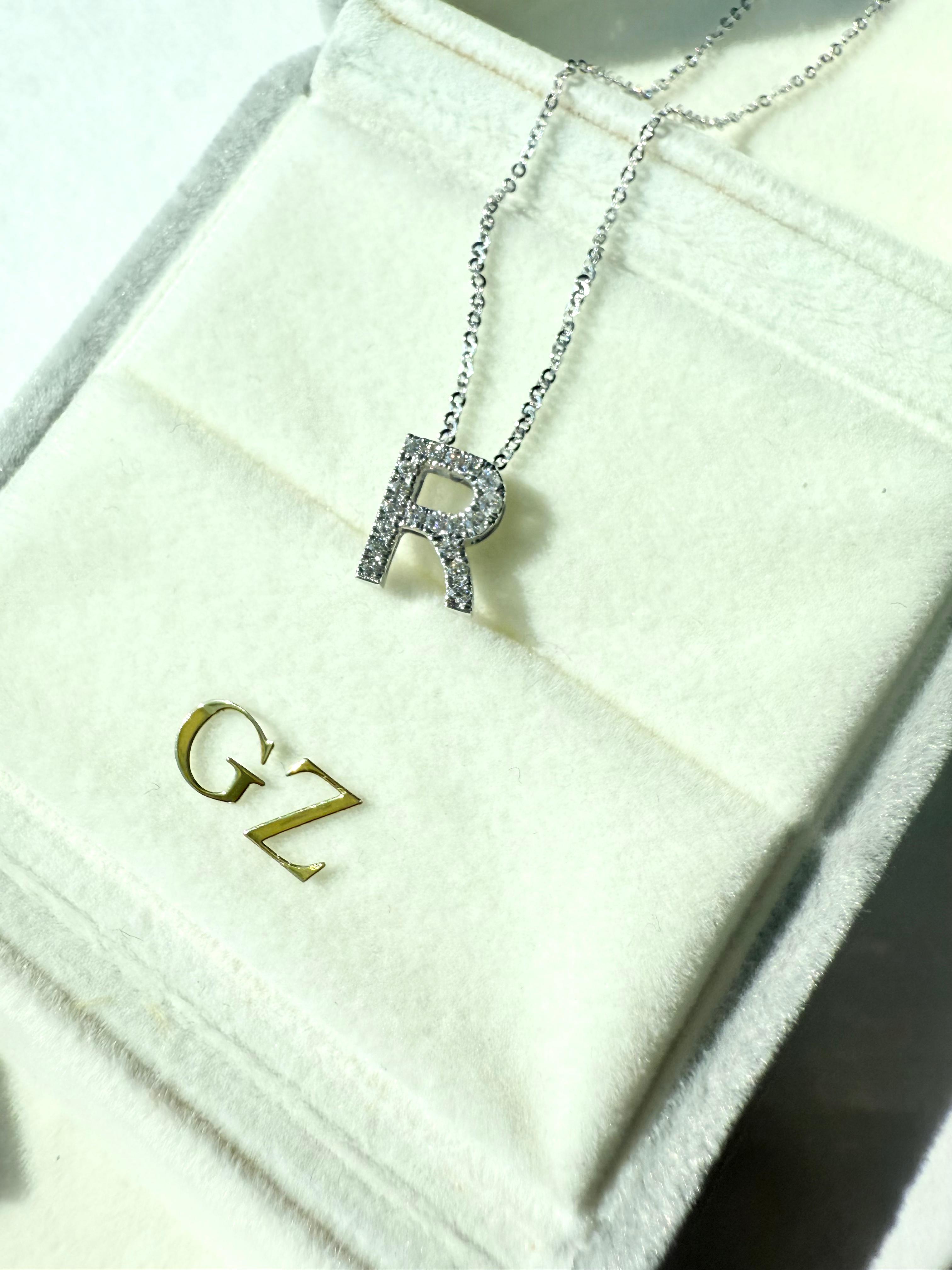 Initial "R" Diamond Pendant Necklace K18 White Gold