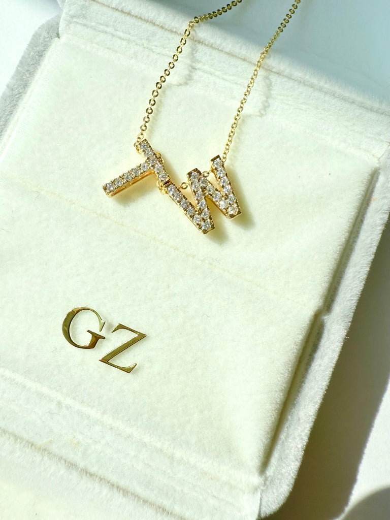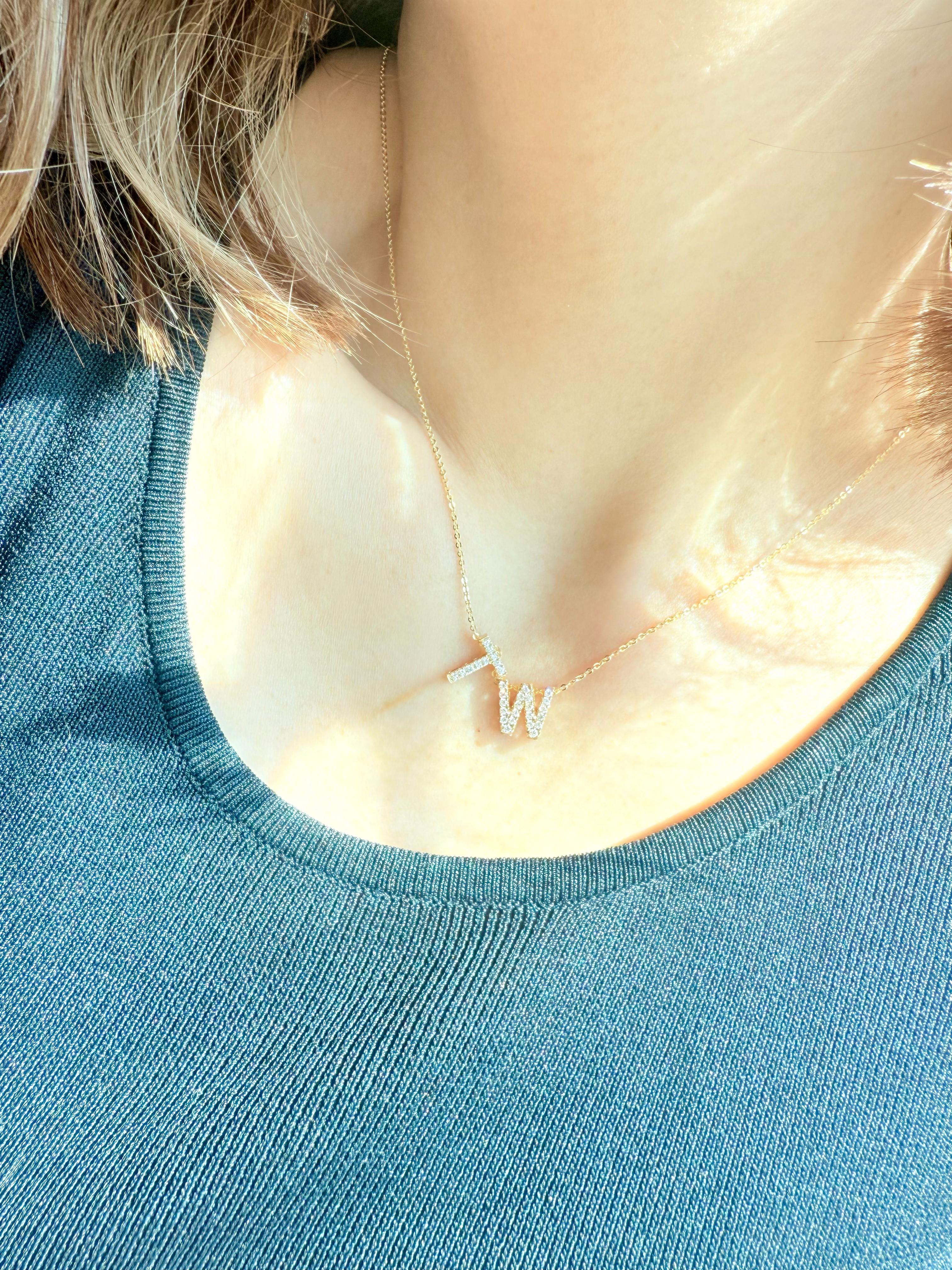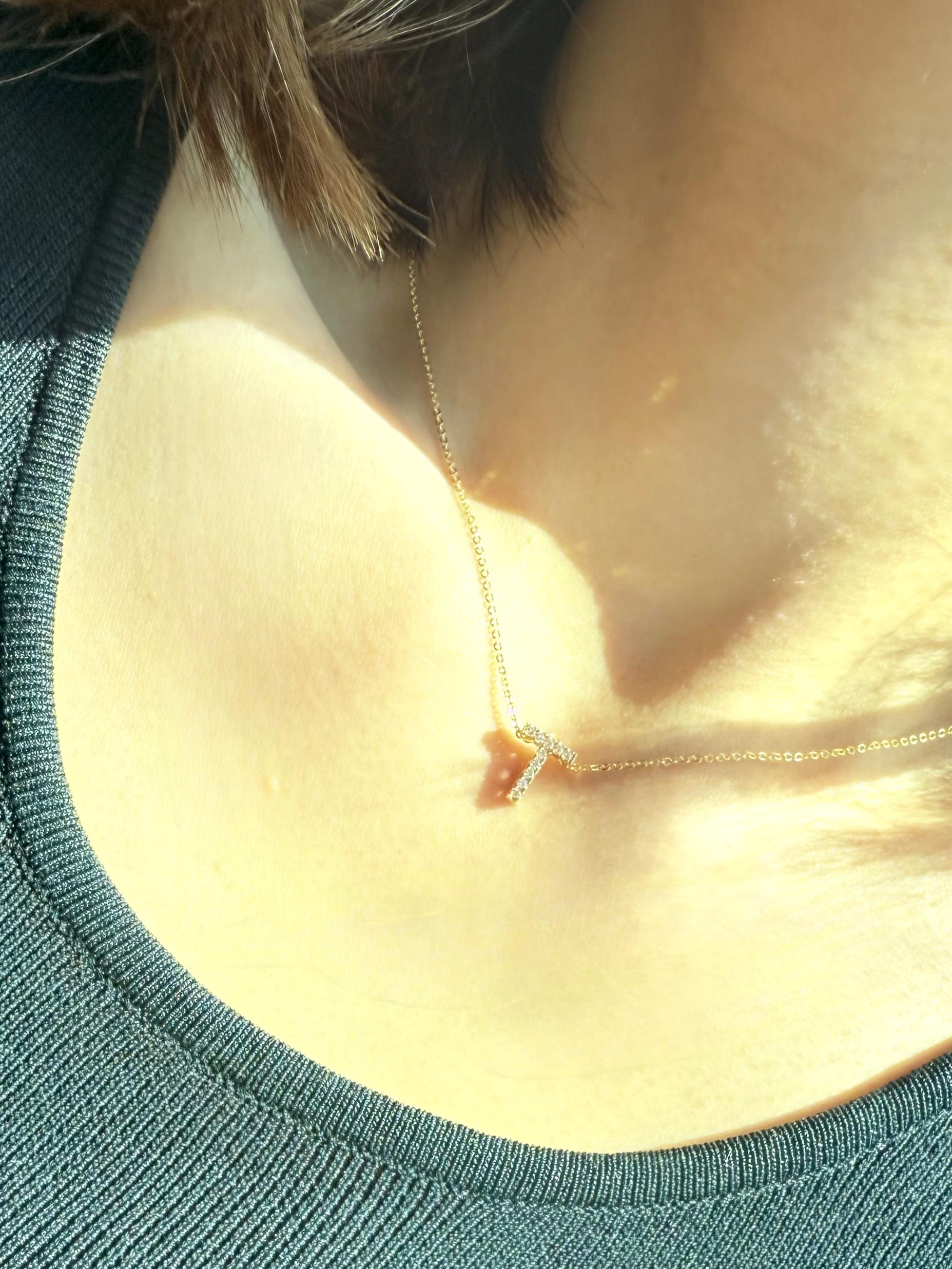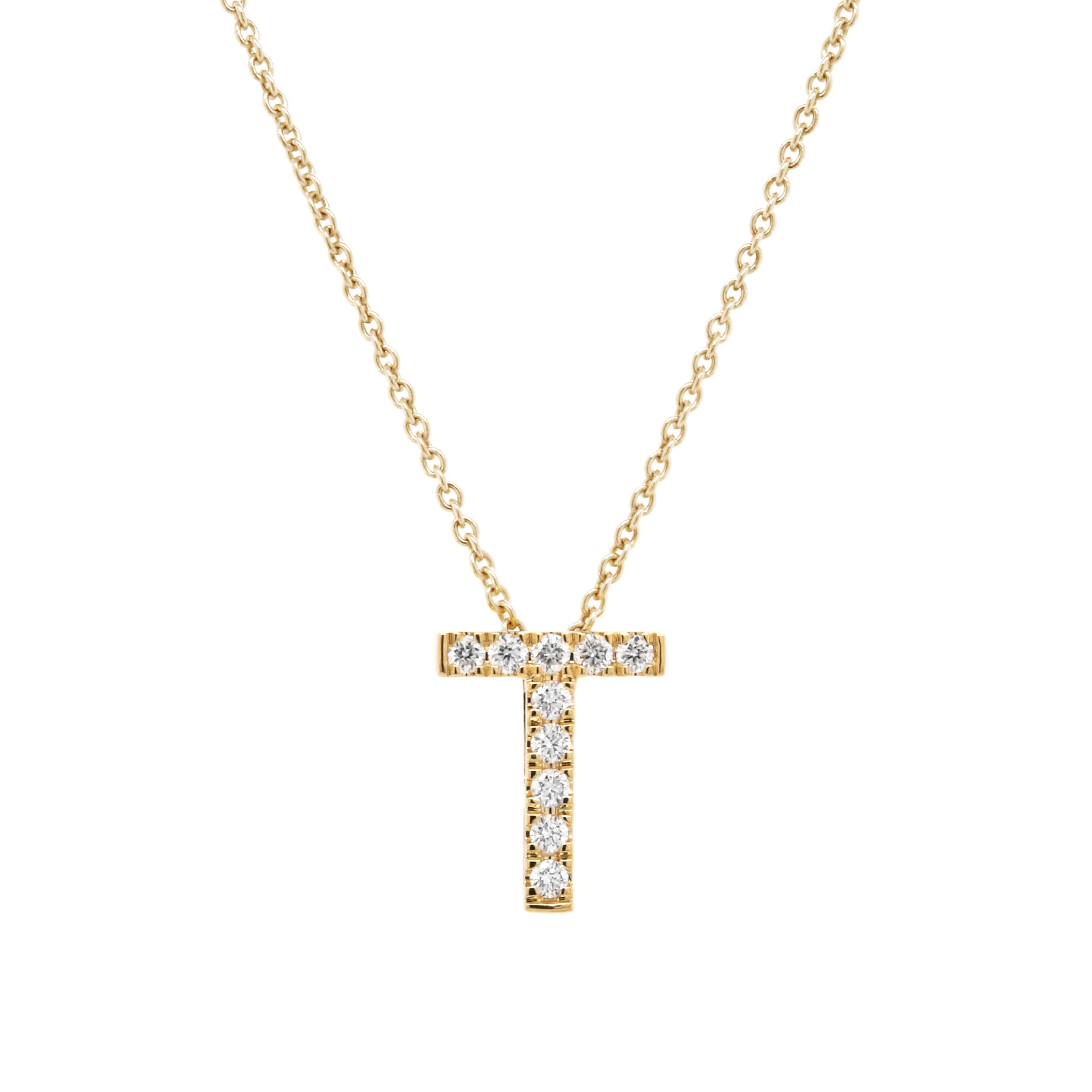 Initial "T" Diamond Pendant Necklace K18 Yellow Gold