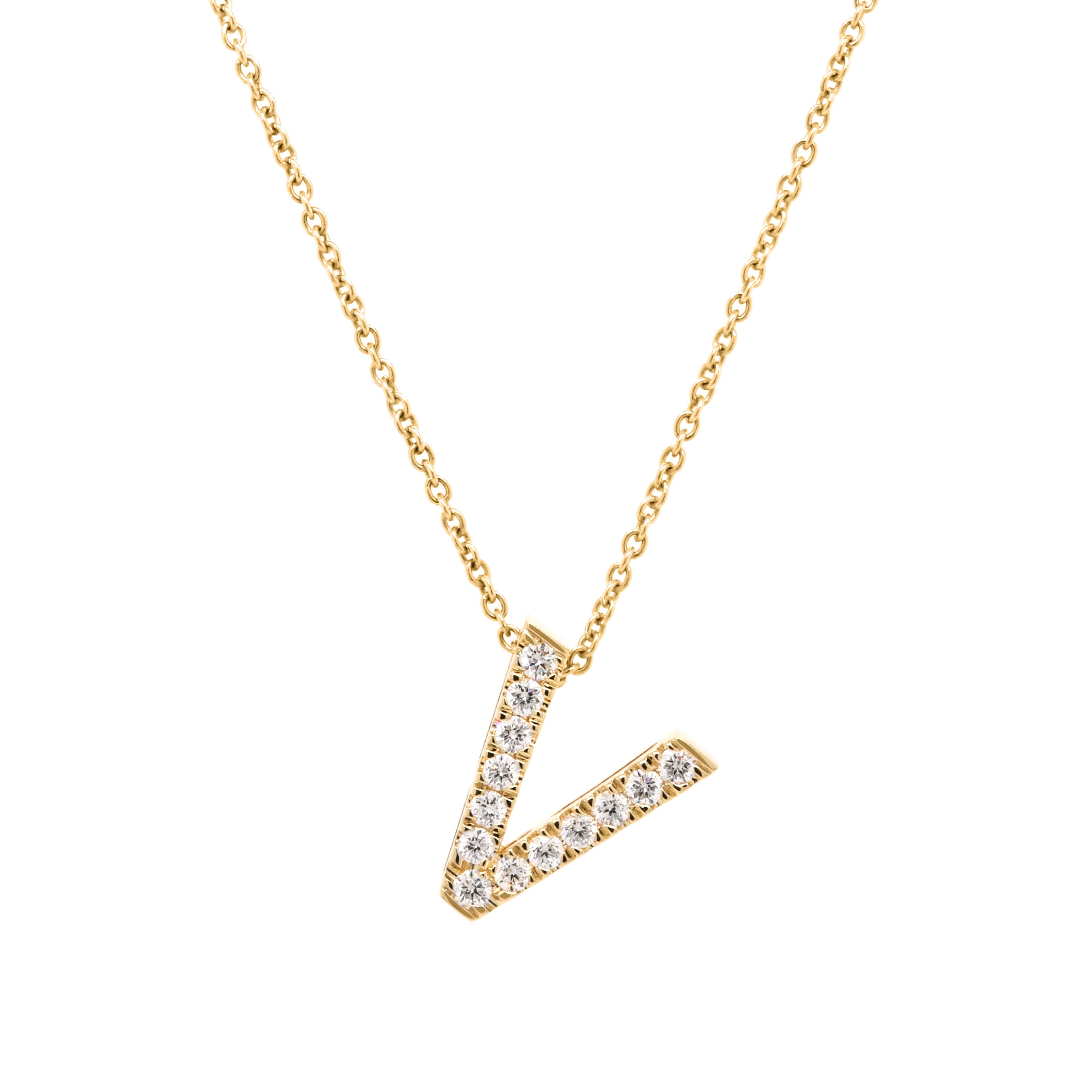 Initial "V" Diamond Pendant Necklace K18 Yellow Gold