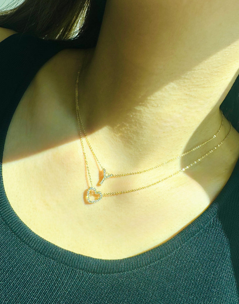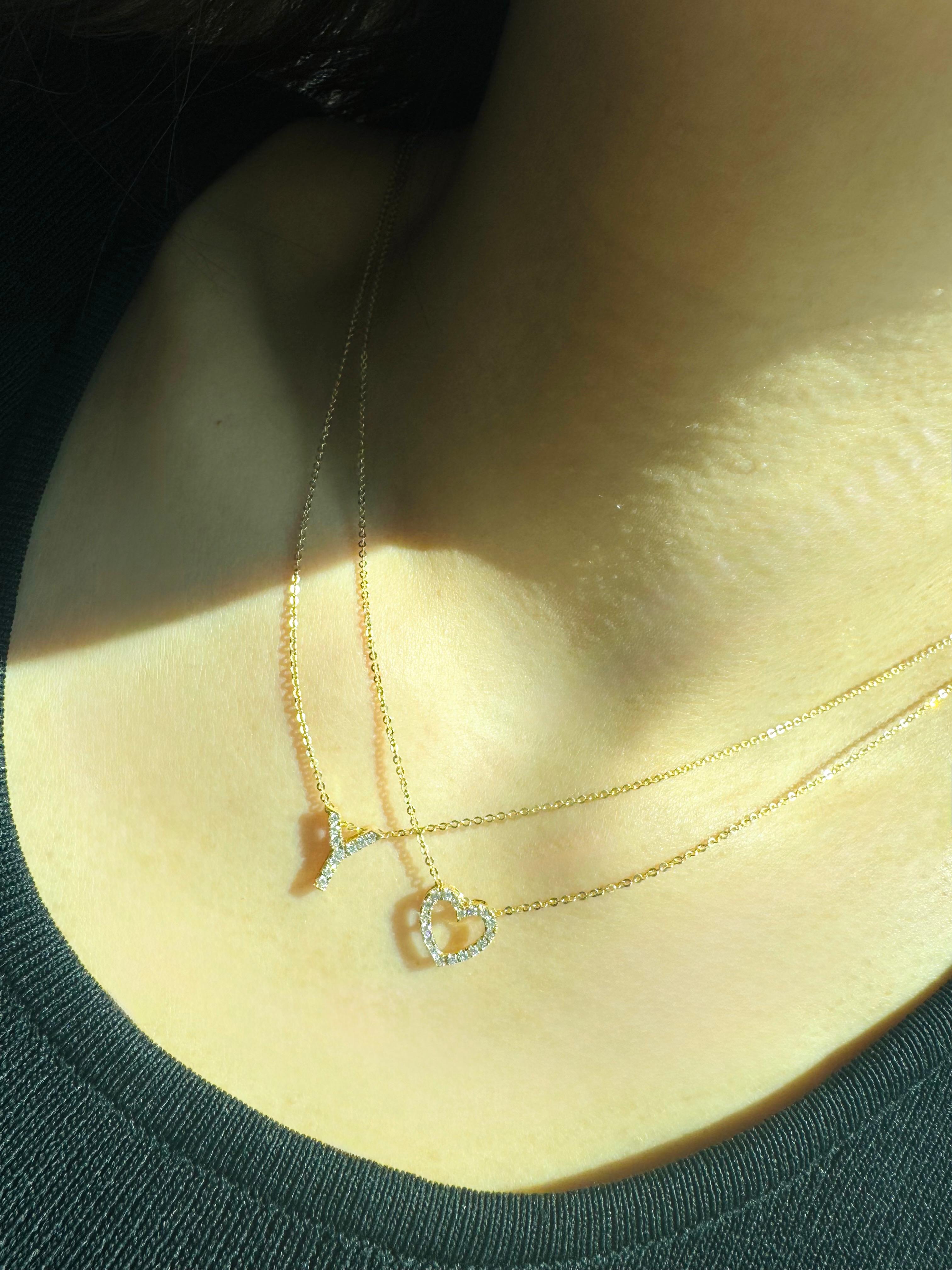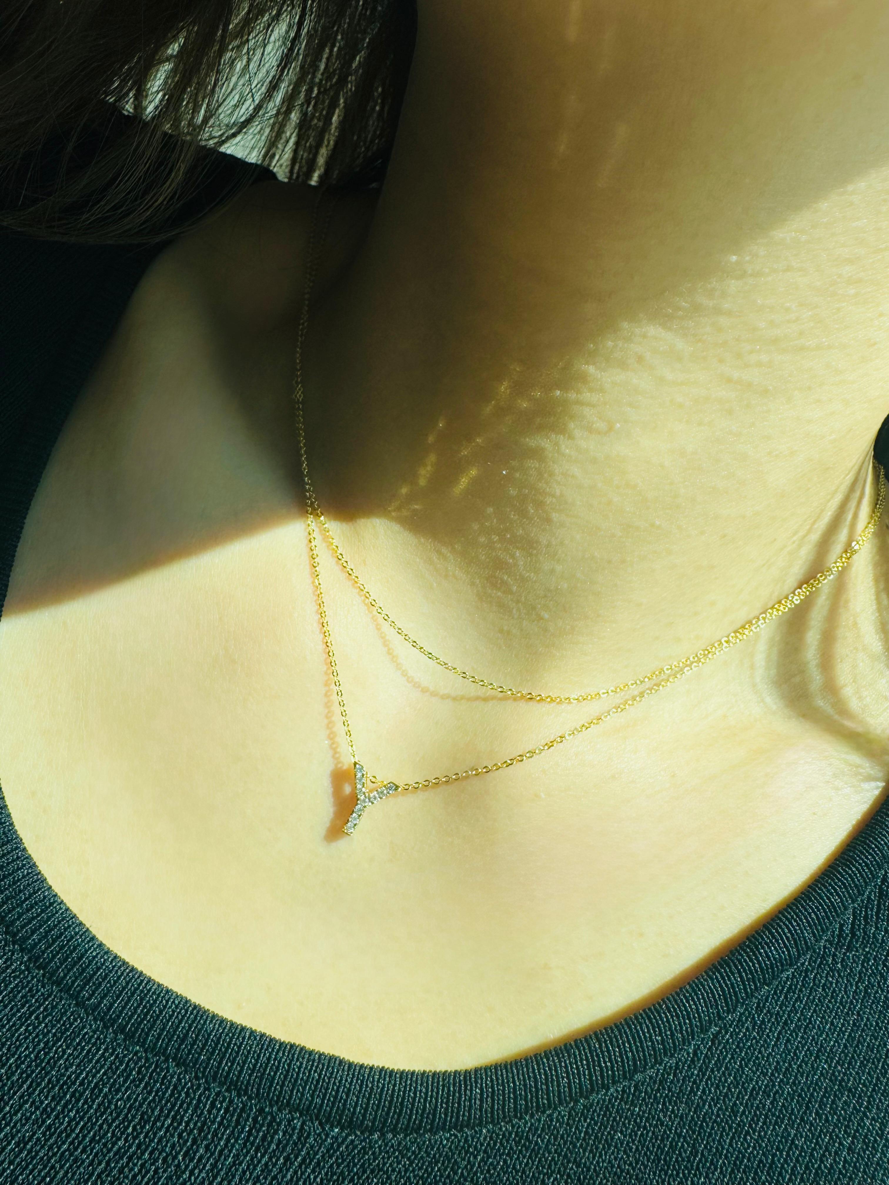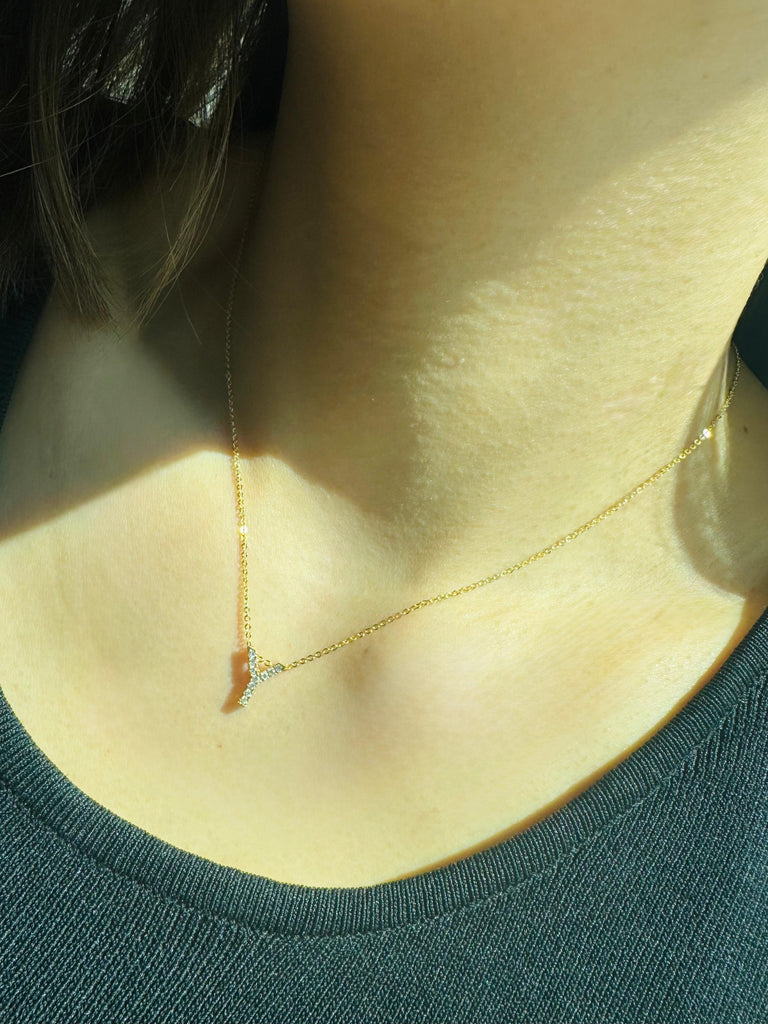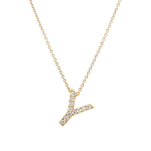 Initial "Y" Diamond Pendant Necklace K18 Yellow Gold