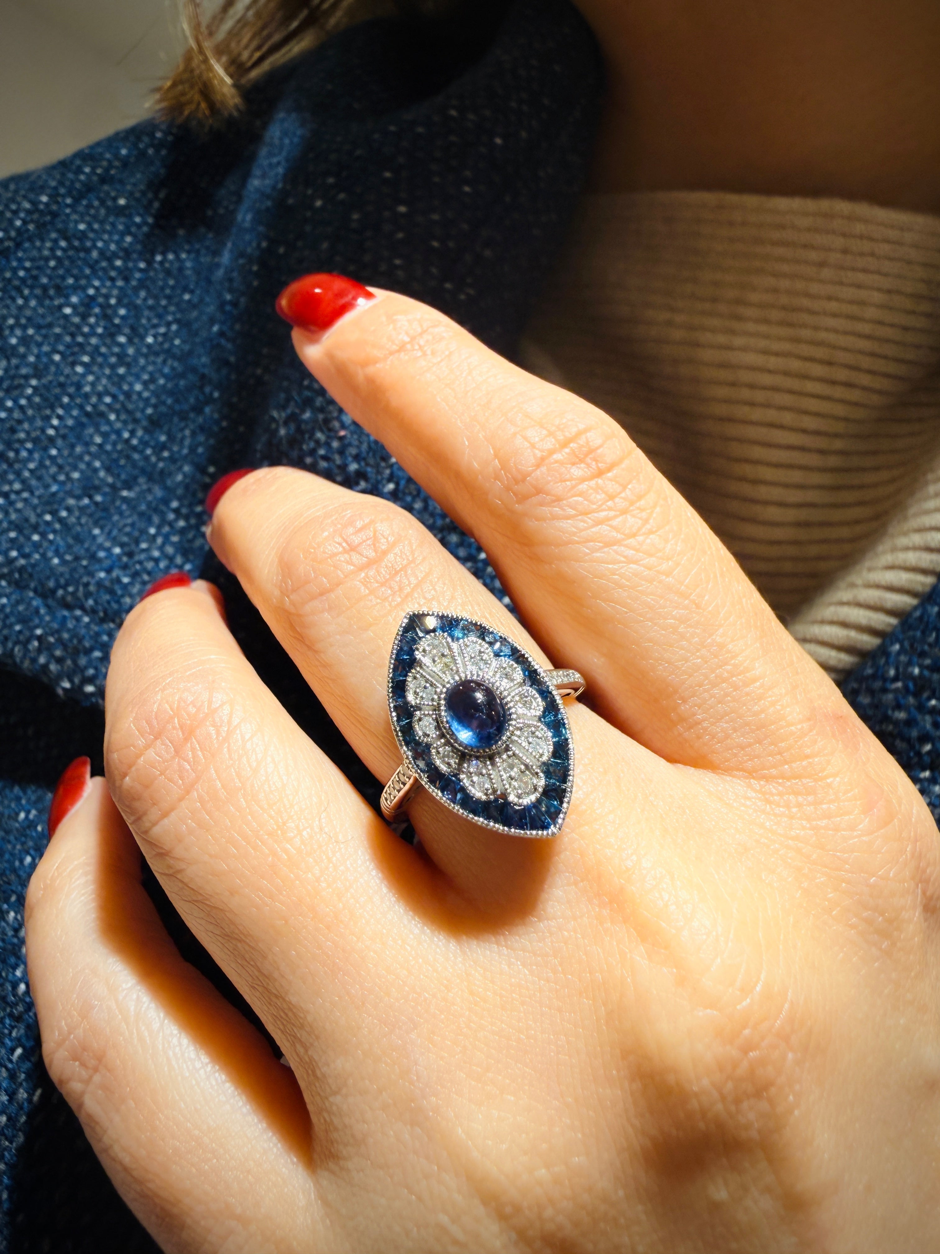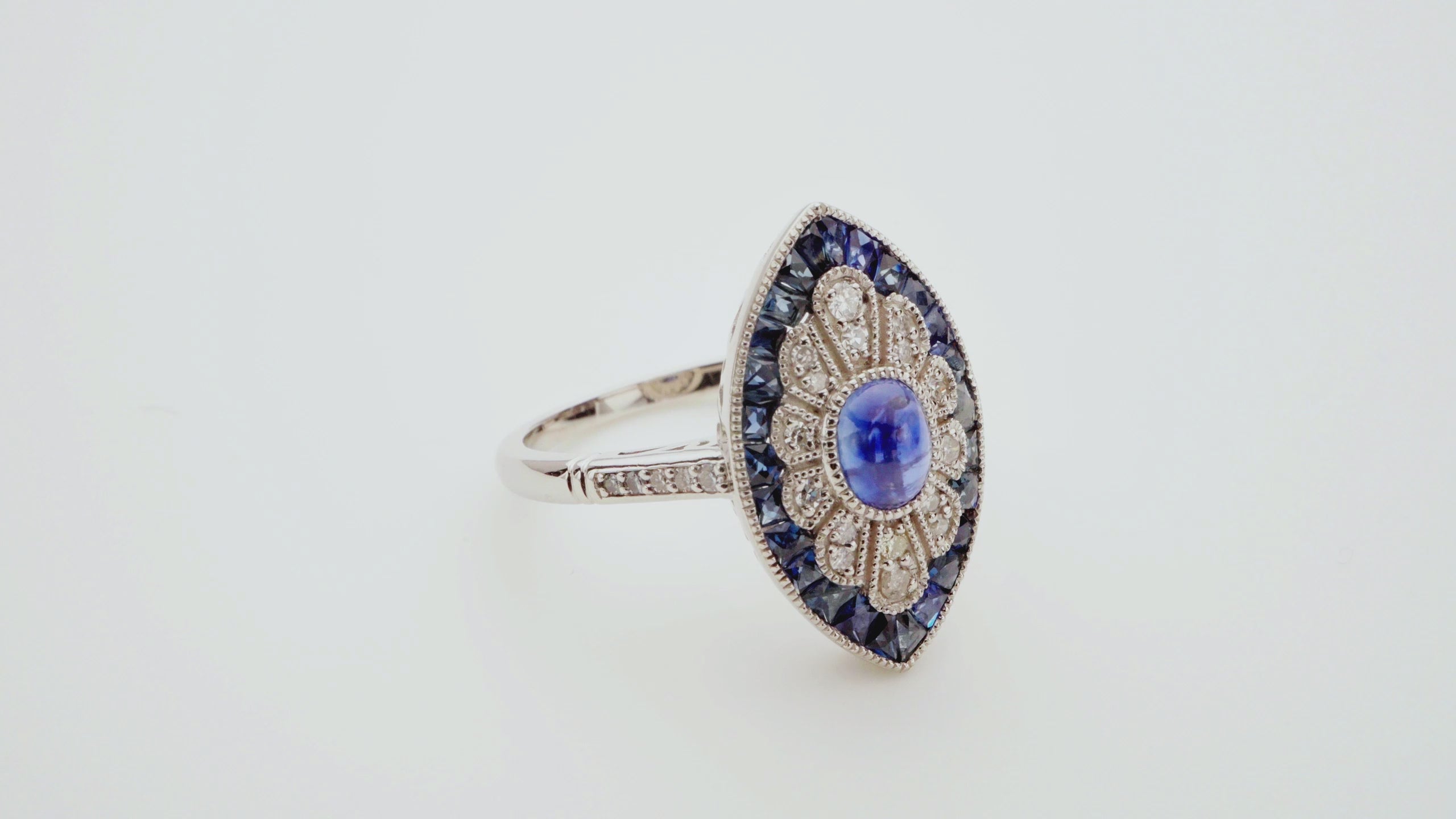 0.338ct Vintage Blue Sapphire Diamond Ring PT950