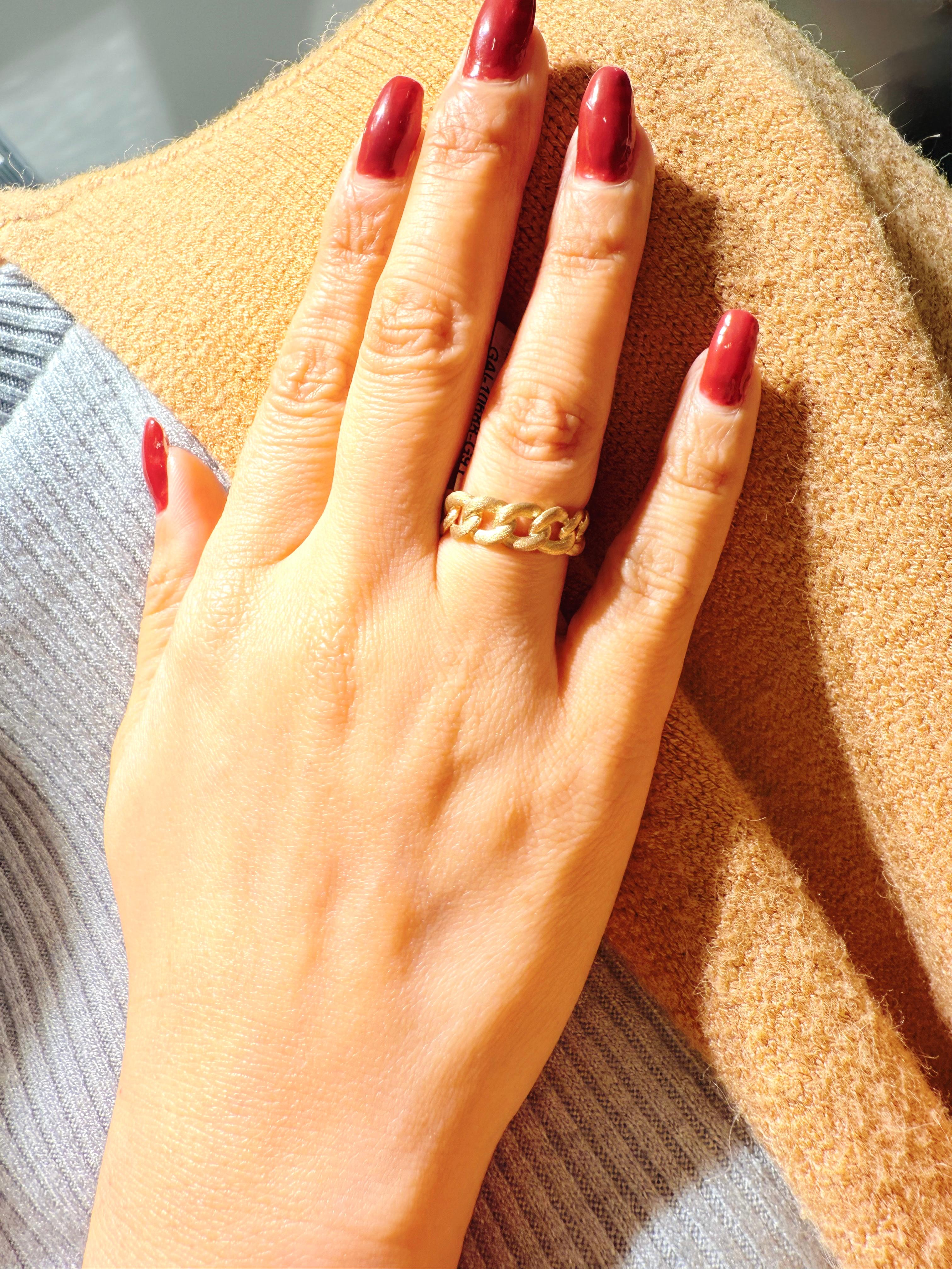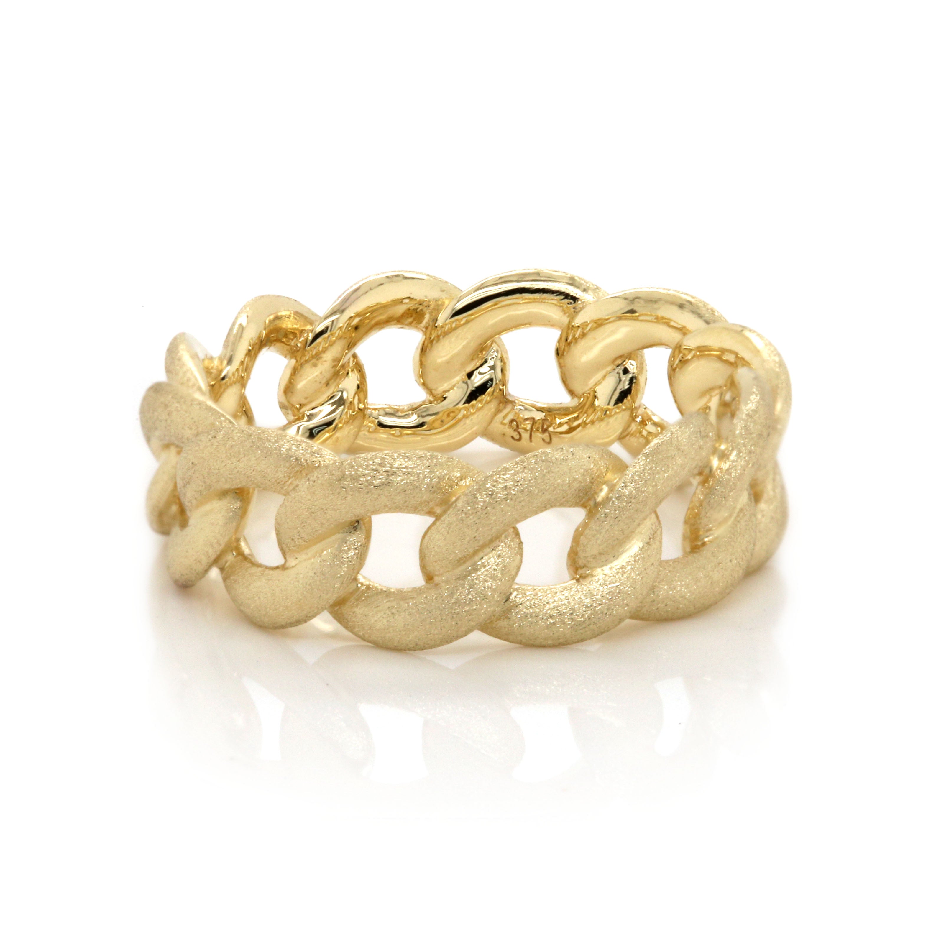Gold Chain Links Cubana Ring in 9K Ring Width 6.8mm