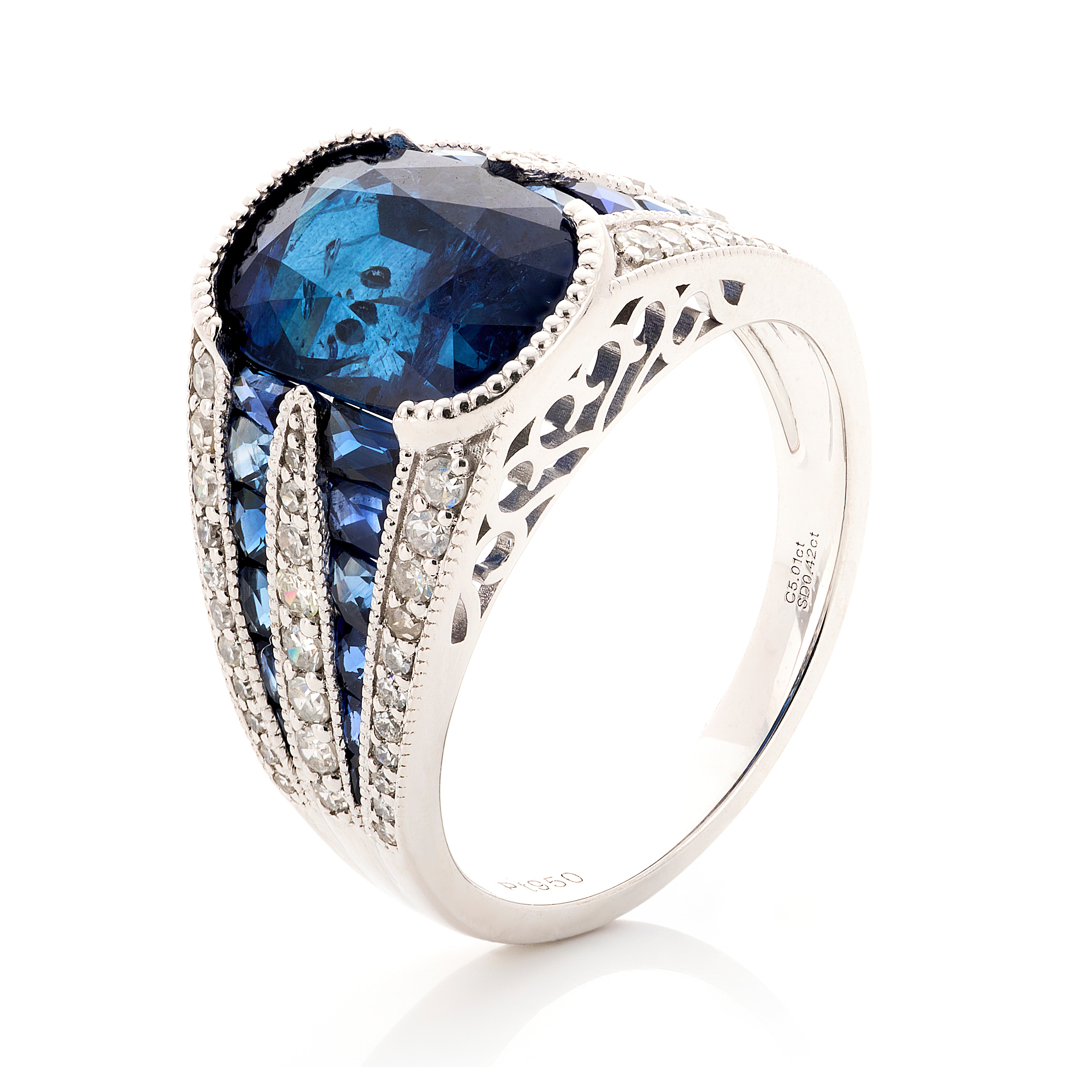 5.01ct Vintage Blue Sapphire Diamond Ring PT950