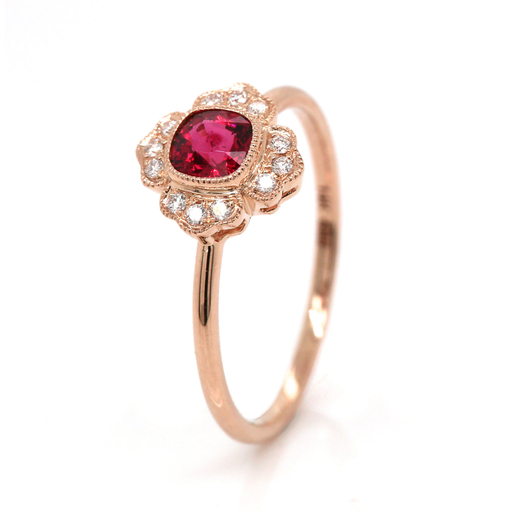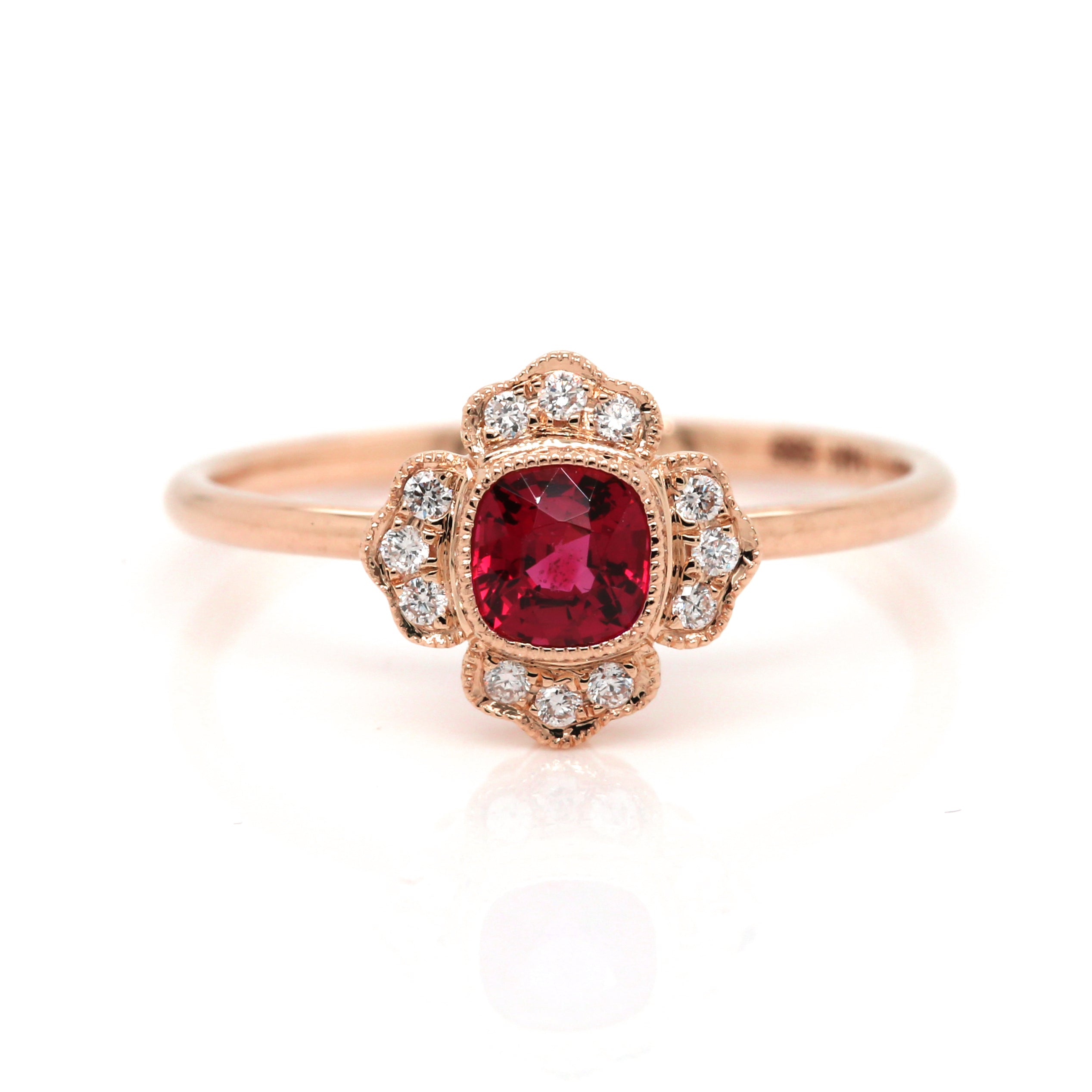 Spinel & Australian Argyle Diamond Ring in 14K Gold