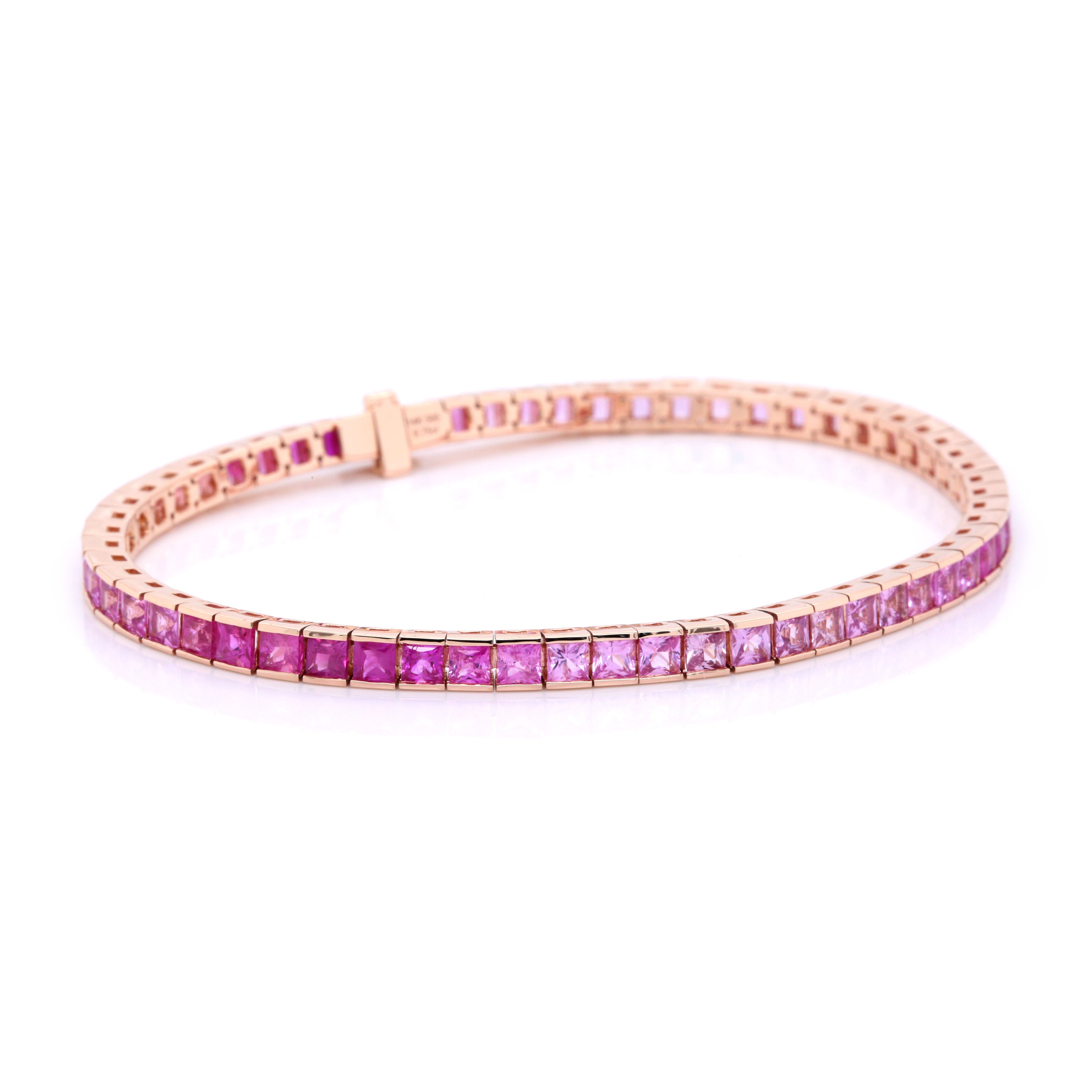 6.745ct Pink Sapphire Princess Cut Tennis Bracelet in 14K Gold