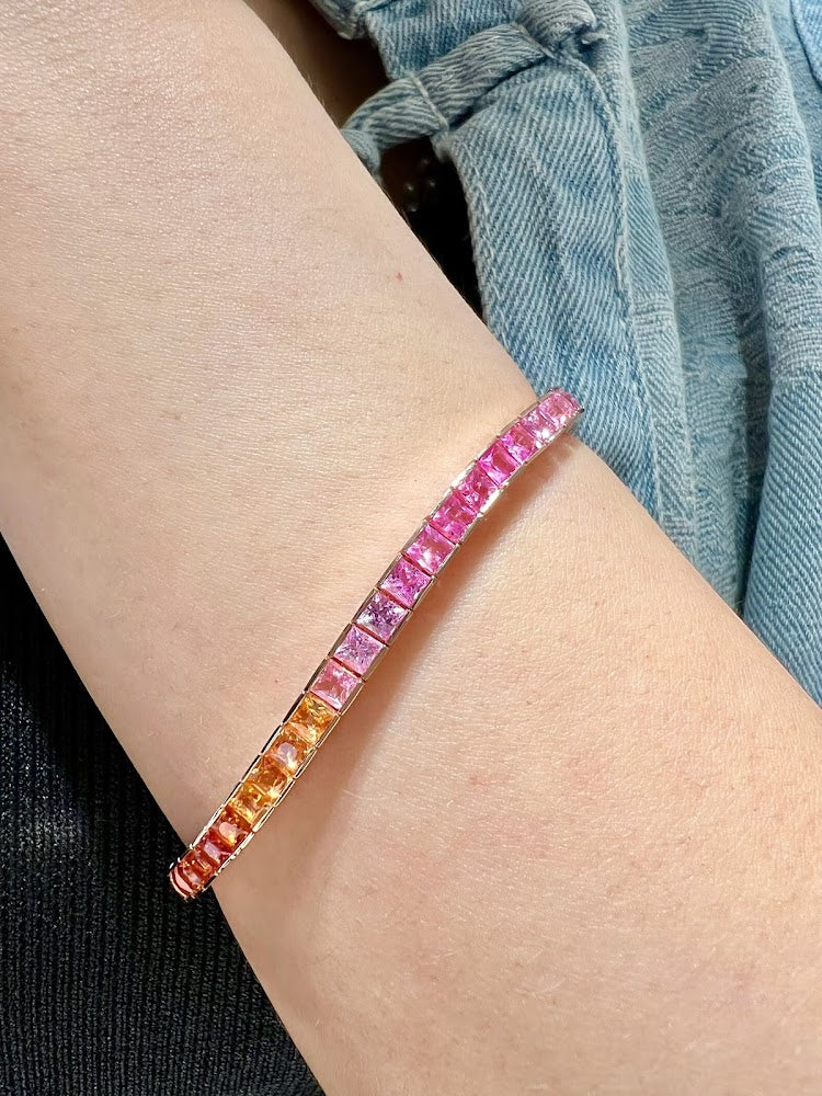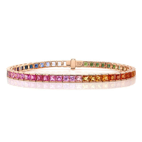 9.96ct Multi Color Sapphire Princess Cut Tennis Bracelet in 14K Rose Gold