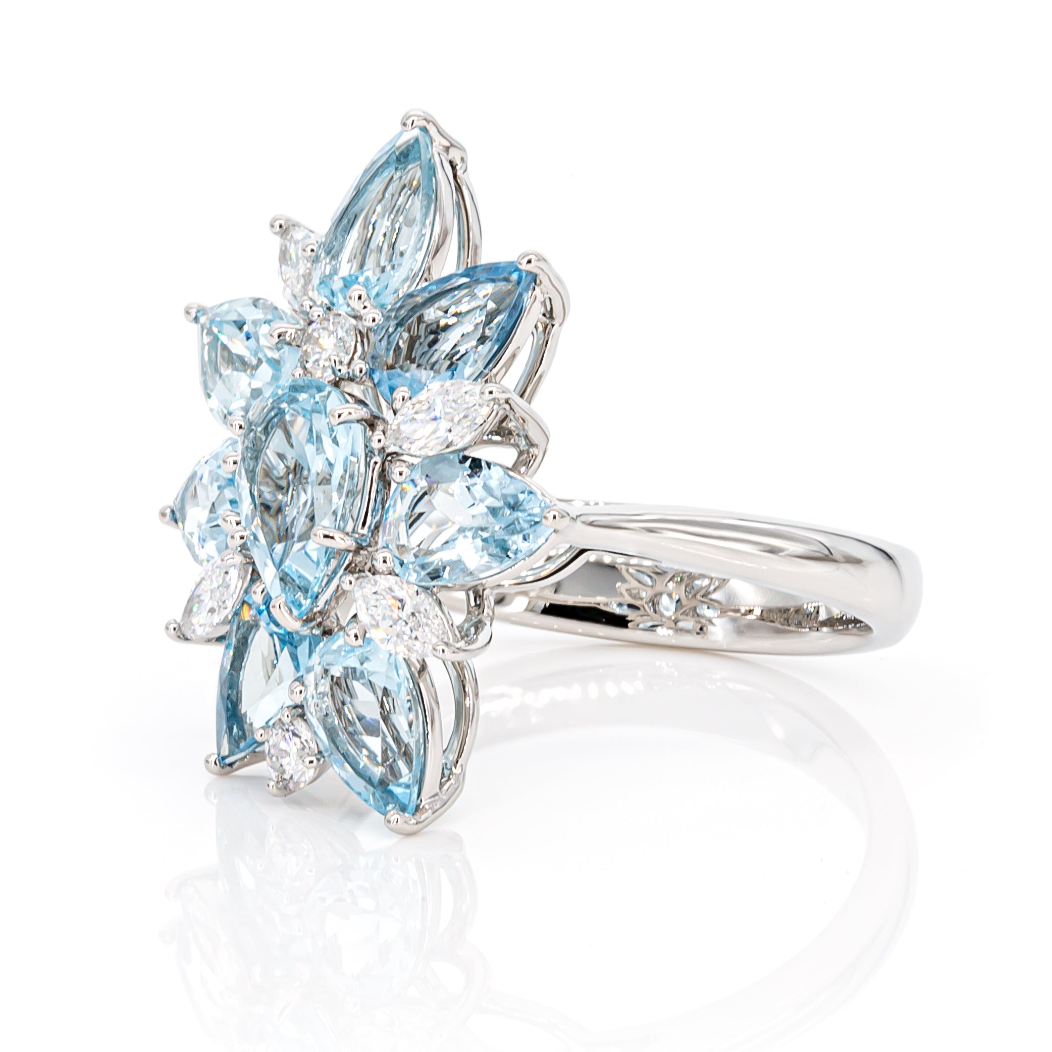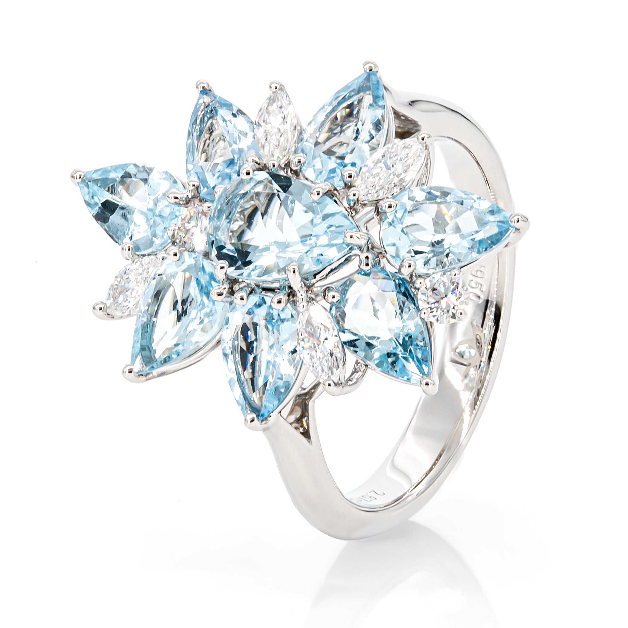 Make a statement with this bold 2.67ct aquamarine ring, accented by natural diamonds and crafted in durable PT950 platinum for lasting impact. Sized HK16.6mm, perfect match of  Aquamarine Diamond Earrings.