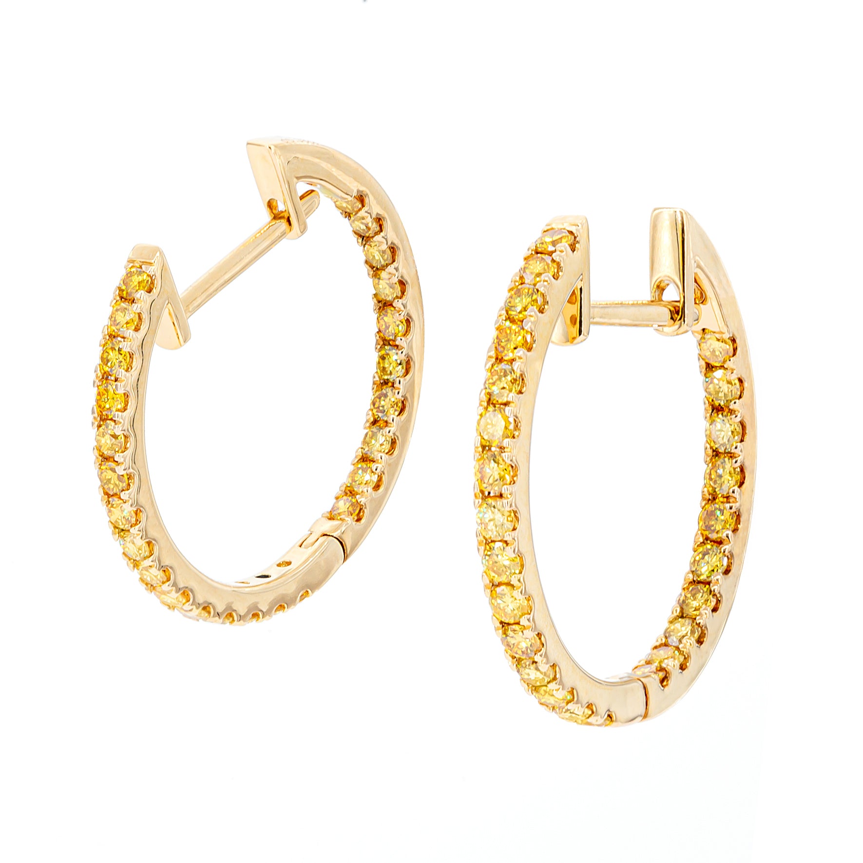 0.75ct - 20mm Yellow Diamond Round Hoop Earrings in 18K Yellow Gold