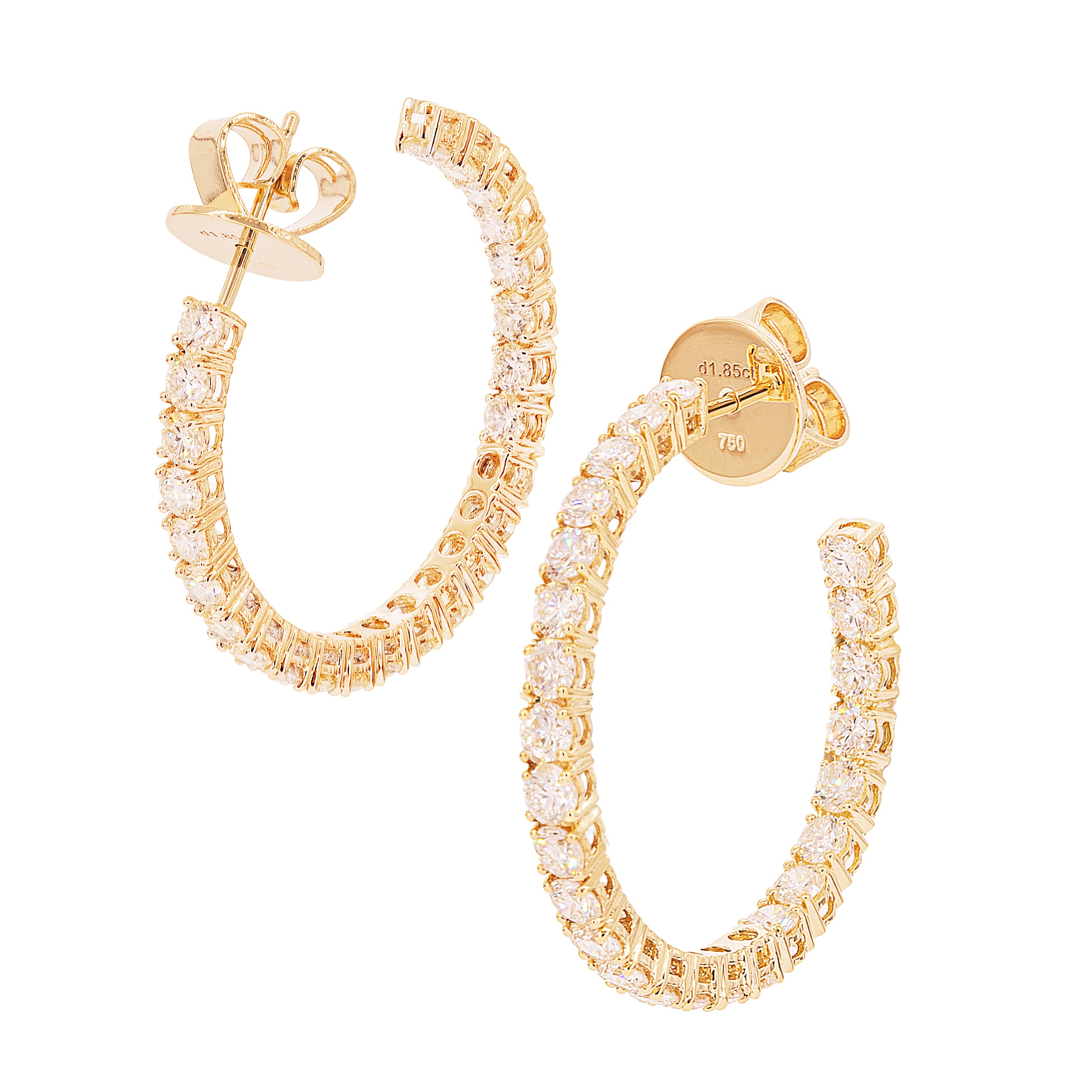 3.71ct - 30mm Round Hoop Diamond Earrings in 18K Yellow Gold
