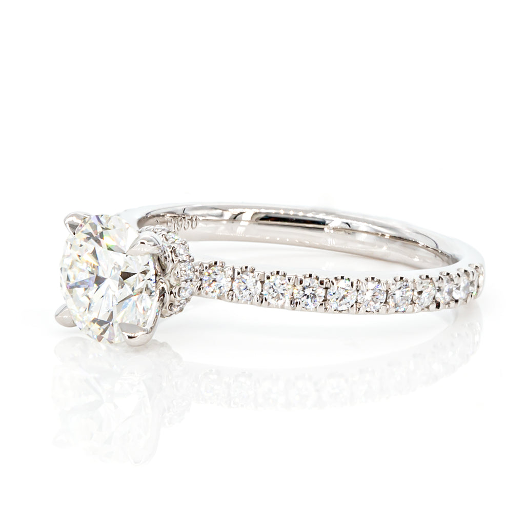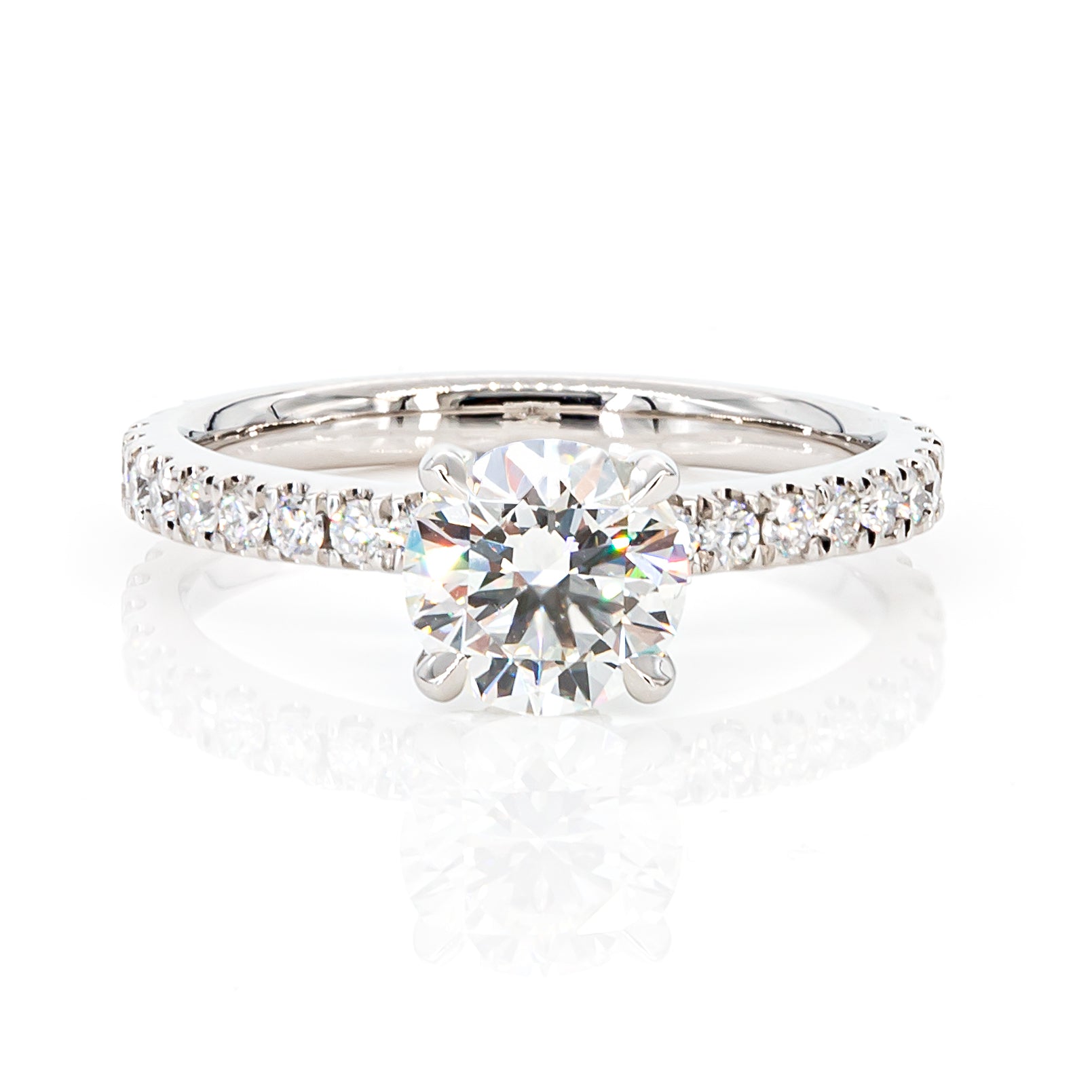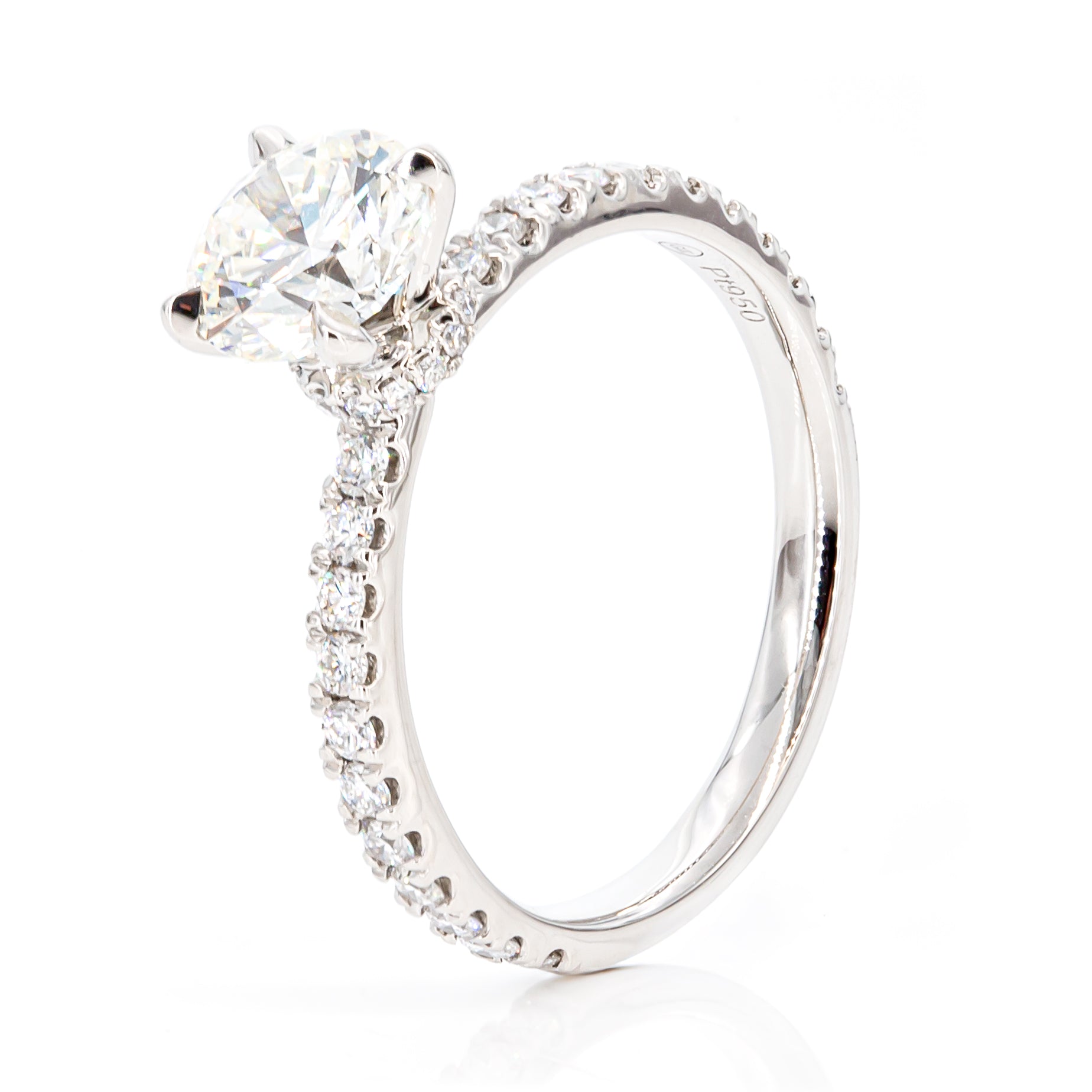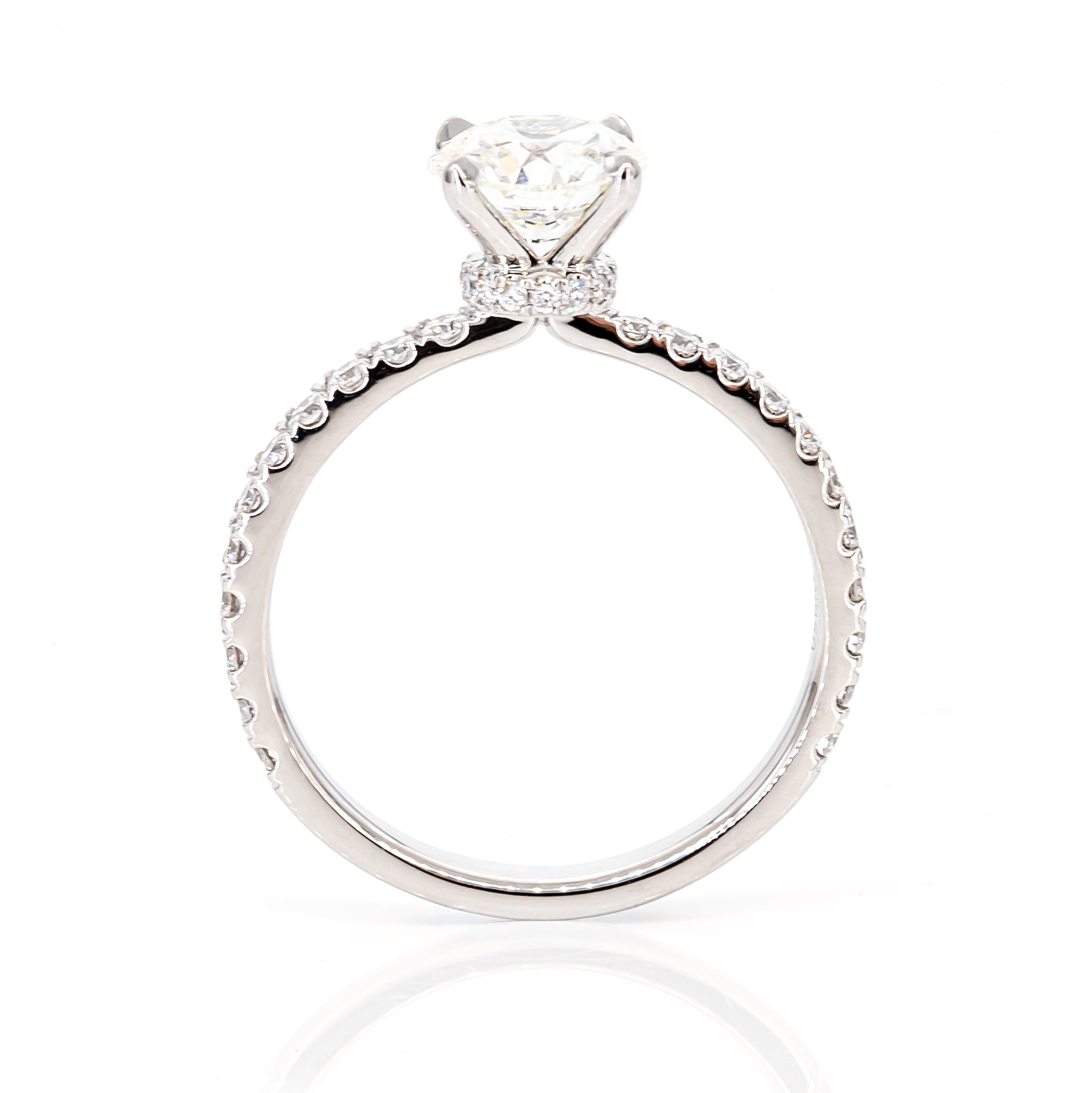 Classic Pavé-set 1.09ct GIA Diamond Engagement Ring set in Platinum 950. Shank encrusted with pavé set natural round diamonds in 0.38ct.