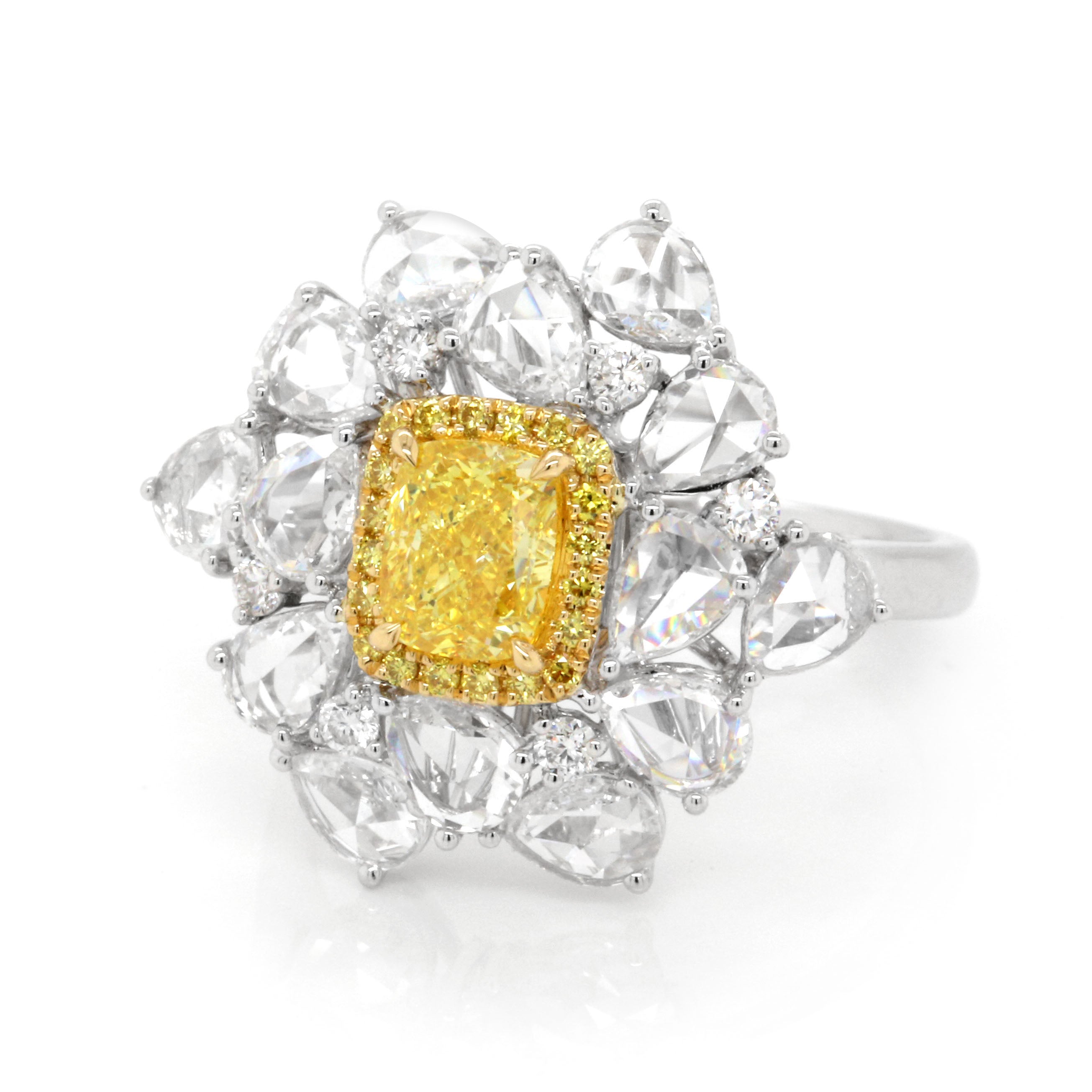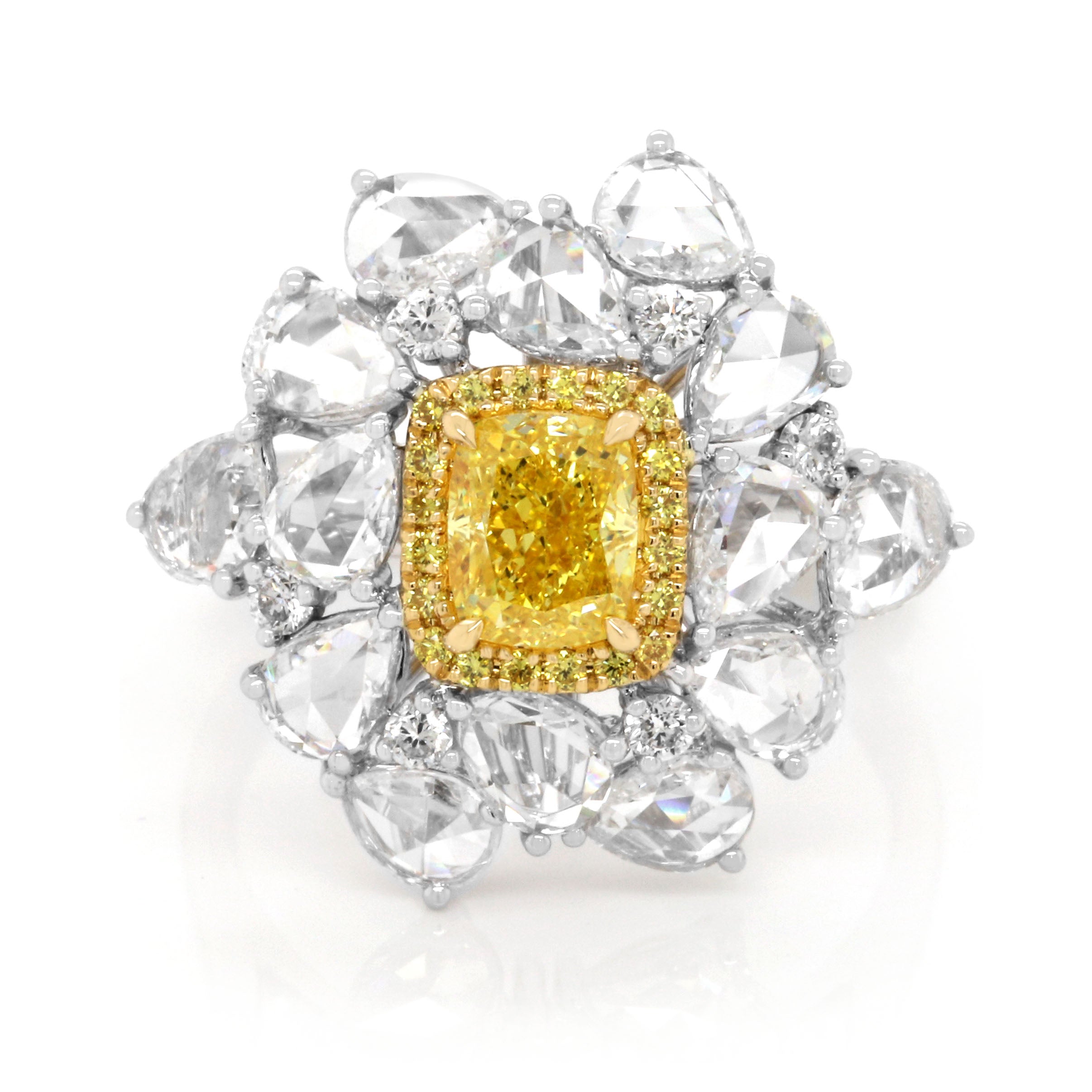 1.00ct GIA Fancy Intense Cushion Cut Yellow Diamond Ring in 18K Gold - Ask for Details