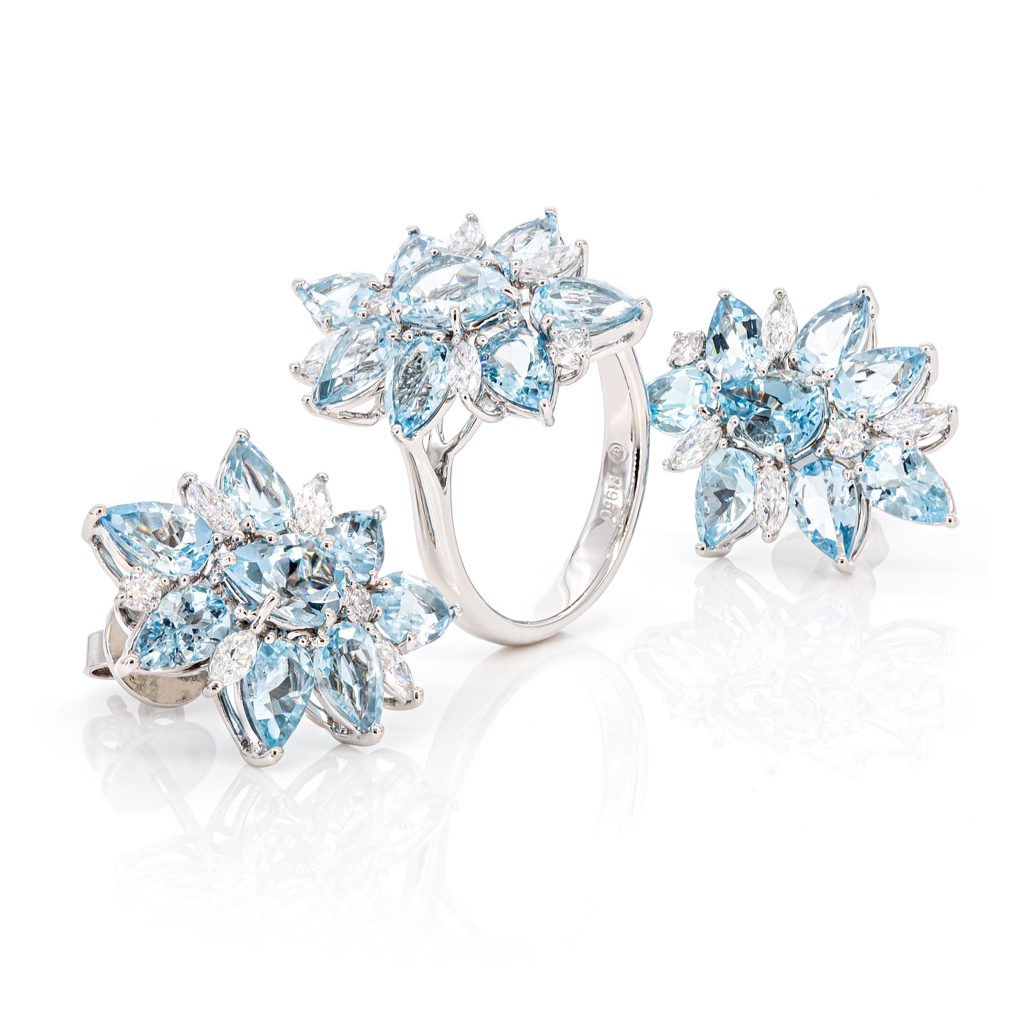 Make a bold statement with these 5.98ct Aquamarine Diamond Earrings crafted in PT950 platinum. Featuring 4 round diamonds (0.17ct) and 8 marquise diamonds (0.51ct), this pair weighs 6.71 grams. Designed for those who dare to shine brilliantly, these earrings blend vivid color and sparkling elegance for an unforgettable look.  Aquamarine Diamond Ring available.