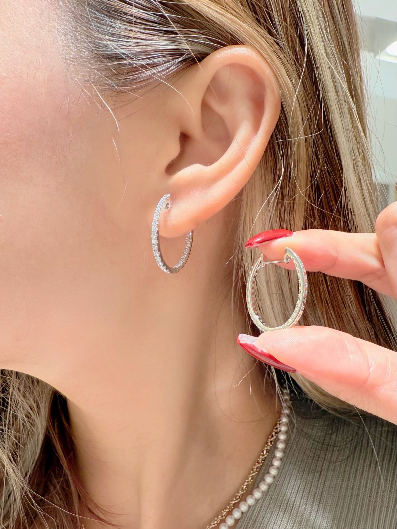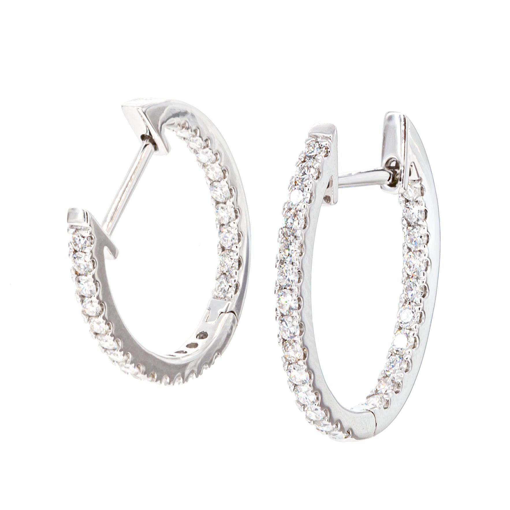 0.70ct - 20mm Oval Diamond Hoop Earrings in 18K White Gold