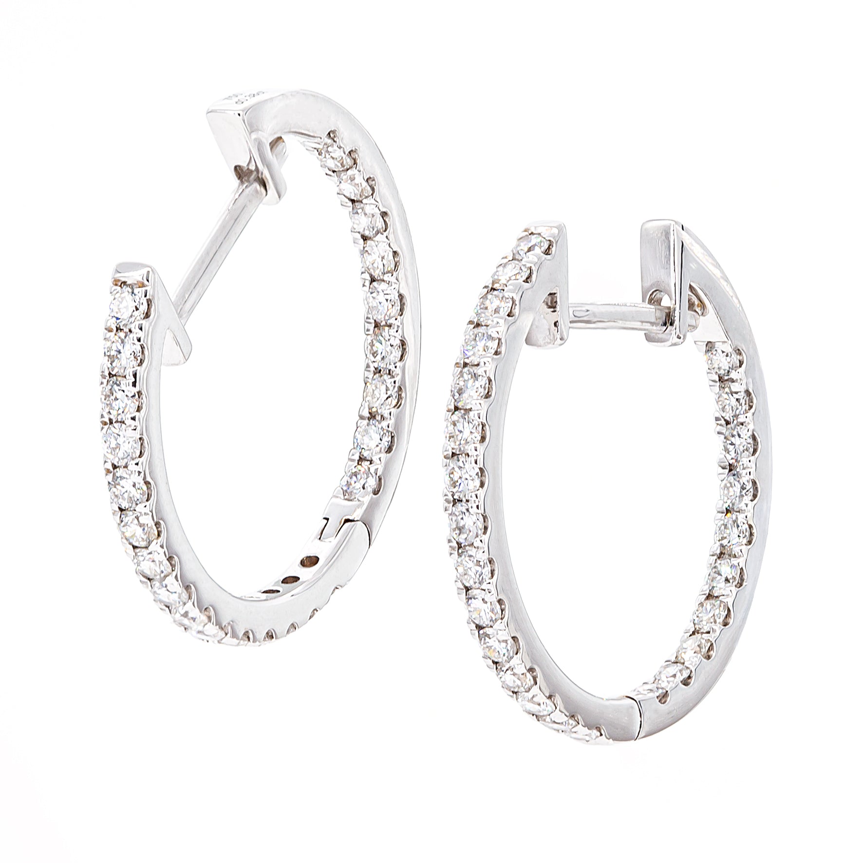 0.75ct - 20mm Round Diamond Hoop Earrings in 18K White Gold