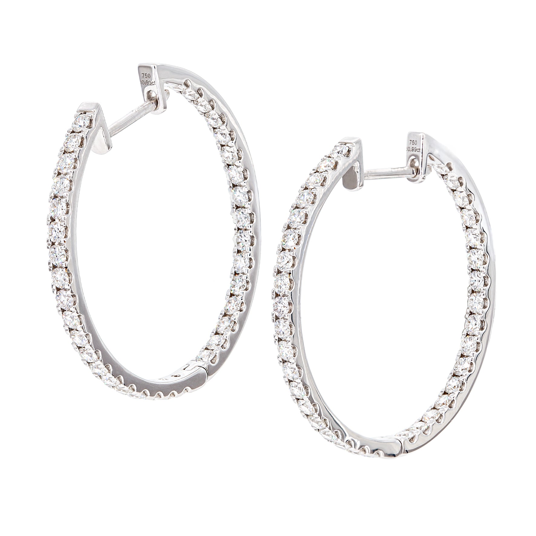 1.98ct - 30mm Round Hoop Diamond Earrings in 18K White Gold