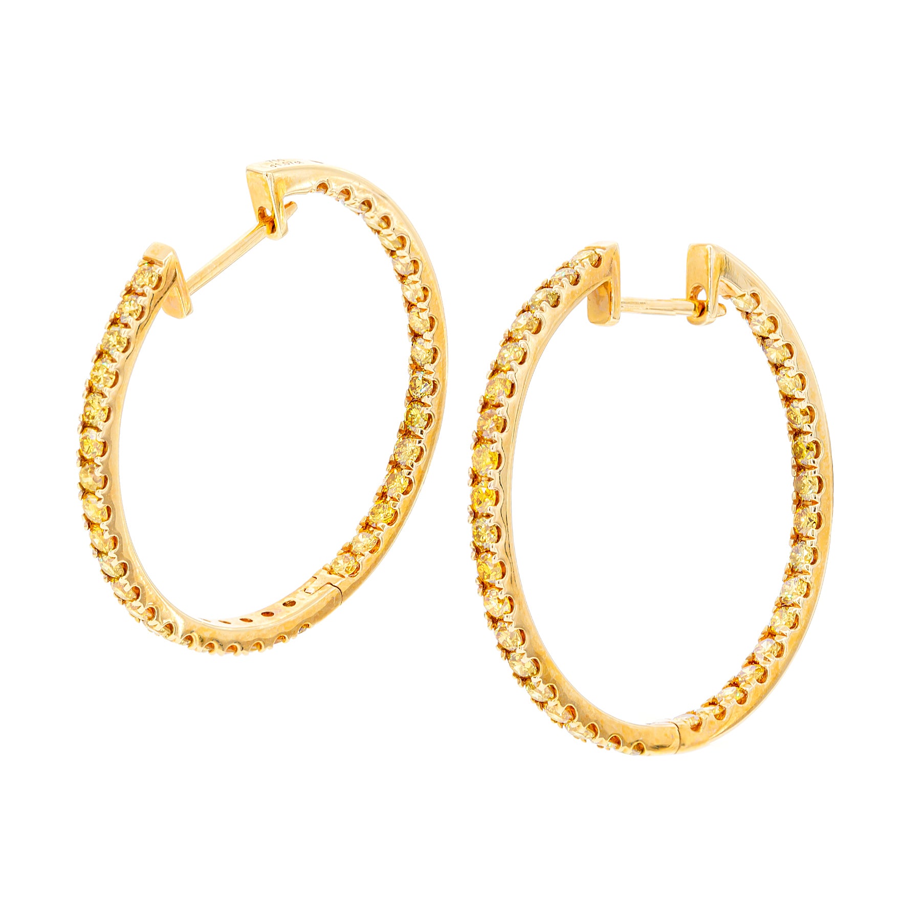 2.14ct - 30mm Round Hoop Diamond Earrings in 18K Yellow Gold