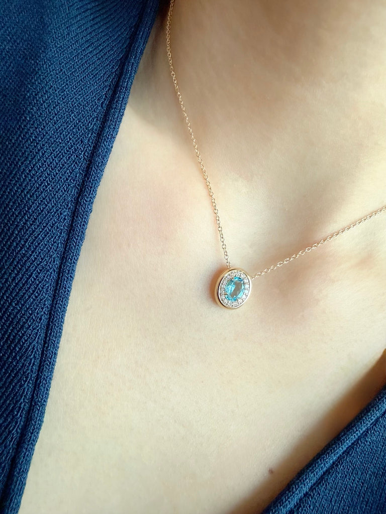 Add an ocean scent with this playful Blue Topaz pendant, brings bright elegance to any outfit. Perfect for adding a pop of color and dazzle to your everyday look !