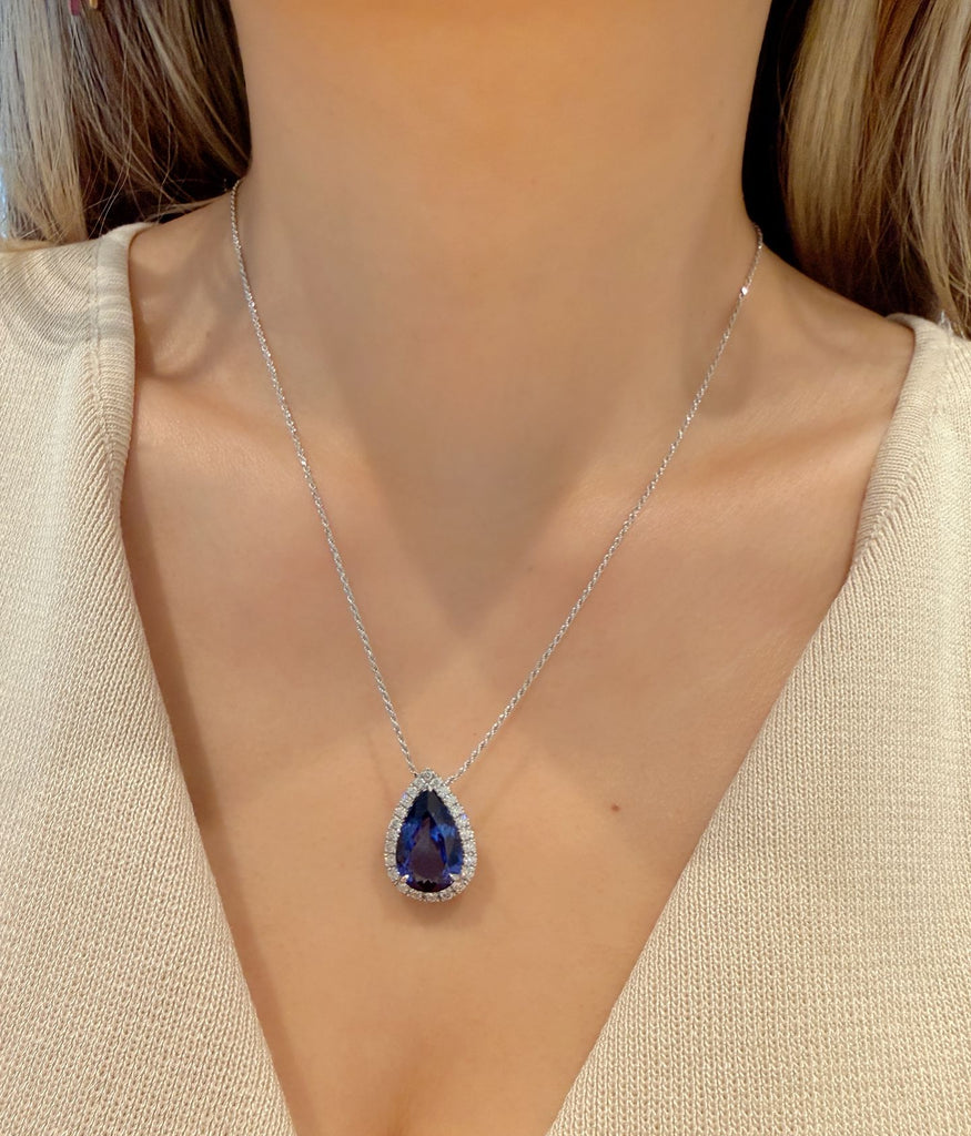 8.42ct Tanzanite Diamond Halo Pendant Necklace 18K White Gold IGI