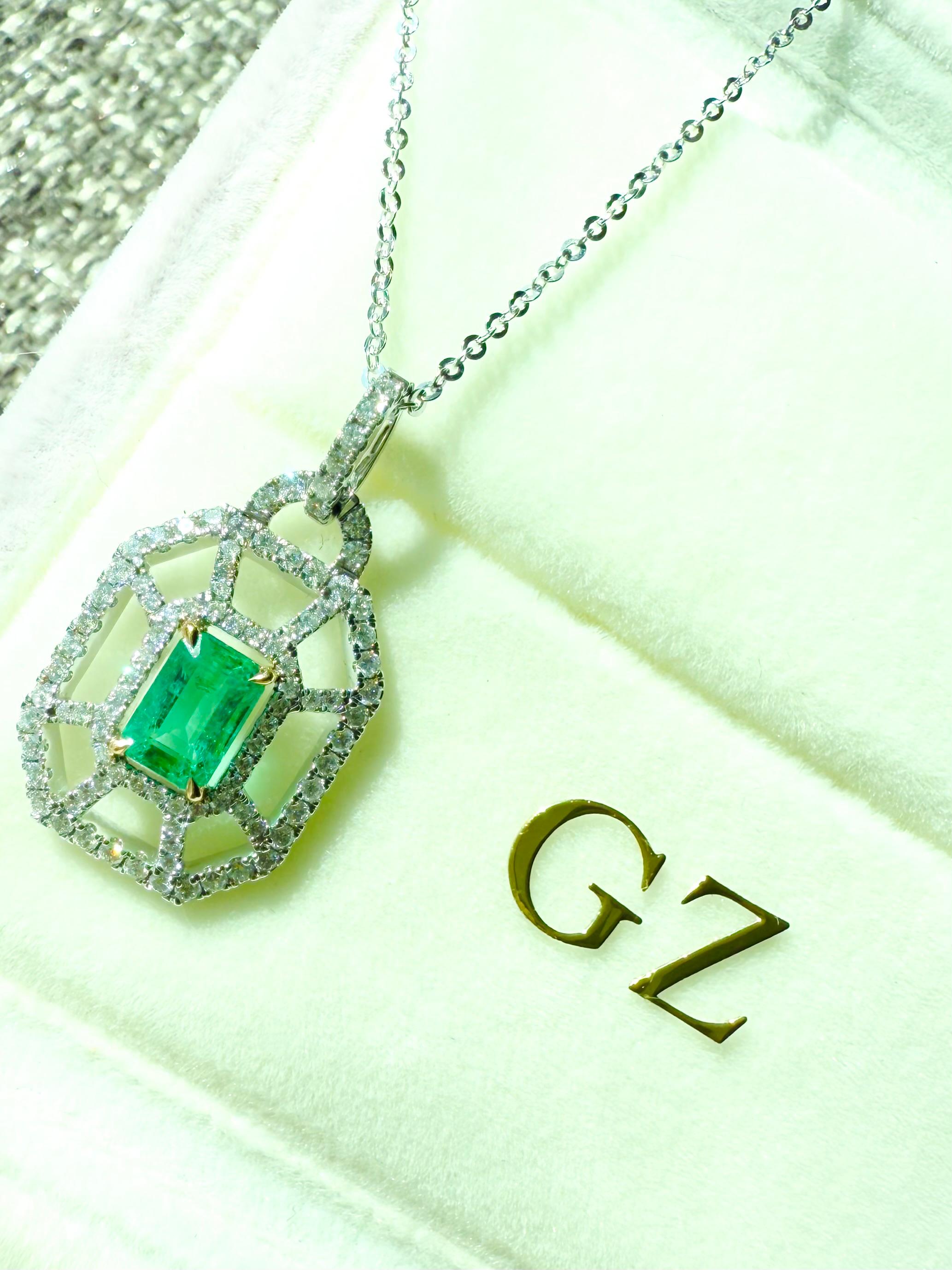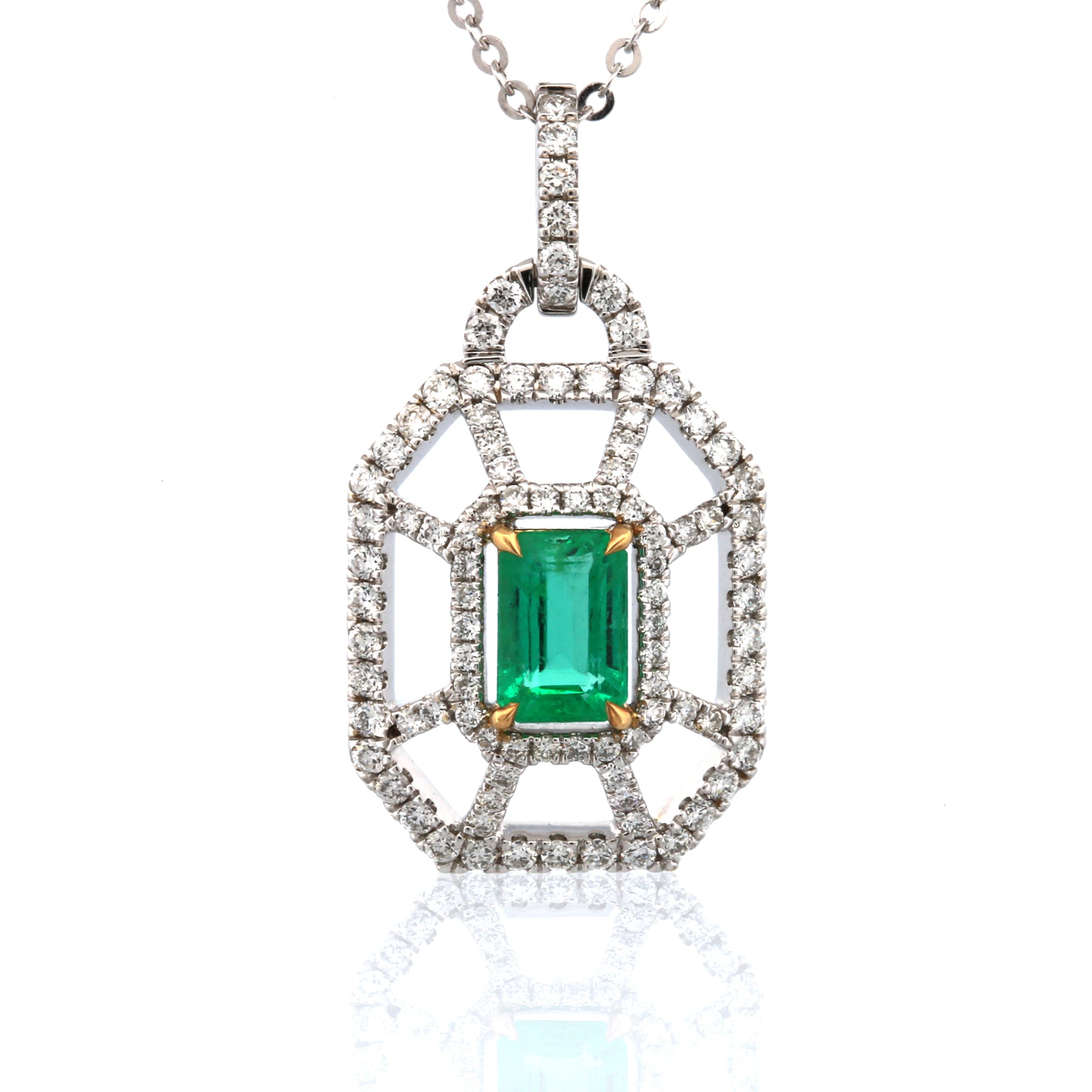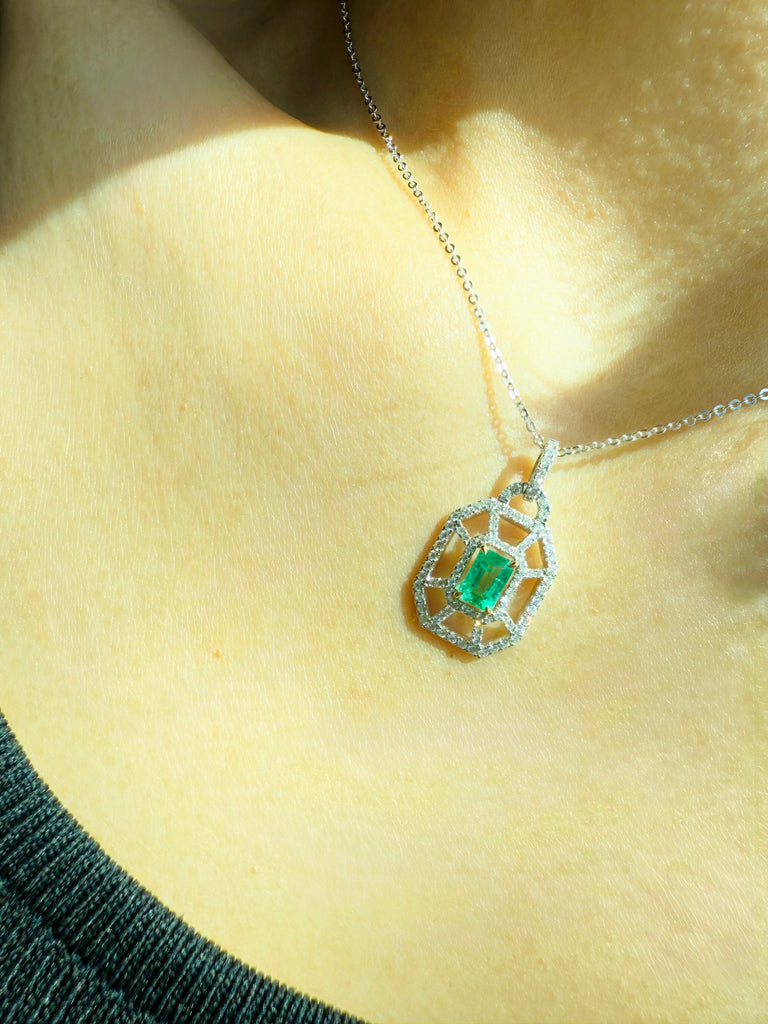 0.59ct Emerald Diamond Pendant Necklace 18KW