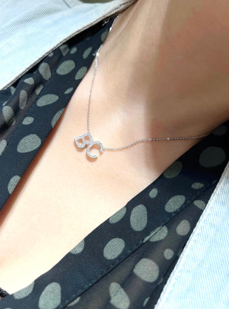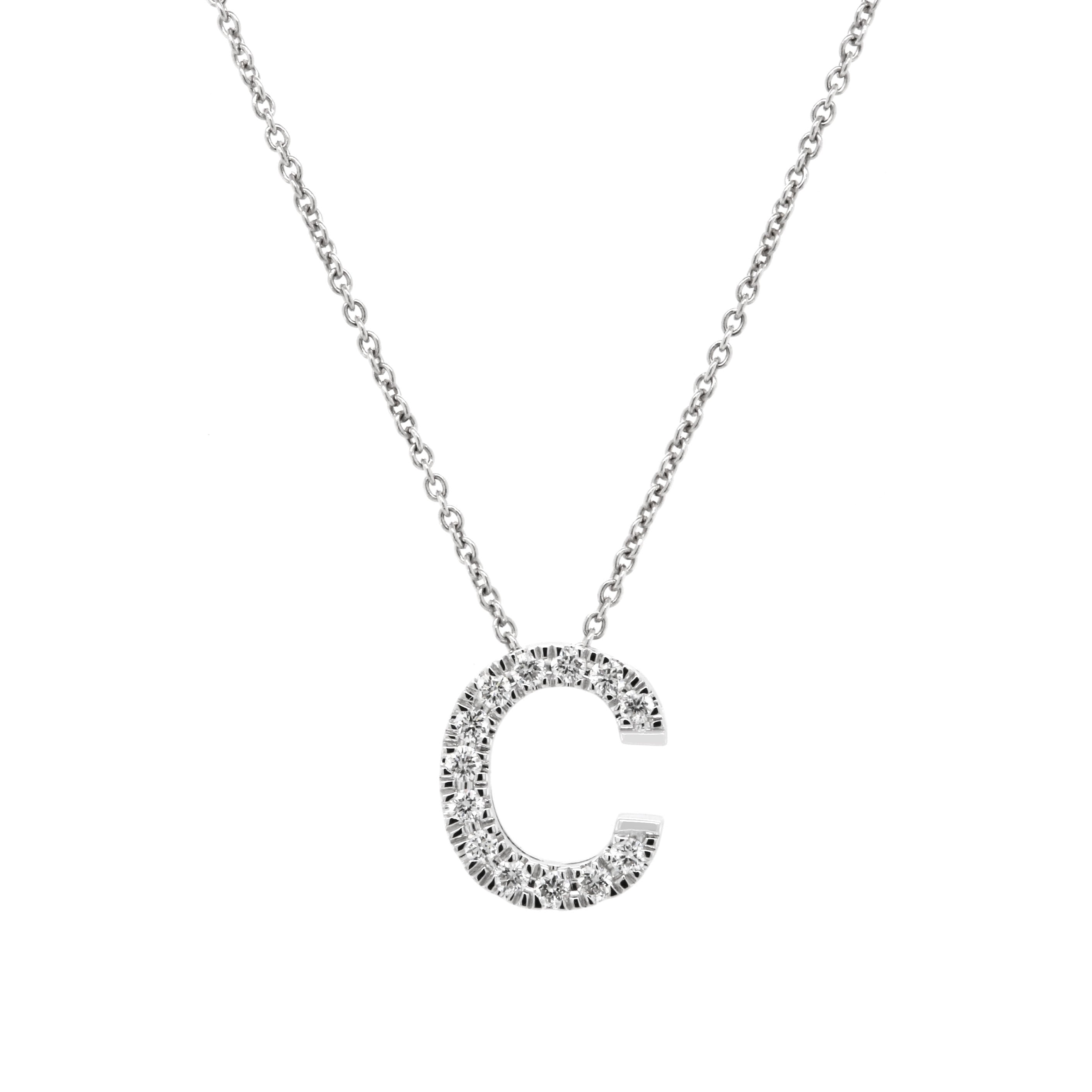 Initial "C" Diamond Pendant Necklace K18 White Gold