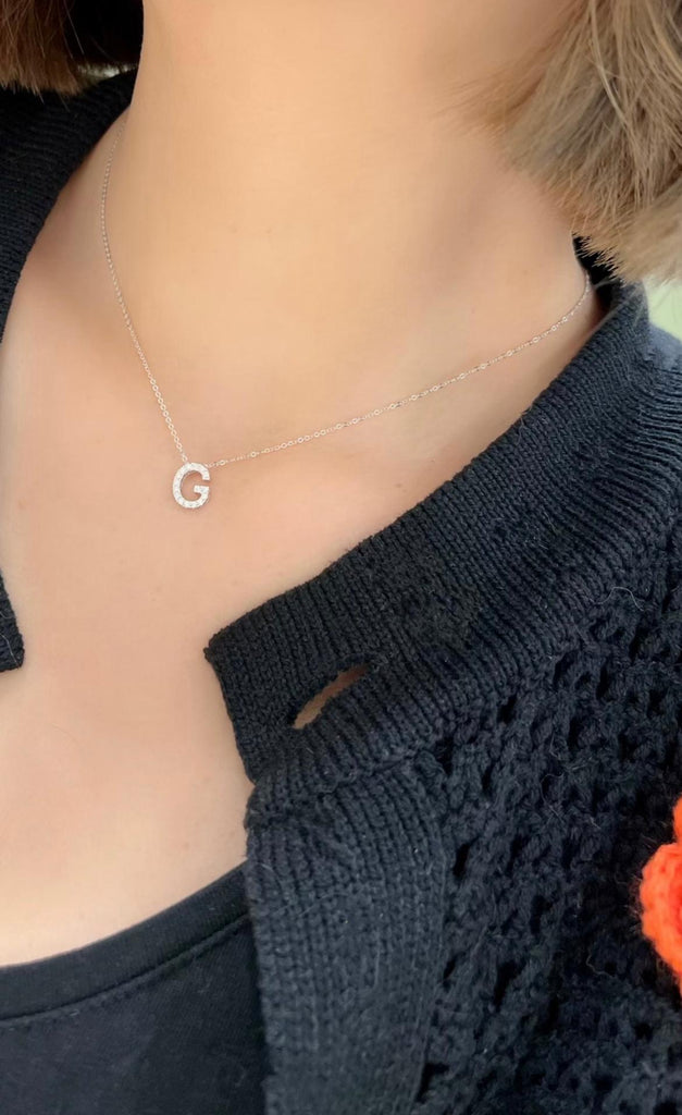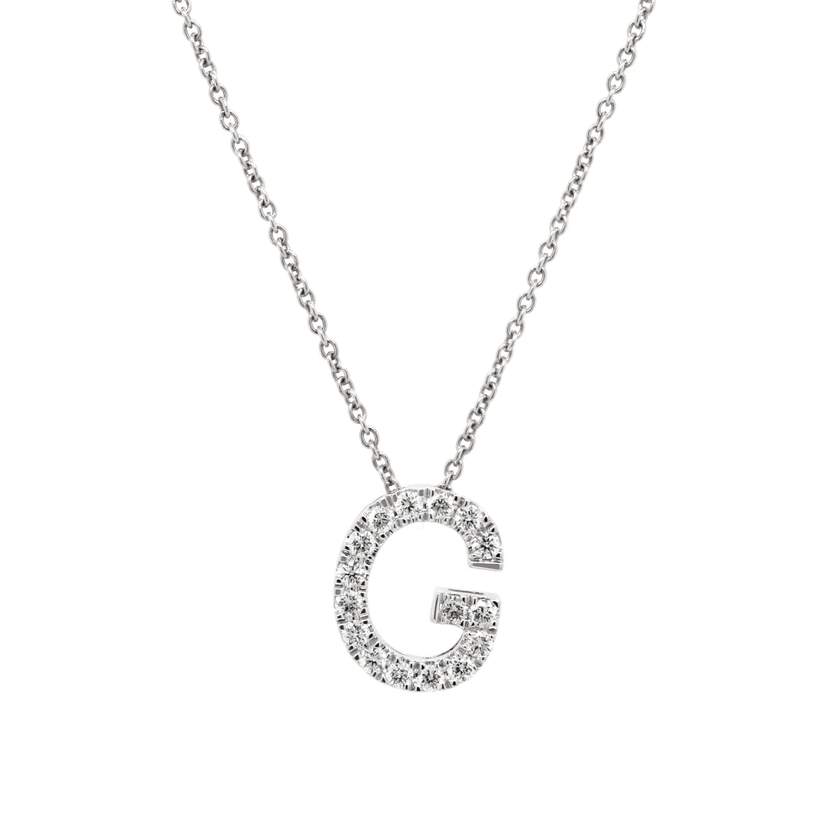 Initial "G" Diamond Pendant Necklace K18 White Gold