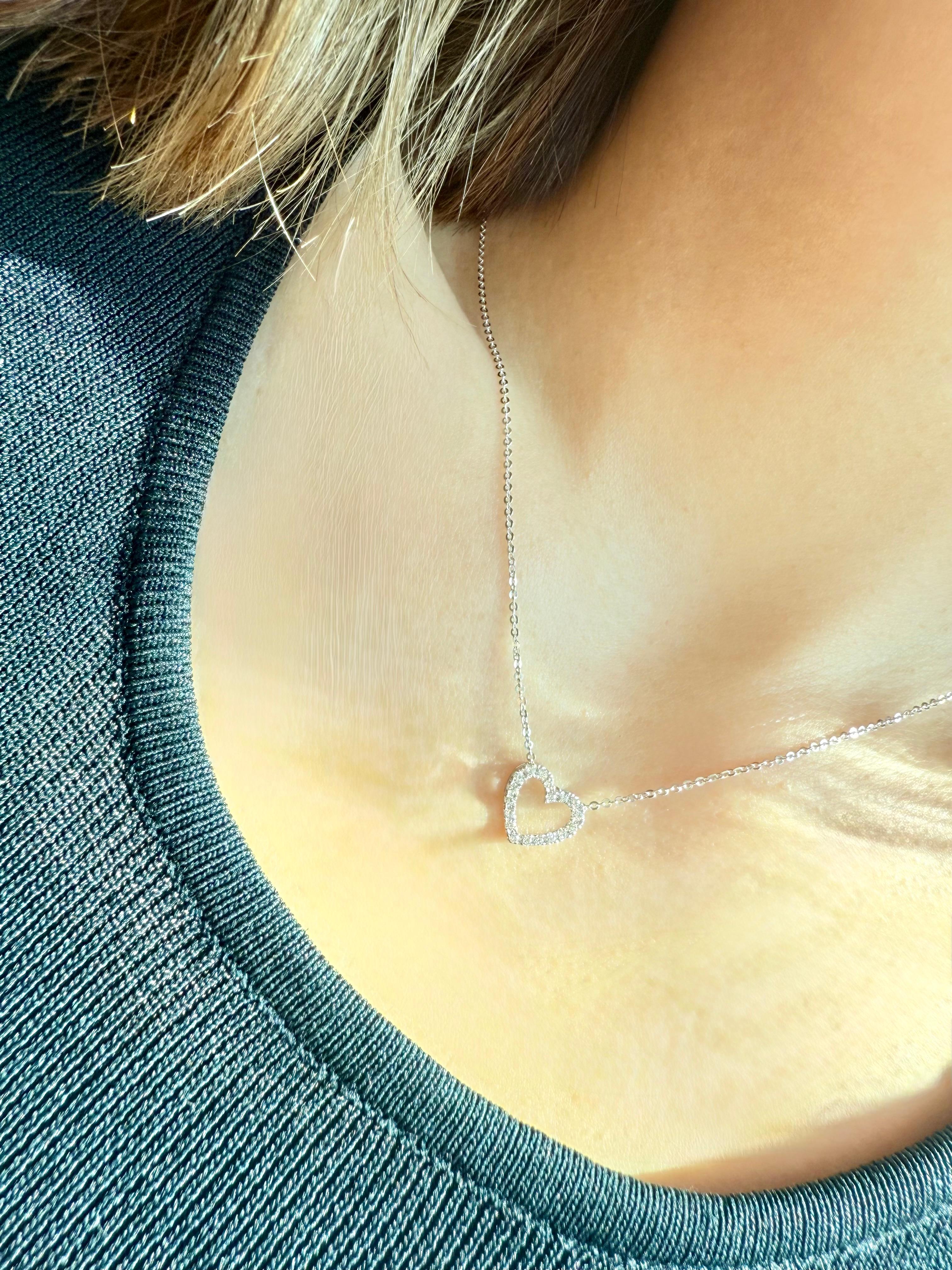 Initial "Heart" Diamond Pendant Necklace K18 White Gold