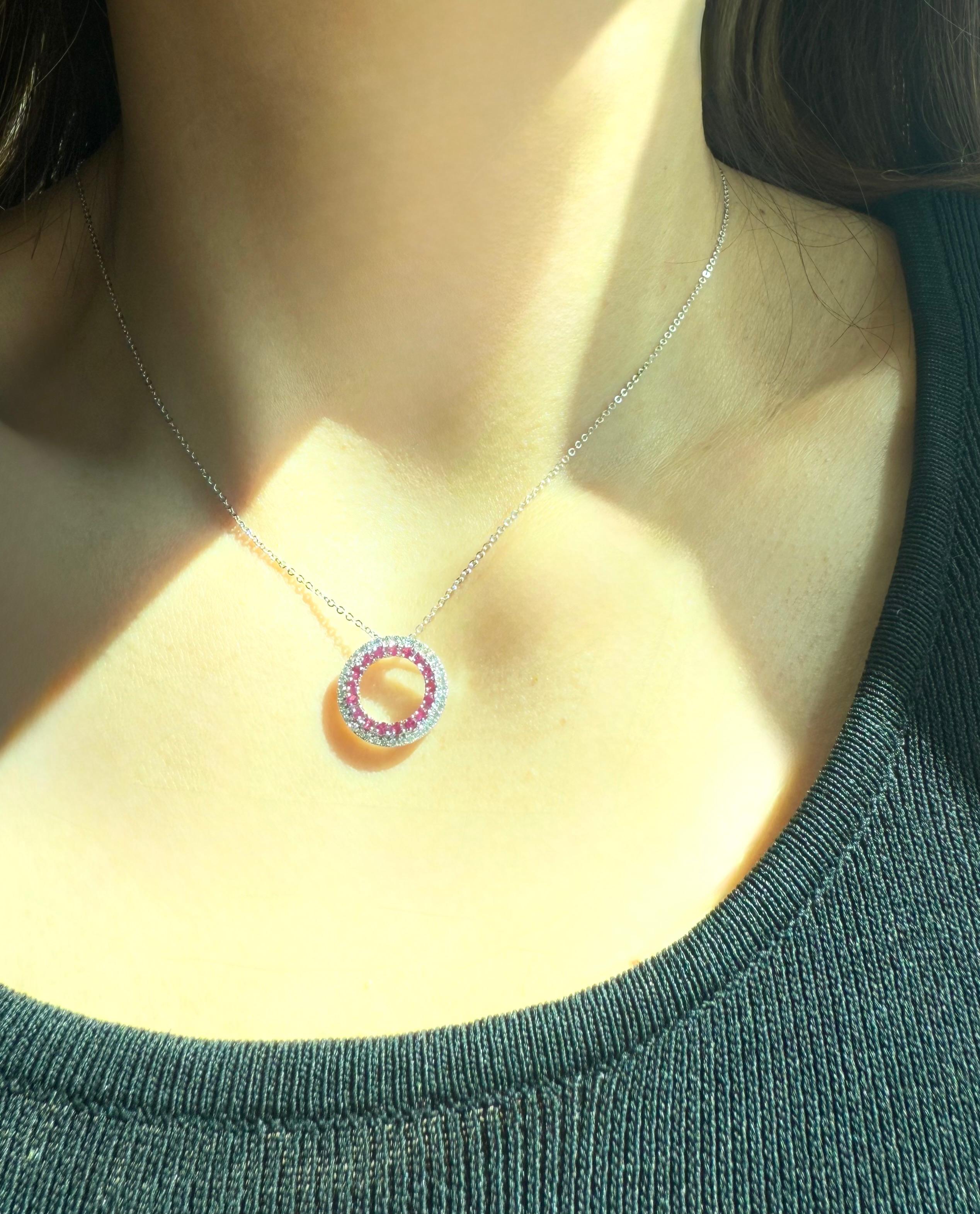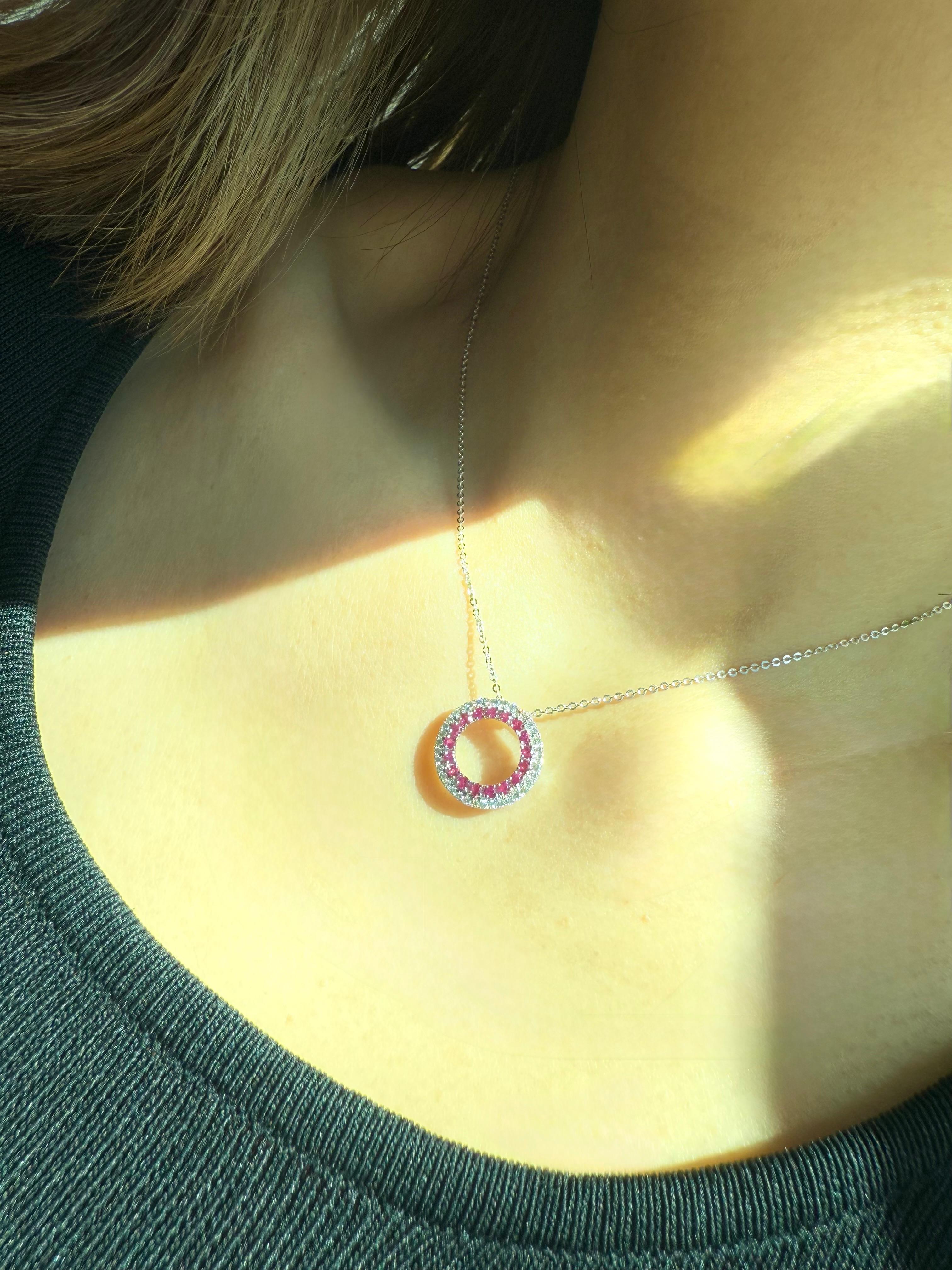 Pink Sapphire Diamond Pendant Necklace in 18K White Gold