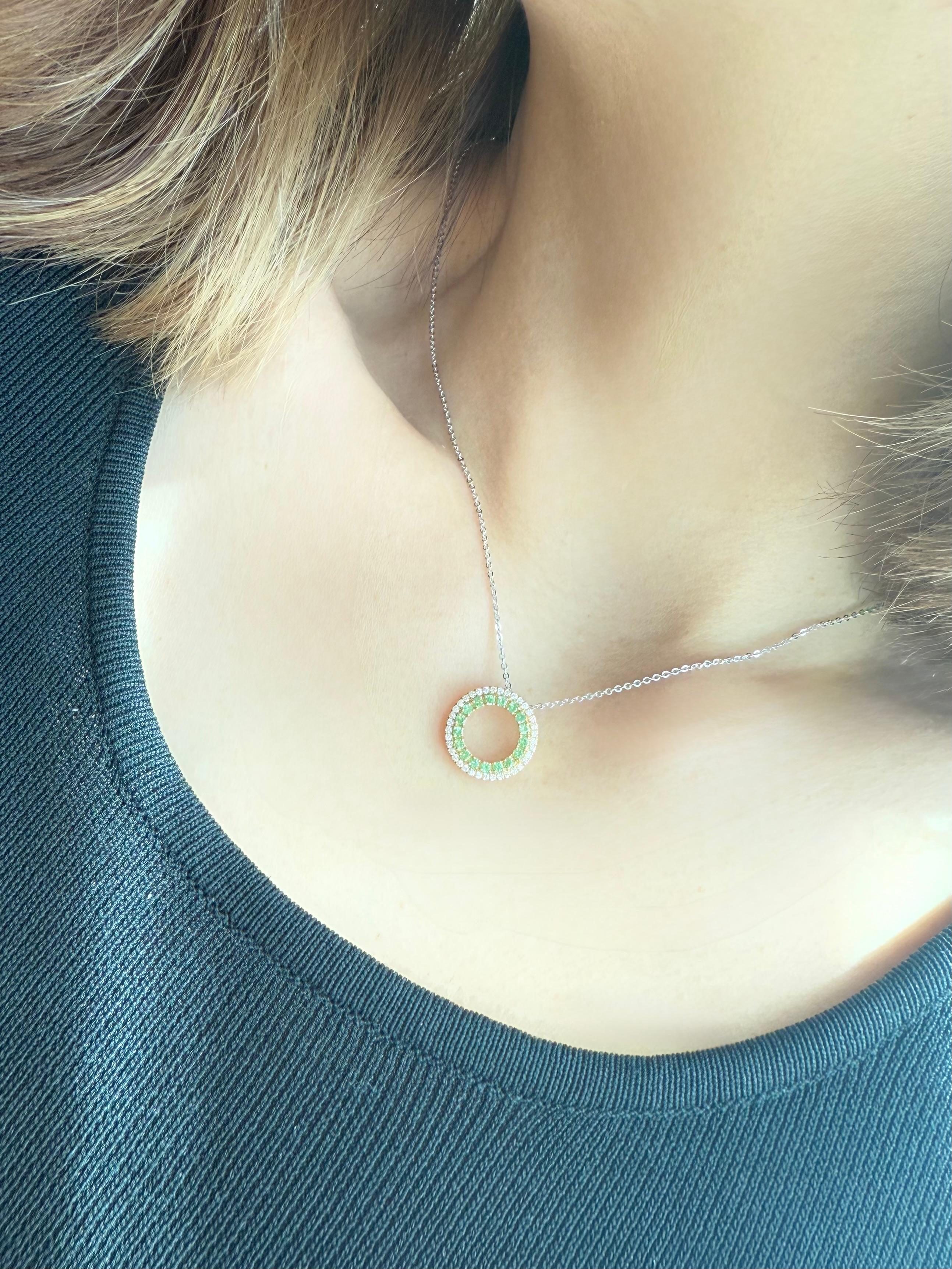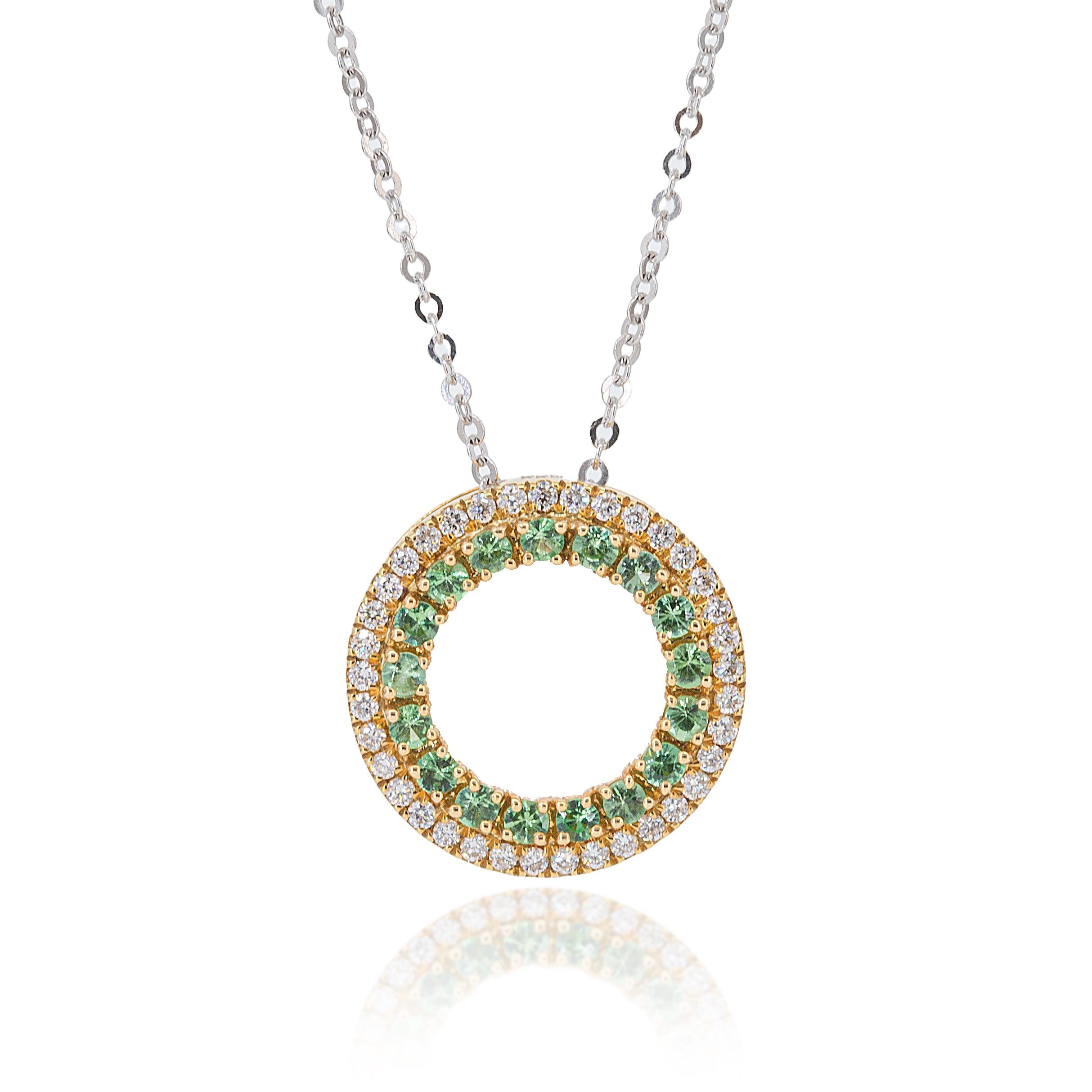 Tsavorite Diamond Pendant Necklace in 18K Yellow Gold