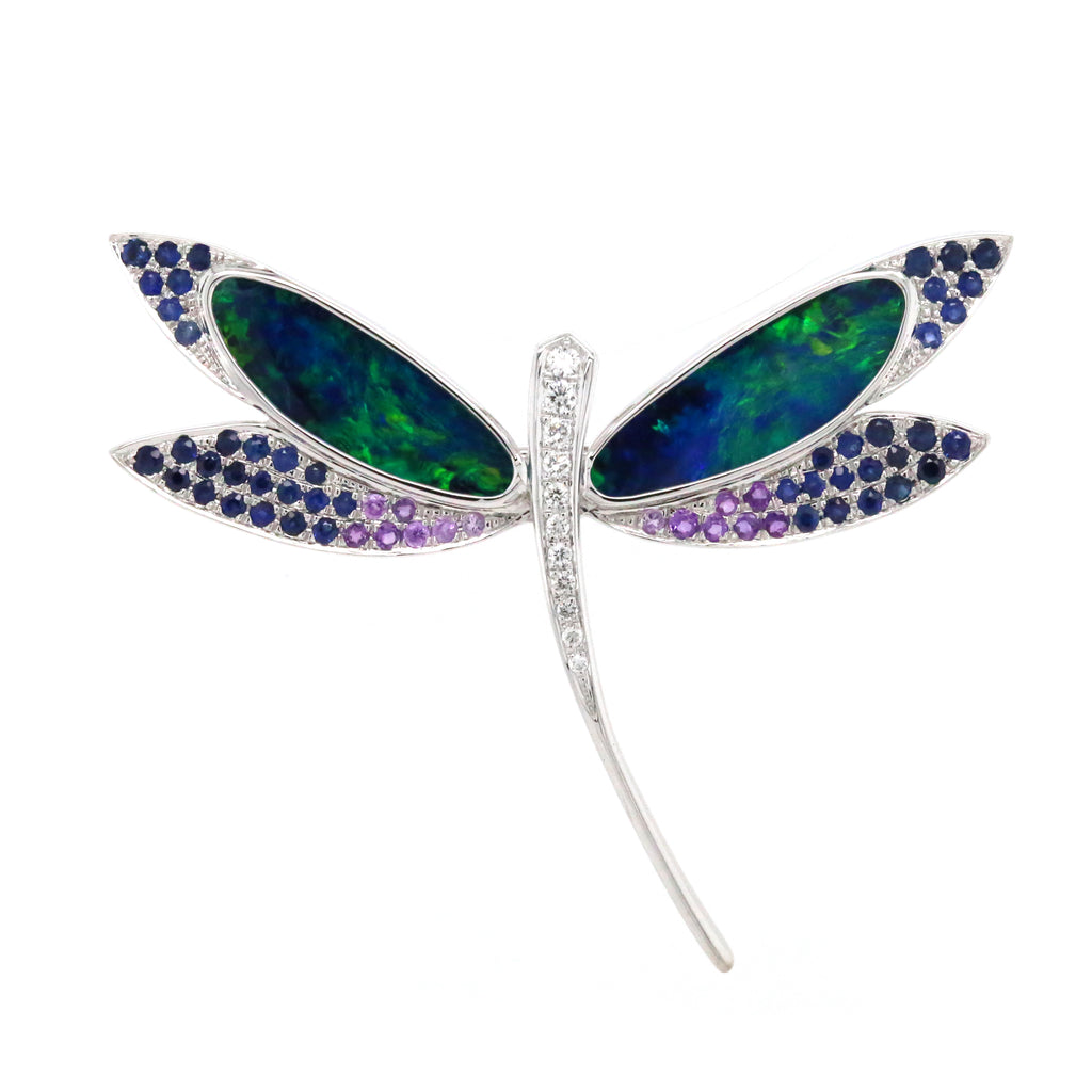Australian Opal / Diamond Dragonfly Brooch - SOLD