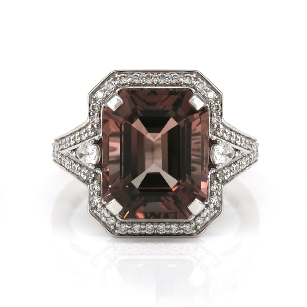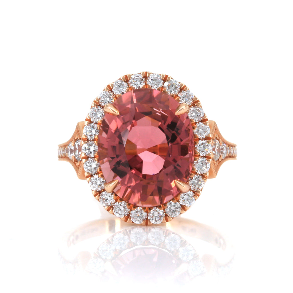 7.39ct Natural Pink Tourmaline Diamond Ring AGR