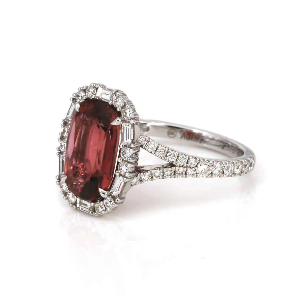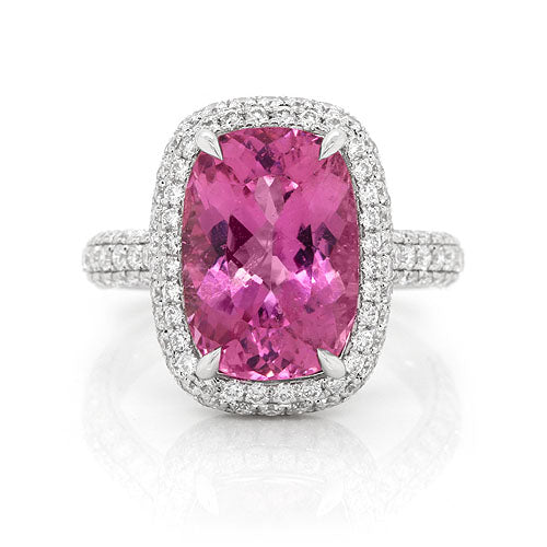 5.61ct Pink Cushion Tourmaline Diamond Ring in 18K White Gold