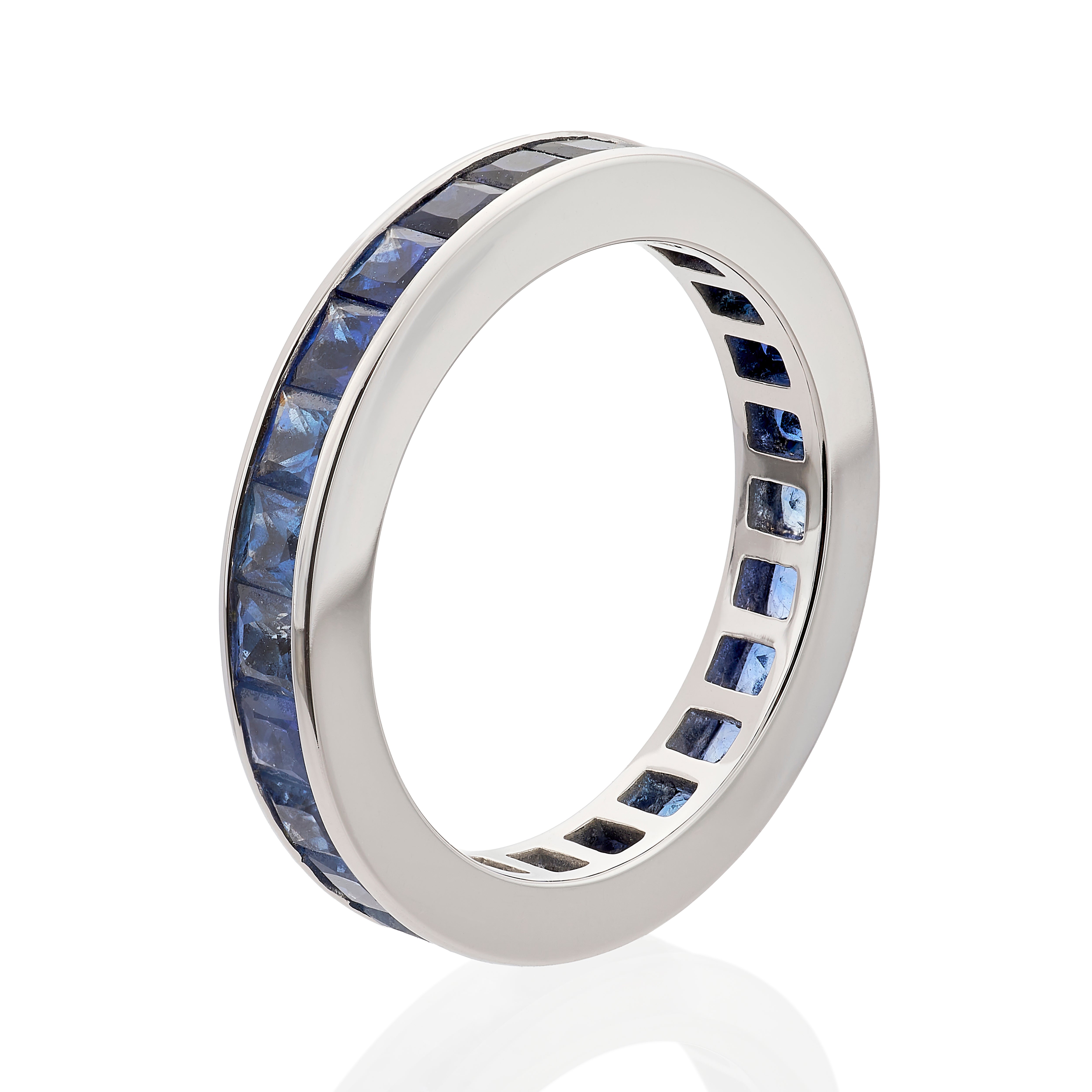 2.91ct Blue Sapphire Band Ring in 18K White Gold