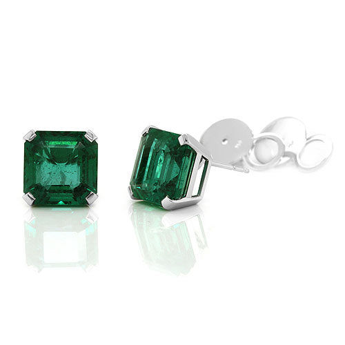 - Asscher Cut Emerald Stud Earrings