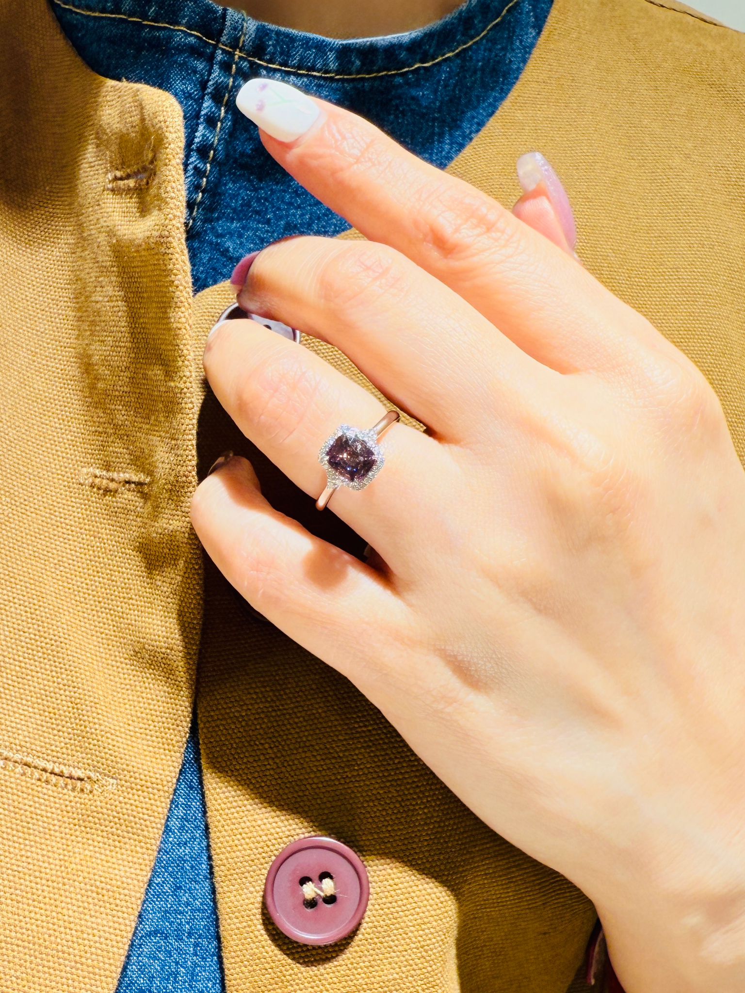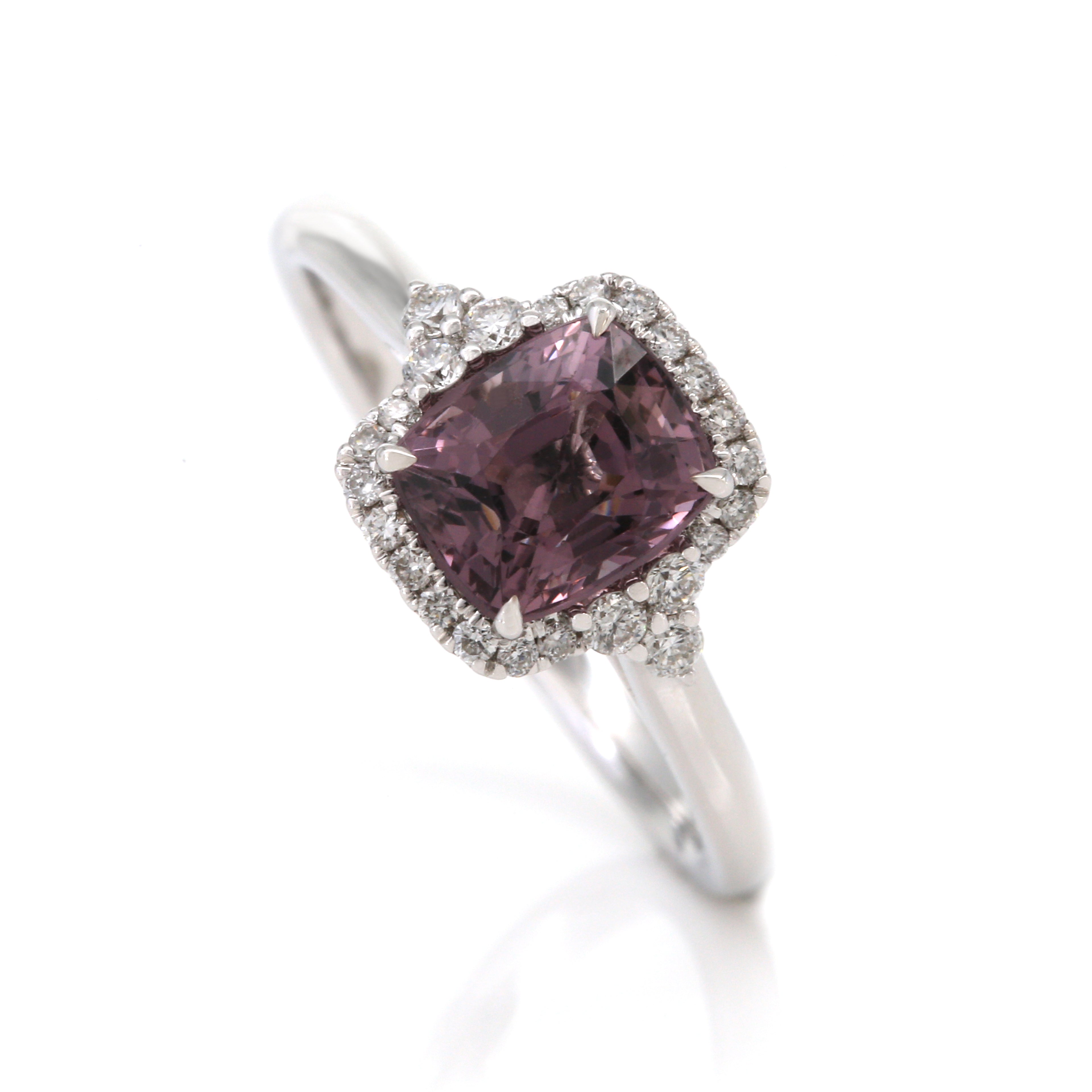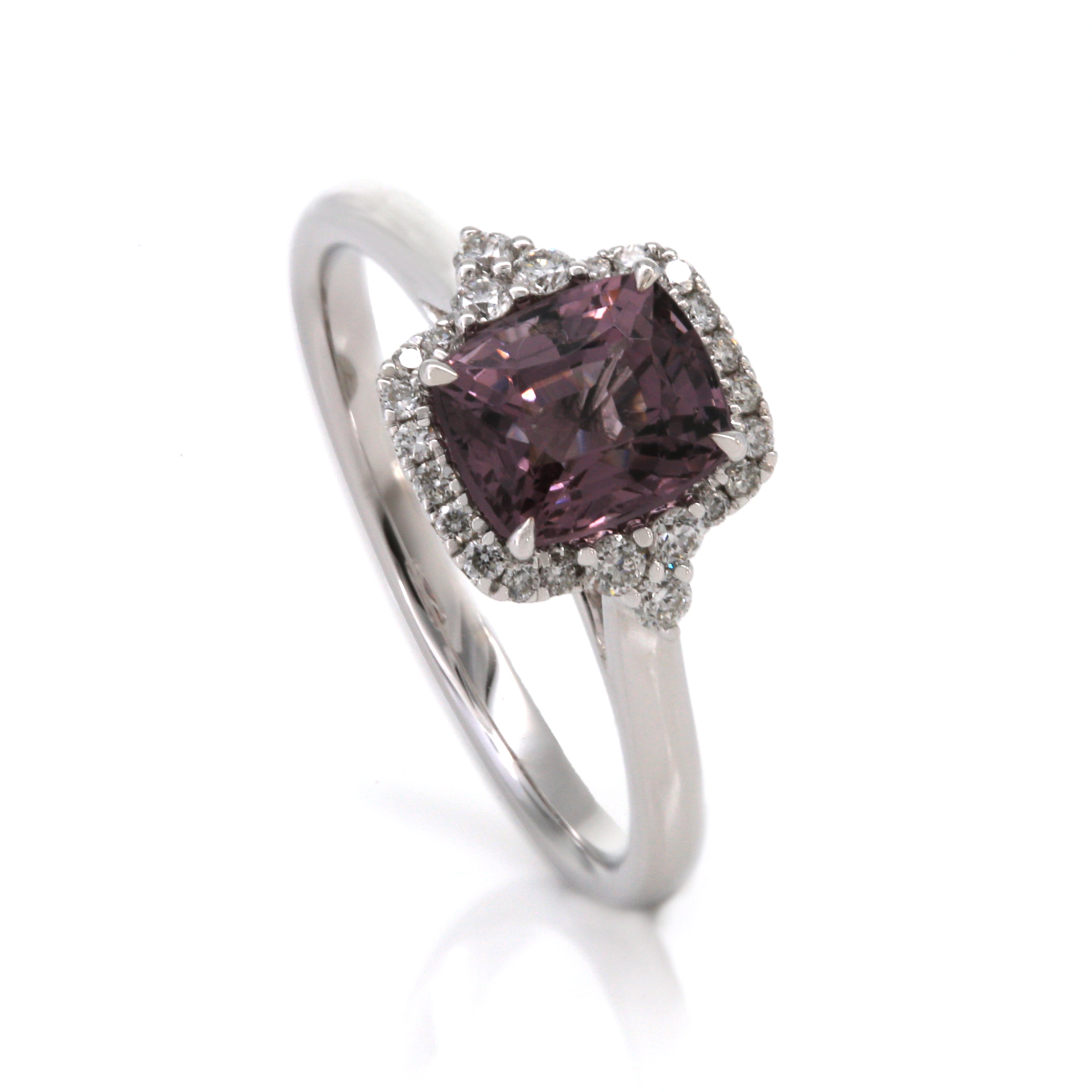 1.42ct Spinel Diamond Halo Ring 18K White Gold