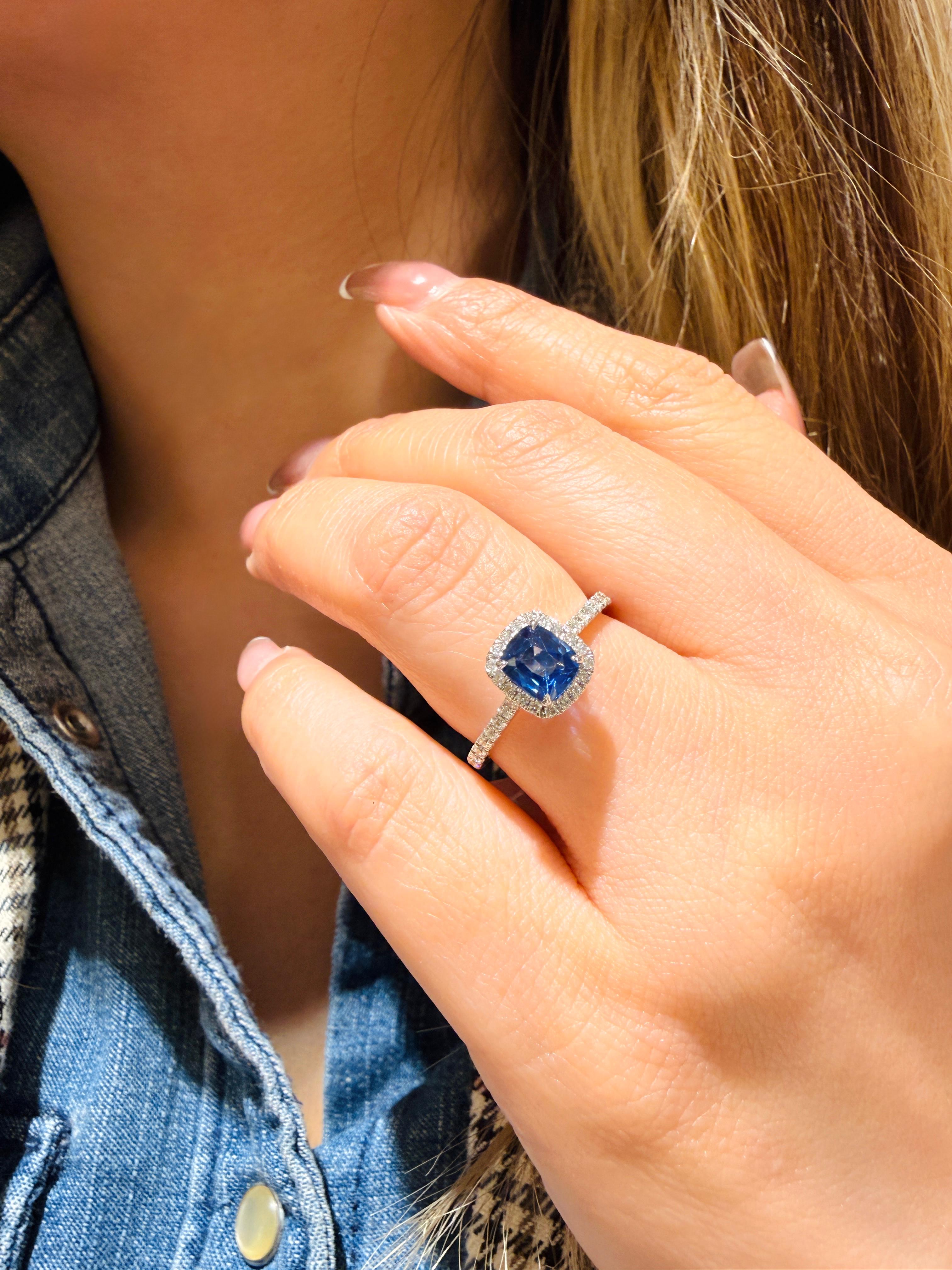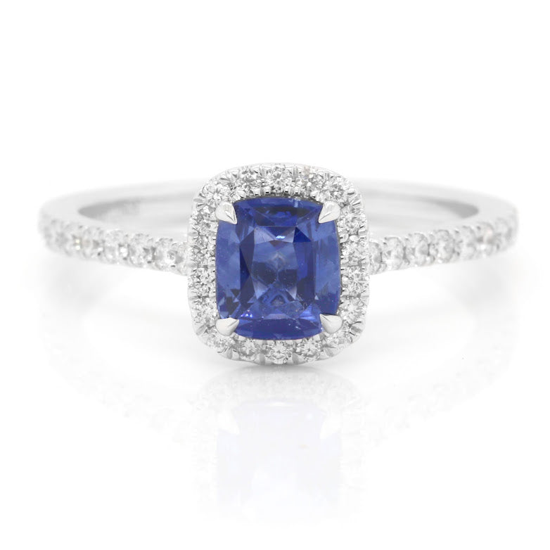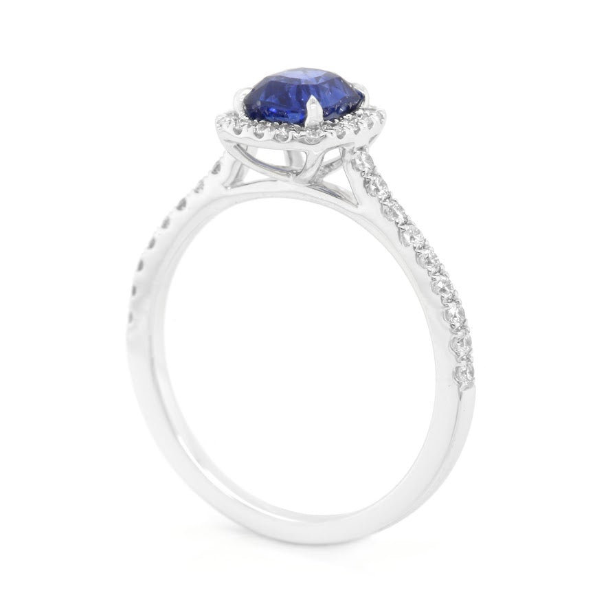 1.08ct Blue Sapphire Diamond Ring in 18K White Gold