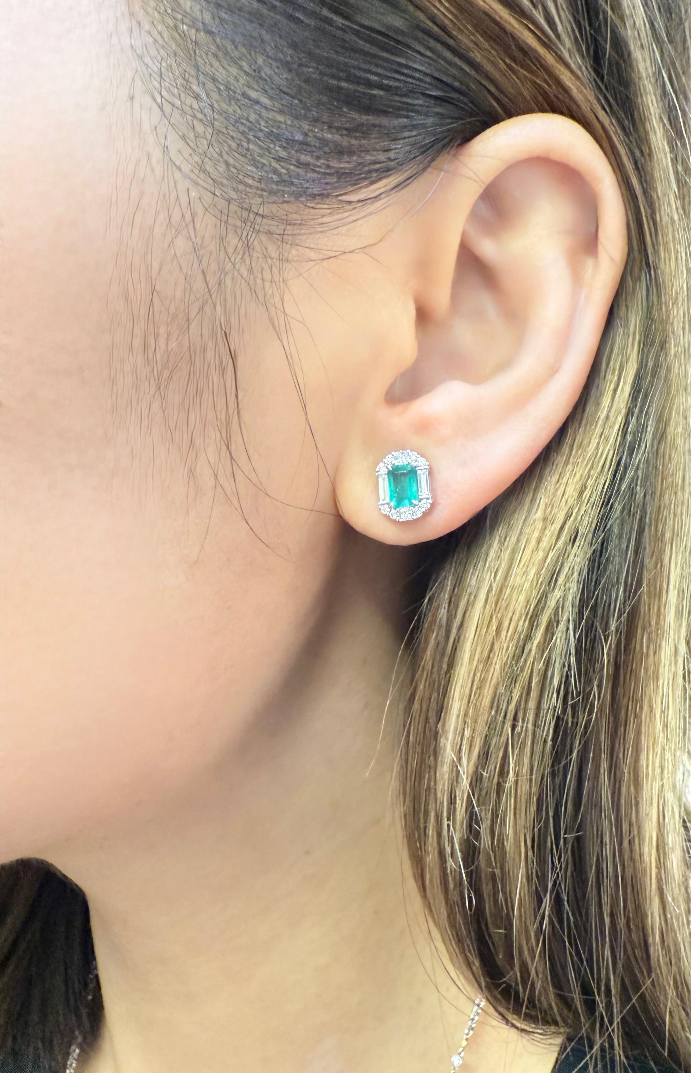 - Emerald Diamond Stud Earrings