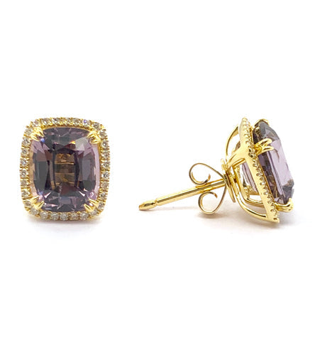 - Burmese Spinel Diamond Halo Earrings