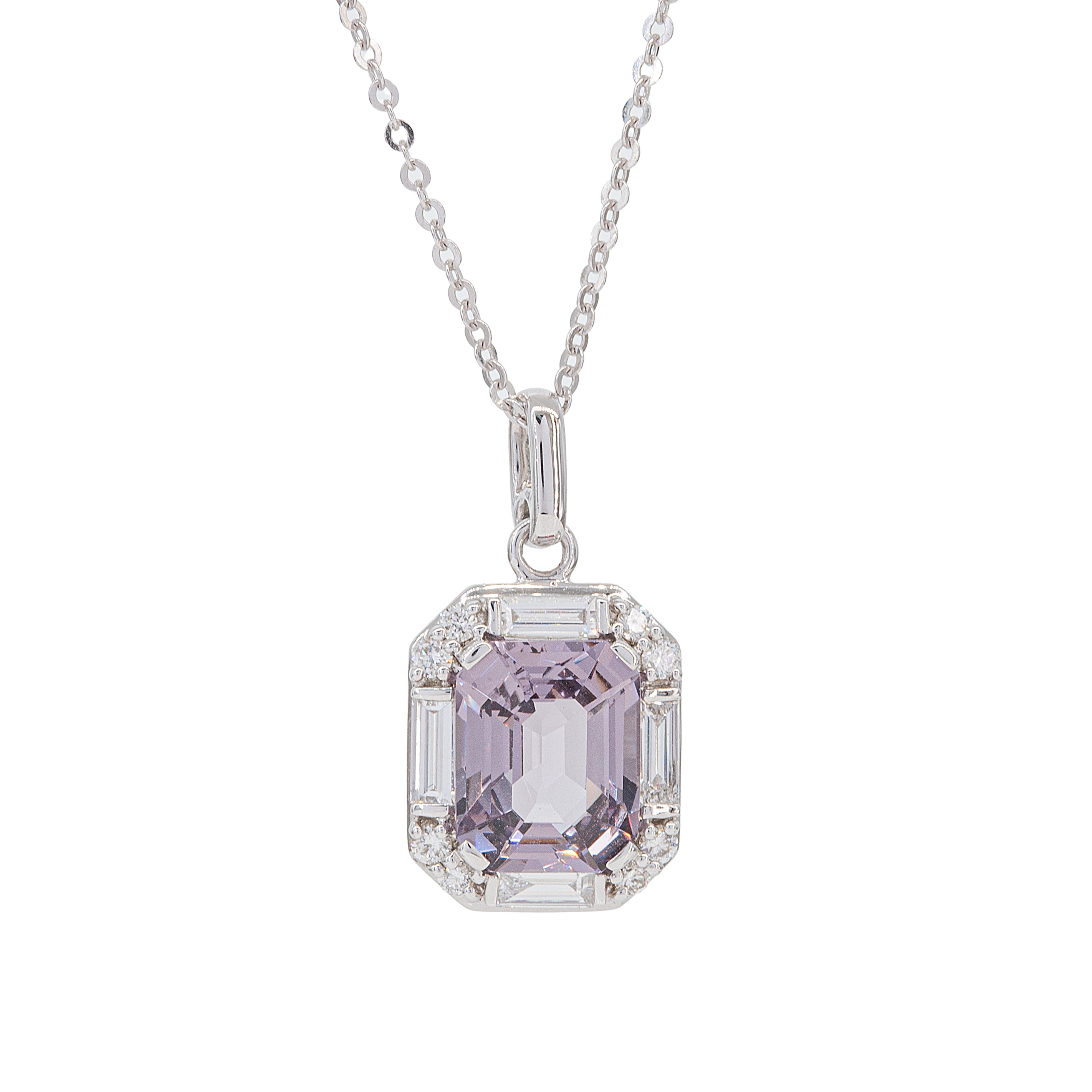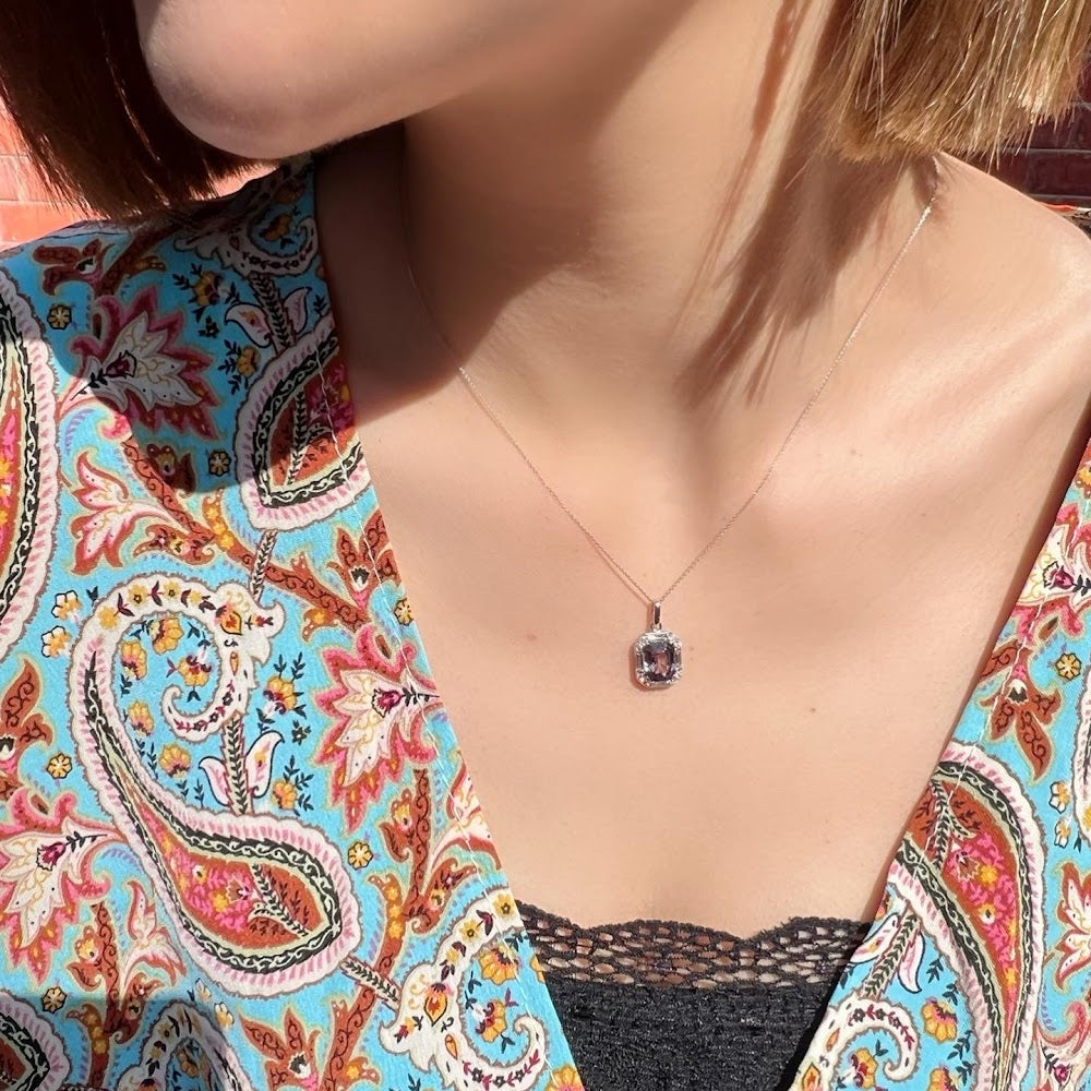 Spinel Gemstone Diamond Pendant 14K White Gold
