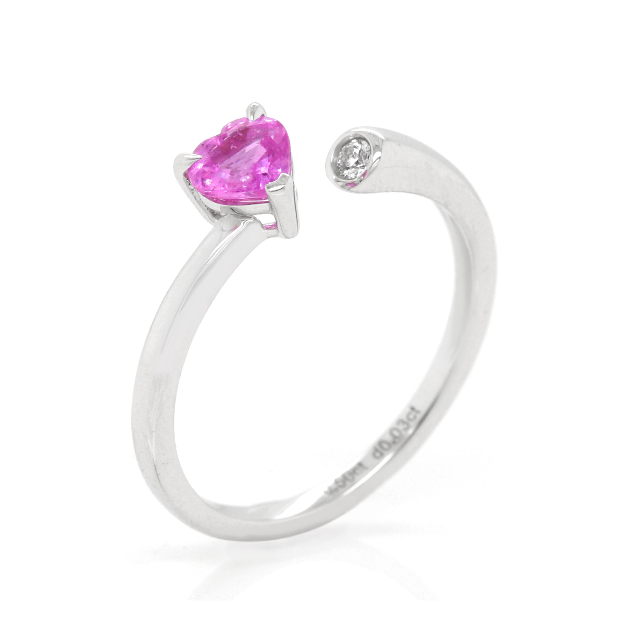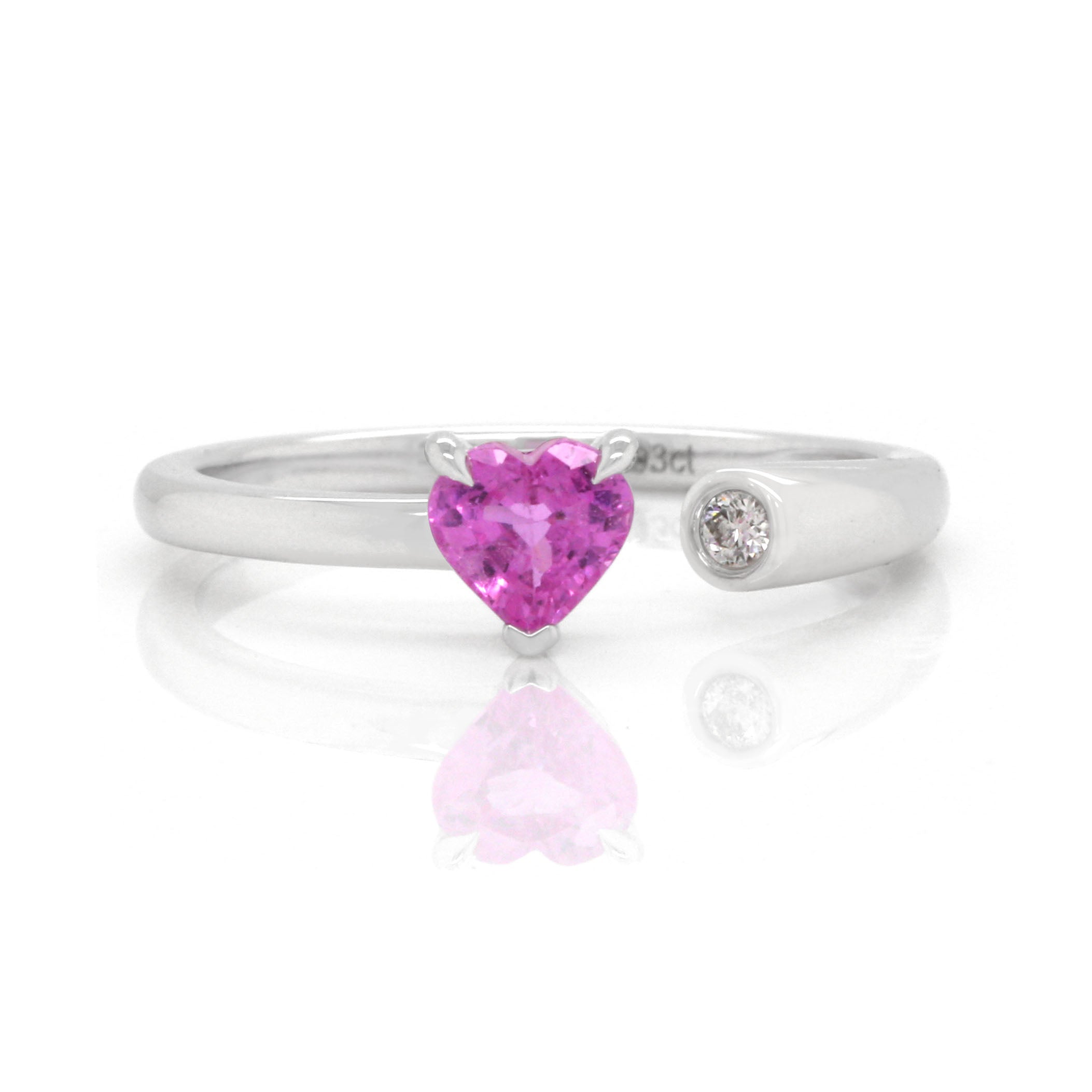 0.496ct Heart Pink Sapphire Diamond Open Ring 14K White Gold