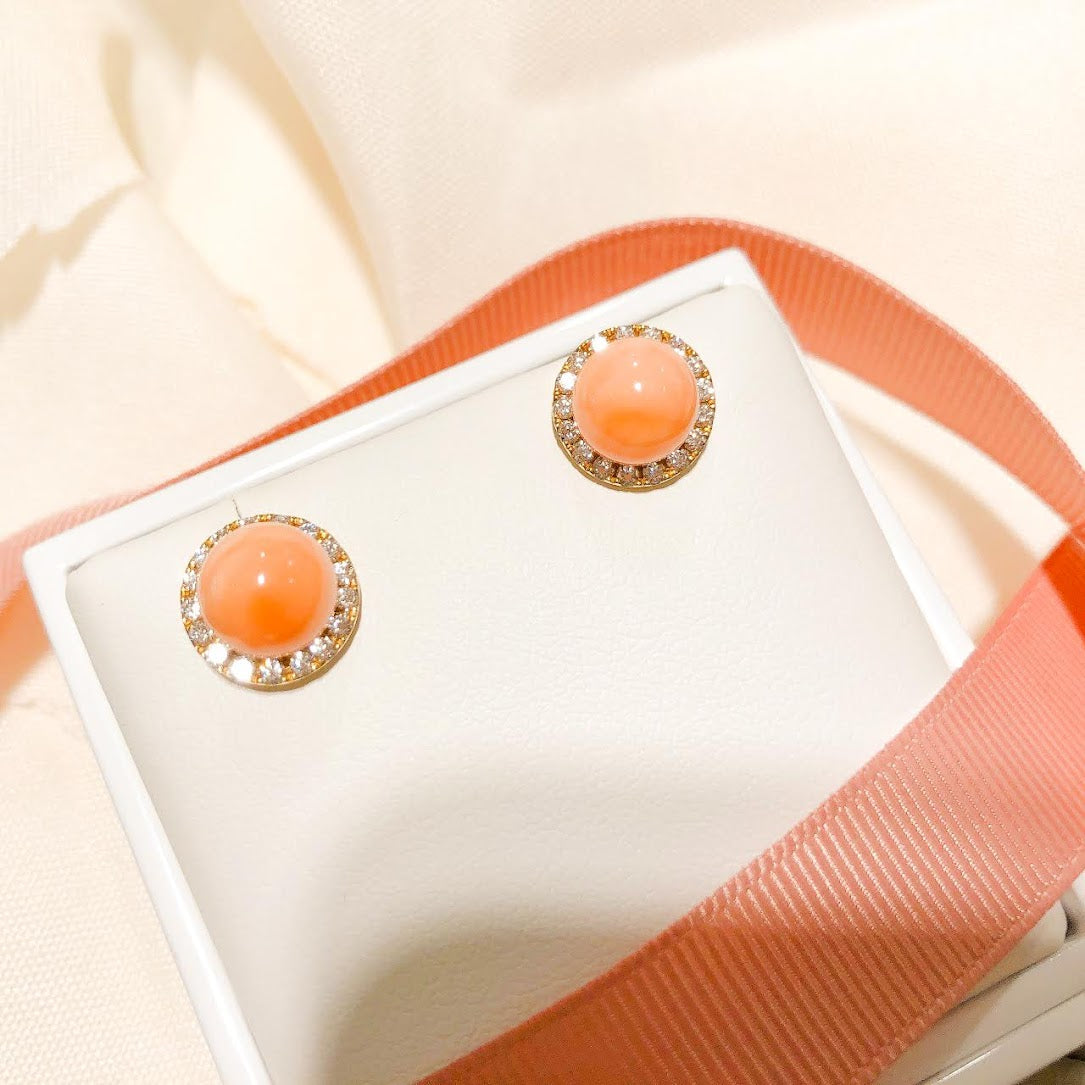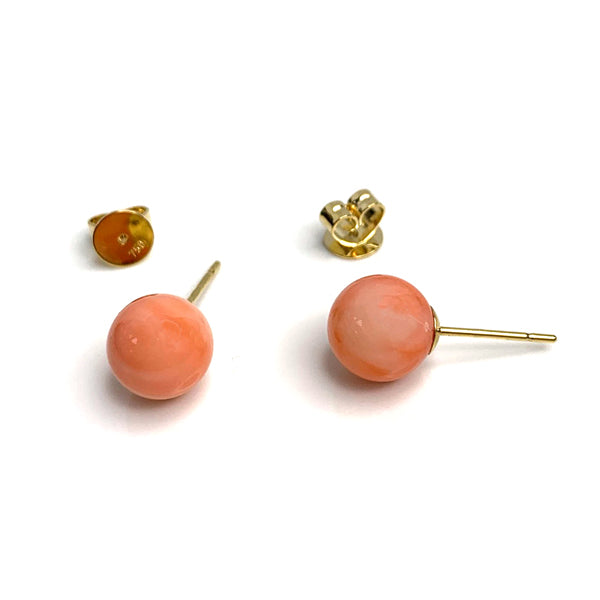 8.5mm Coral Stud Earrings 18K Yellow Gold