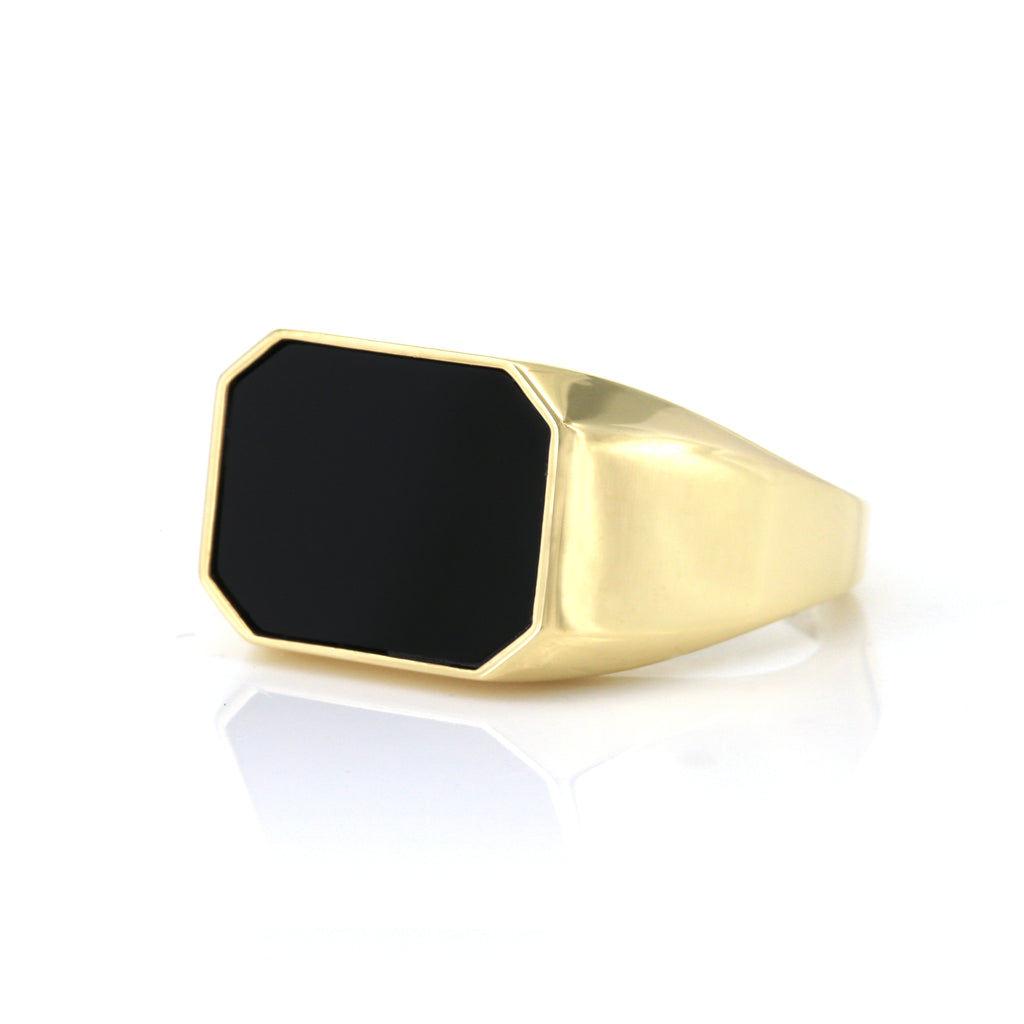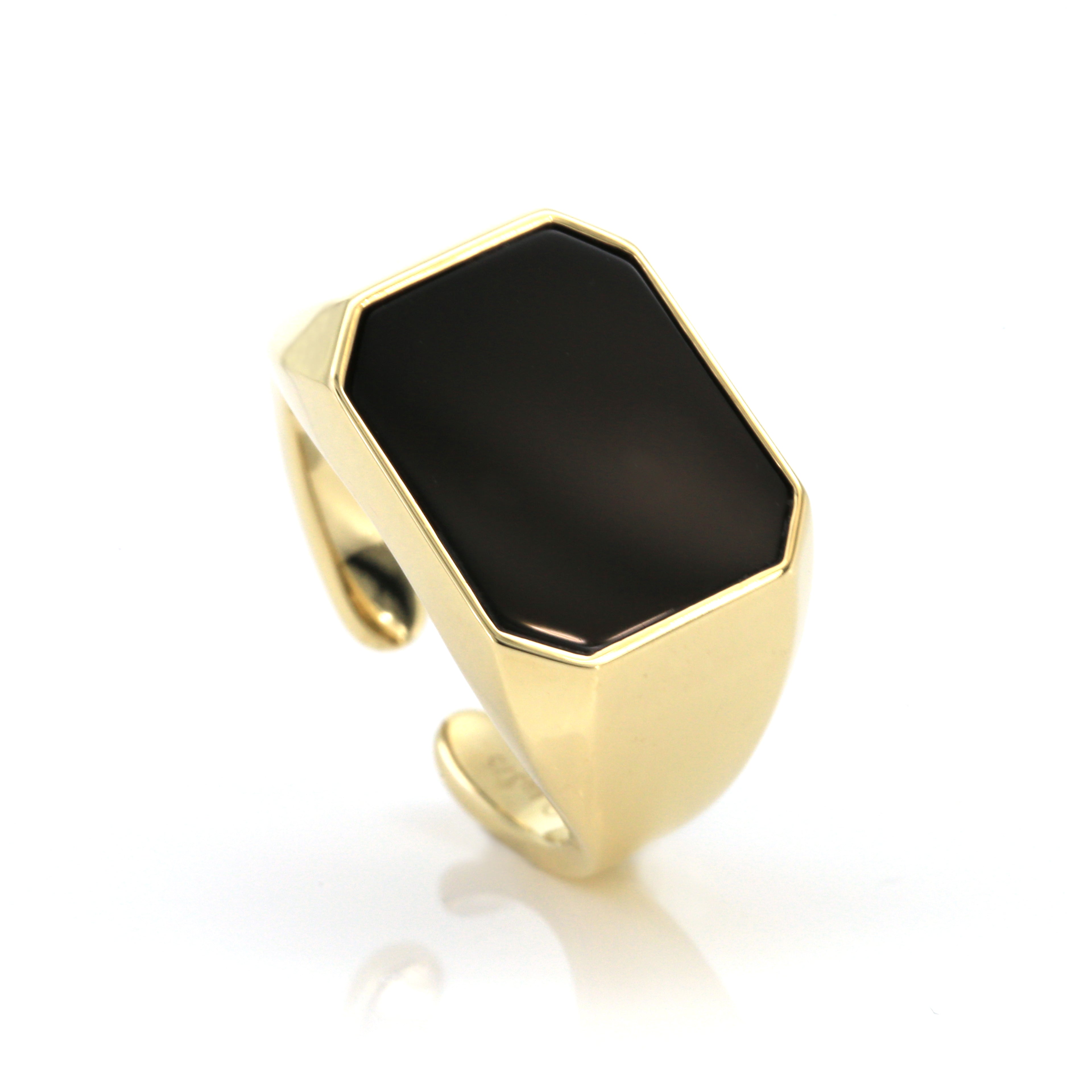Black Onyx Signet Open Ring in 9K Yellow Gold