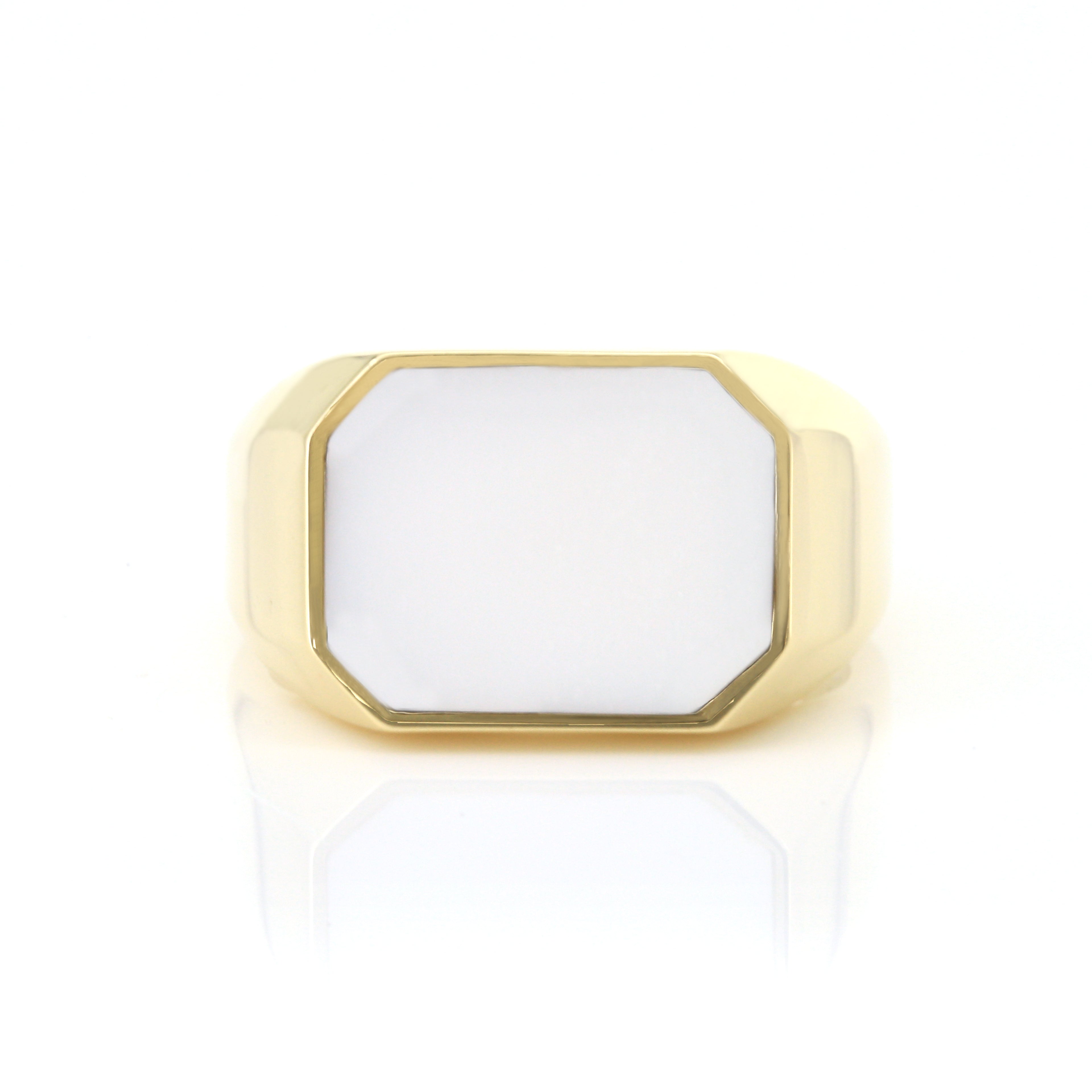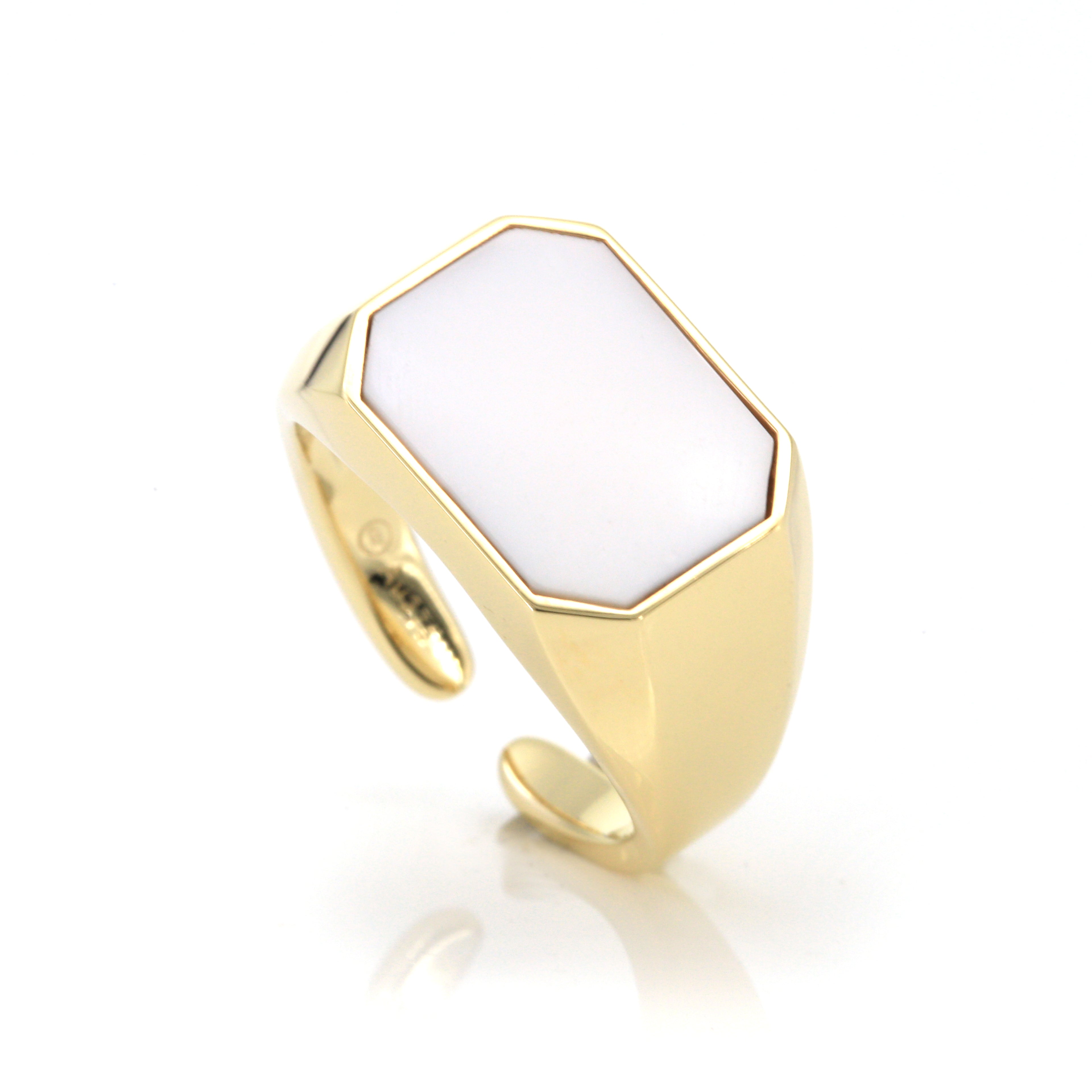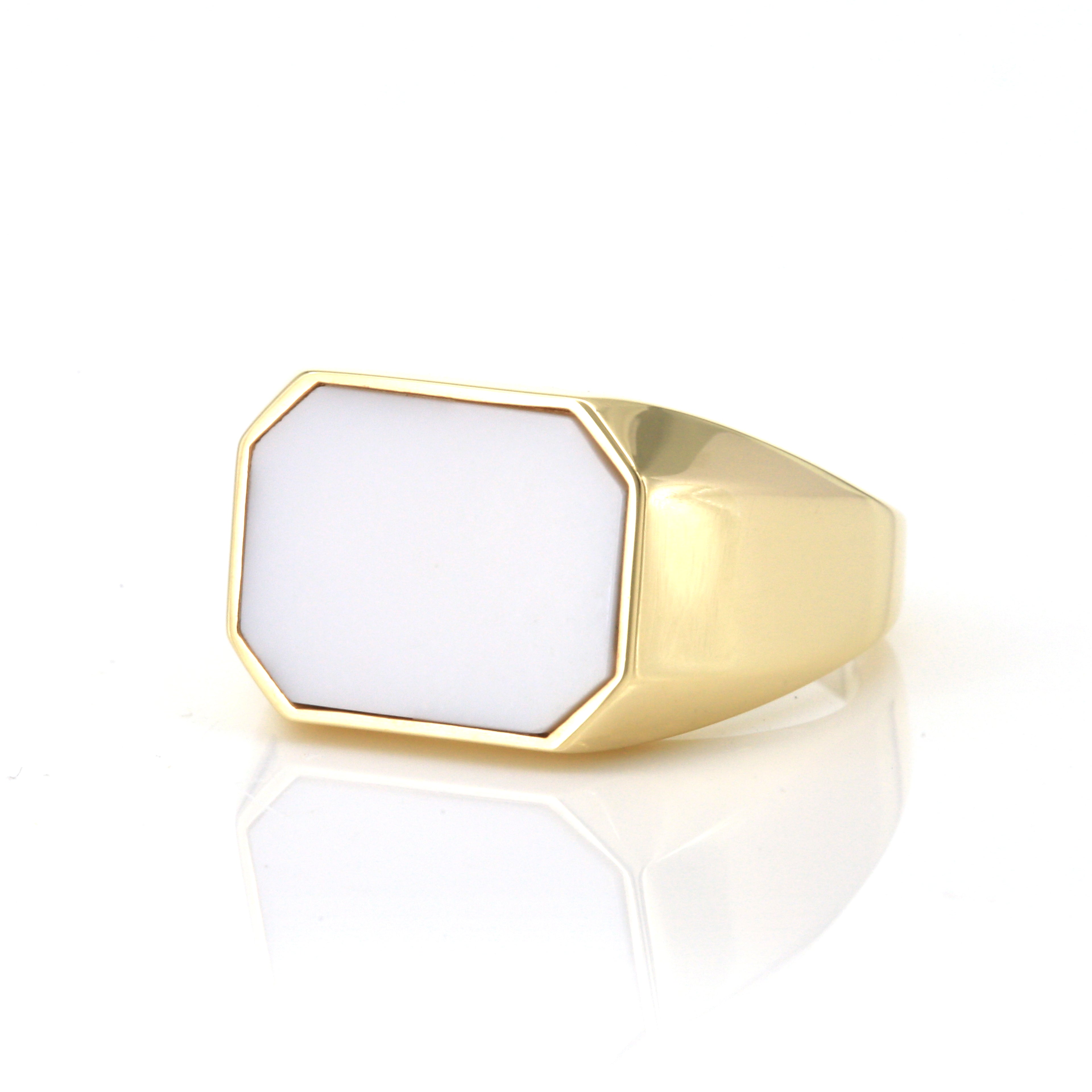 White Onyx Signet Open Ring in 9K Yellow Gold